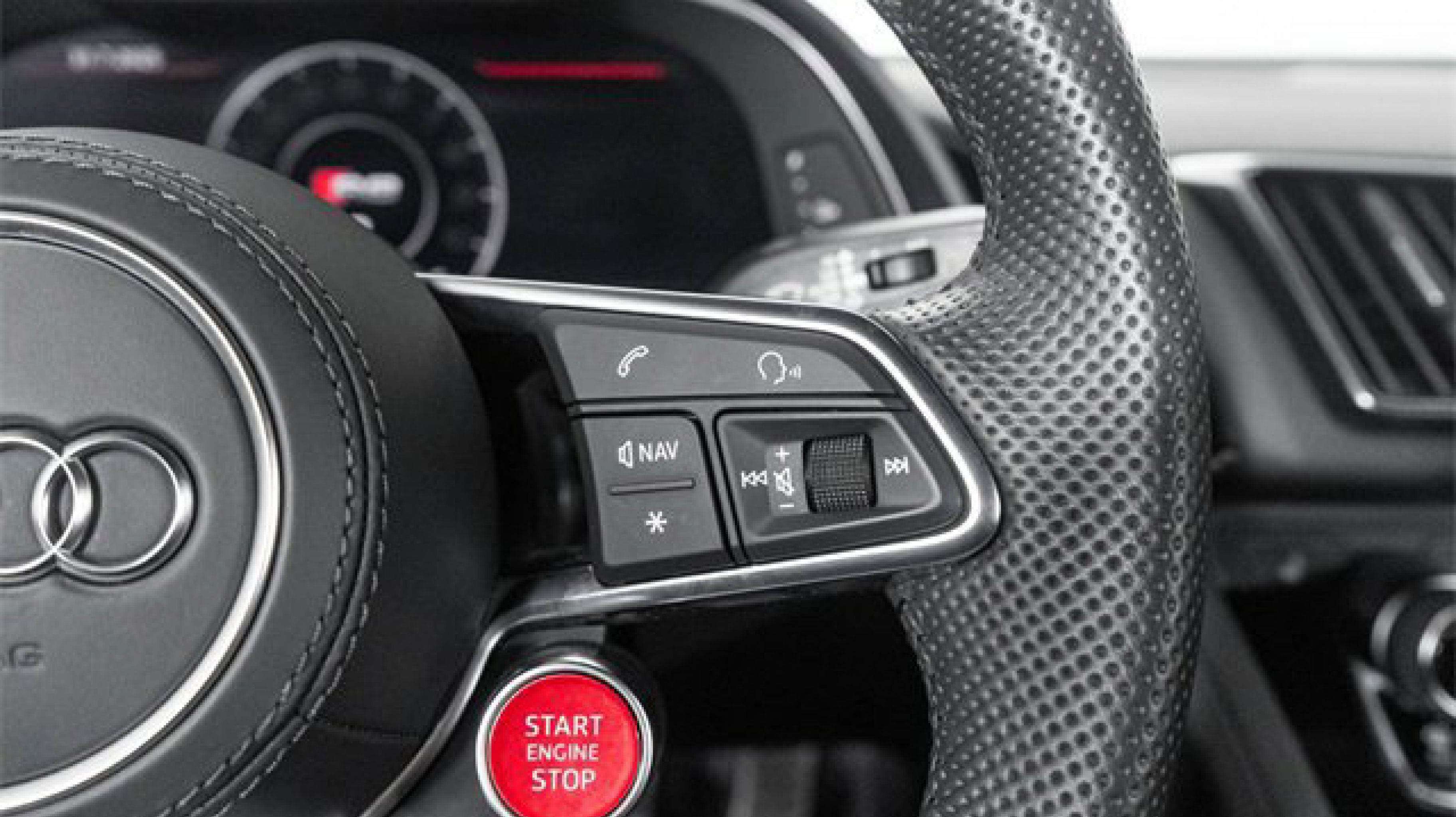 Every inch of the cockpit is dialed in for the driverfrom the flat-bottom multifunction steering wheel with integrated shift paddles, to the minimalist Virtual Cockpit with built-in MMI Navigation Plus and real-time performance metrics. The racing shell seats are wrapped in Fine Nappa leather and Alcantara, providing both comfort and support.