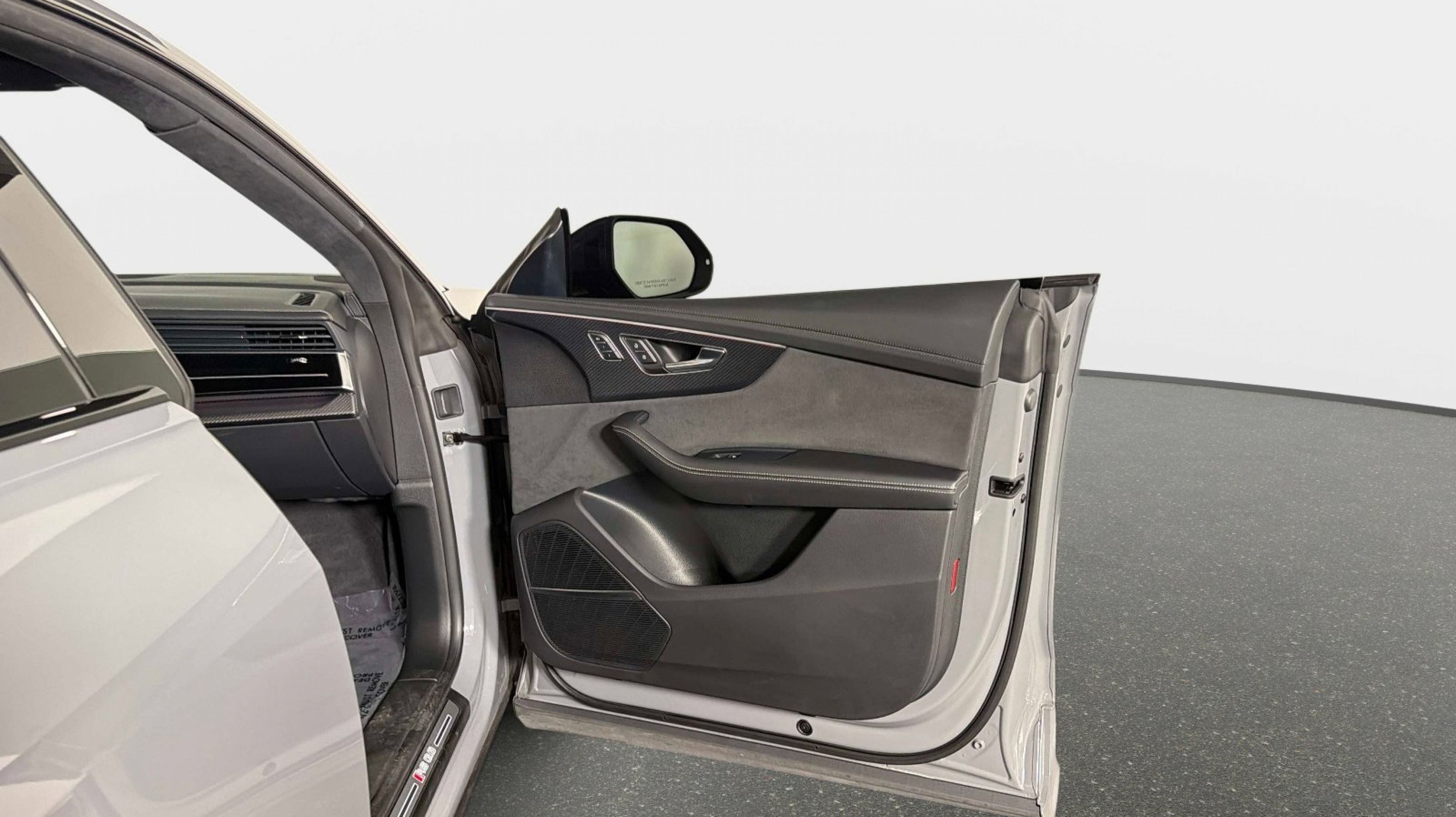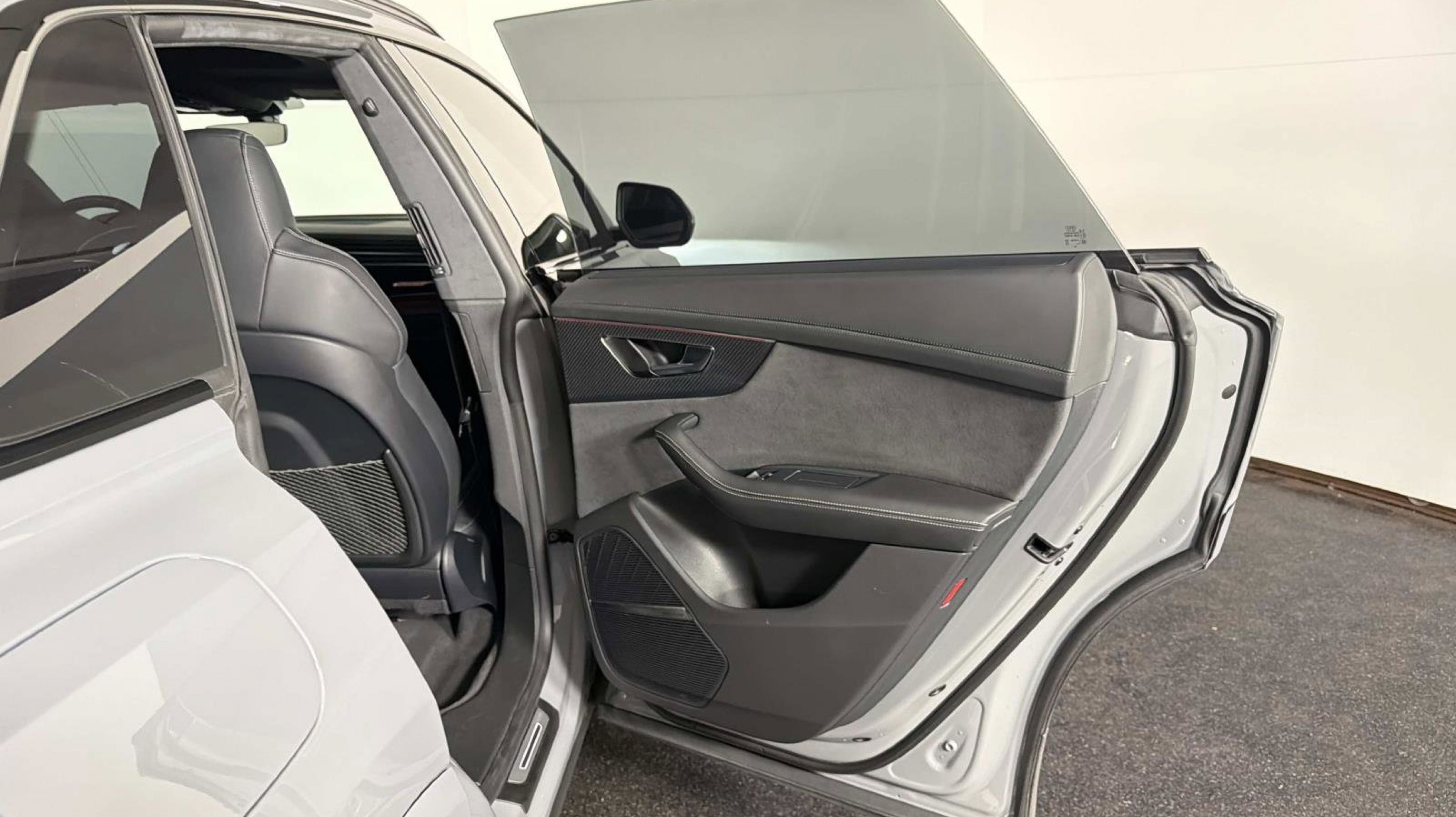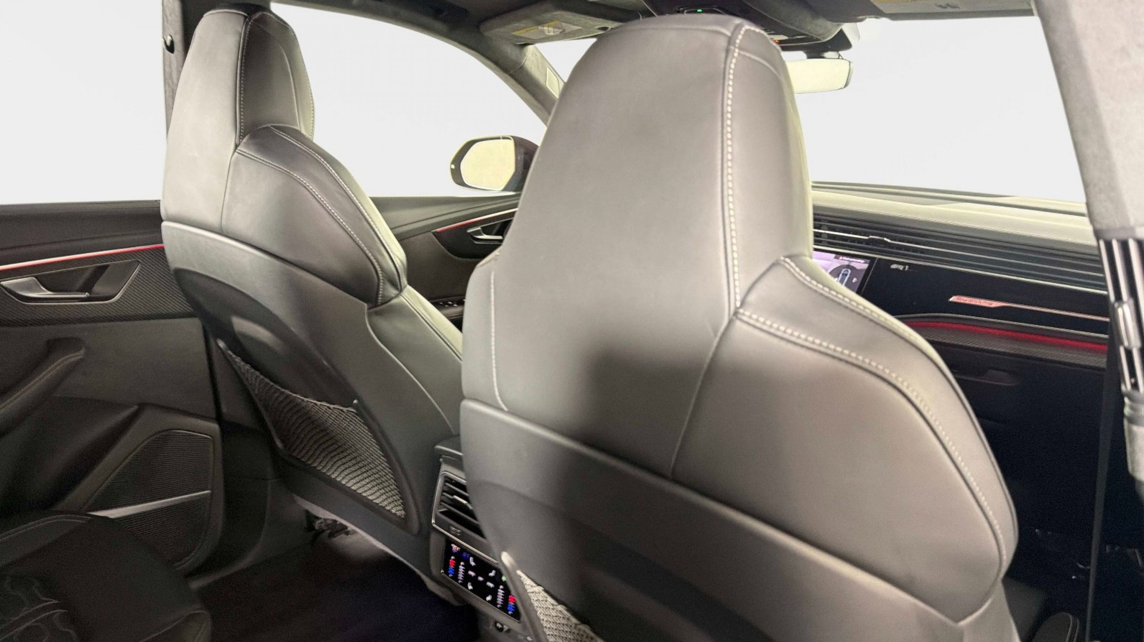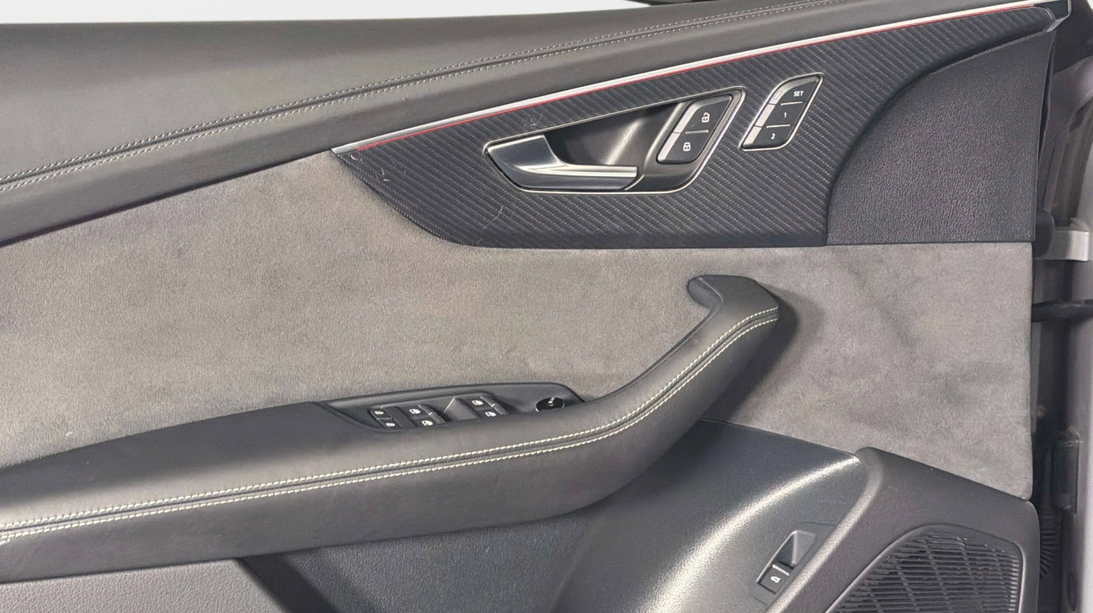 Black Dinamica Headliner, Black Mirror Housings, Black Optic Package, Black Roof Rails, Carbon Mask & Front Bumper Inlays, Carbon Mirror Housings, Carbon Optic Package, Carbon Rear Bumper Inlay, Carbon Rear Lighting Strip, Dual-Pane Acoustic Glass for Side Windows, Executive Package, Head-Up Display, Heated Rear Seats, Intersection Assist, Luxury Package, Massage Function for Front Seats, Power Soft-Closing Doors, Red Brake Calipers, Remote Park Assist Plus, Sport Exhaust System w/Black Tips, Traffic Sign Recognition, Wheels: 23 Audi Sport 5 Y-Spoke Rotor Design, 17 Speakers, 4-Wheel Disc Brakes, ABS brakes, Adaptive suspension, Air Conditioning, Alloy wheels, AM/FM radio: SiriusXM, Auto High-beam Headlights, Auto-dimming door mirrors, Auto-dimming Rear-View mirror, Auto-leveling suspension, Automatic temperature control, Bang & Olufsen Premium Sound System w/3D Sound, Brake assist, Bumpers: body-color, Compass, Delay-off headlights, Driver door bin, Driver vanity mirror, Dual front impact airbags, Dual front side impact airbags, Electronic Stability Control, Emergency communication system: Audi connect CARE, Exterior Parking Camera Rear, Four wheel independent suspension, Front anti-roll bar, Front Bucket Seats, Front Center Armrest, Front dual zone A/C, Front fog lights, Front reading lights, Fully automatic headlights, Garage door transmitter: HomeLink, Headlight cleaning, Heated & Ventilated Sports Seats Plus, Heated door mirrors, Heated front seats, Heated steering wheel, Illuminated entry, Leather Shift Knob, Leather steering wheel, Low tire pressure warning, Memory seat, Navigation system: Audi MMI Navigation plus with Touch Response, Occupant sensing airbag, Outside temperature display, Overhead airbag, Overhead console, Panic alarm, Passenger door bin, Passenger vanity mirror, Perforated Valcona Leather Seating Surfaces, Power door mirrors, Power driver seat, Power Liftgate, Power moonroof: Panoramic, Power passenger seat, Power steering, Power windows, Radio data system, Radio: MMI Navigation Plus, Rain sensing wipers, Rear air conditioning, Rear anti-roll bar, Rear dual zone A/C, Rear fog lights, Rear reading lights, Rear seat center armrest, Rear side impact airbag, Rear Window Blind, Rear window defroster, Rear window wiper, Remote keyless entry, Security system, Speed control, Speed-sensing steering, Split folding rear seat, Spoiler, Steering wheel memory, Steering wheel mounted audio controls, Tachometer, TBD Axle Ratio, Telescoping steering wheel, Tilt steering wheel, Traction control, Trip computer, Turn signal indicator mirrors, Variably intermittent wipers, Ventilated front seats, Wheels: 22 10-V-Spoke Star Design, Black Dinamica Headliner, Black Mirror Housings, Black Optic Package, Black Roof Rails, Carbon Mask & Front Bumper Inlays, Carbon Mirror Housings, Carbon Optic Package, Carbon Rear Bumper Inlay, Carbon Rear Lighting Strip, Dual-Pane Acoustic Glass for Side Windows, Executive Package, Head-Up Display, Heated Rear Seats, Intersection Assist, Luxury Package, Massage Function for Front Seats, Power Soft-Closing Doors, Red Brake Calipers, Remote Park Assist Plus, Sport Exhaust System w/Black Tips, Traffic Sign Recognition, Wheels: 23 Audi Sport 5 Y-Spoke Rotor Design.