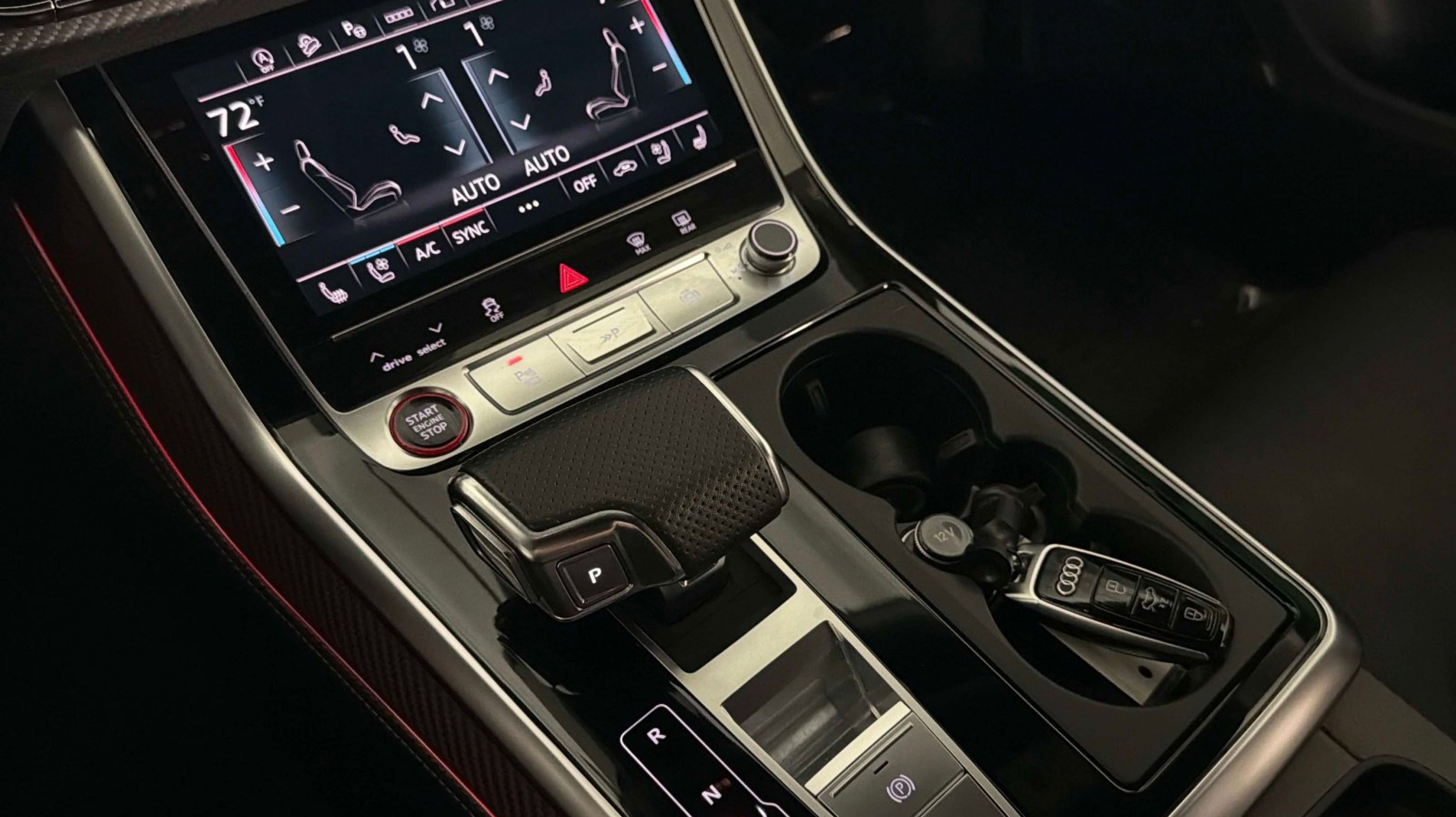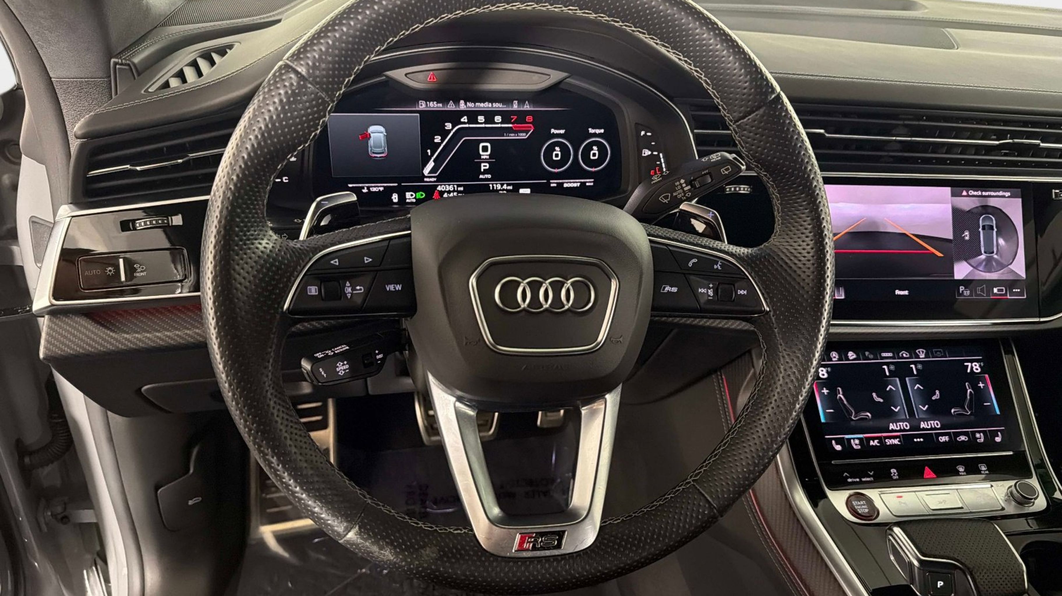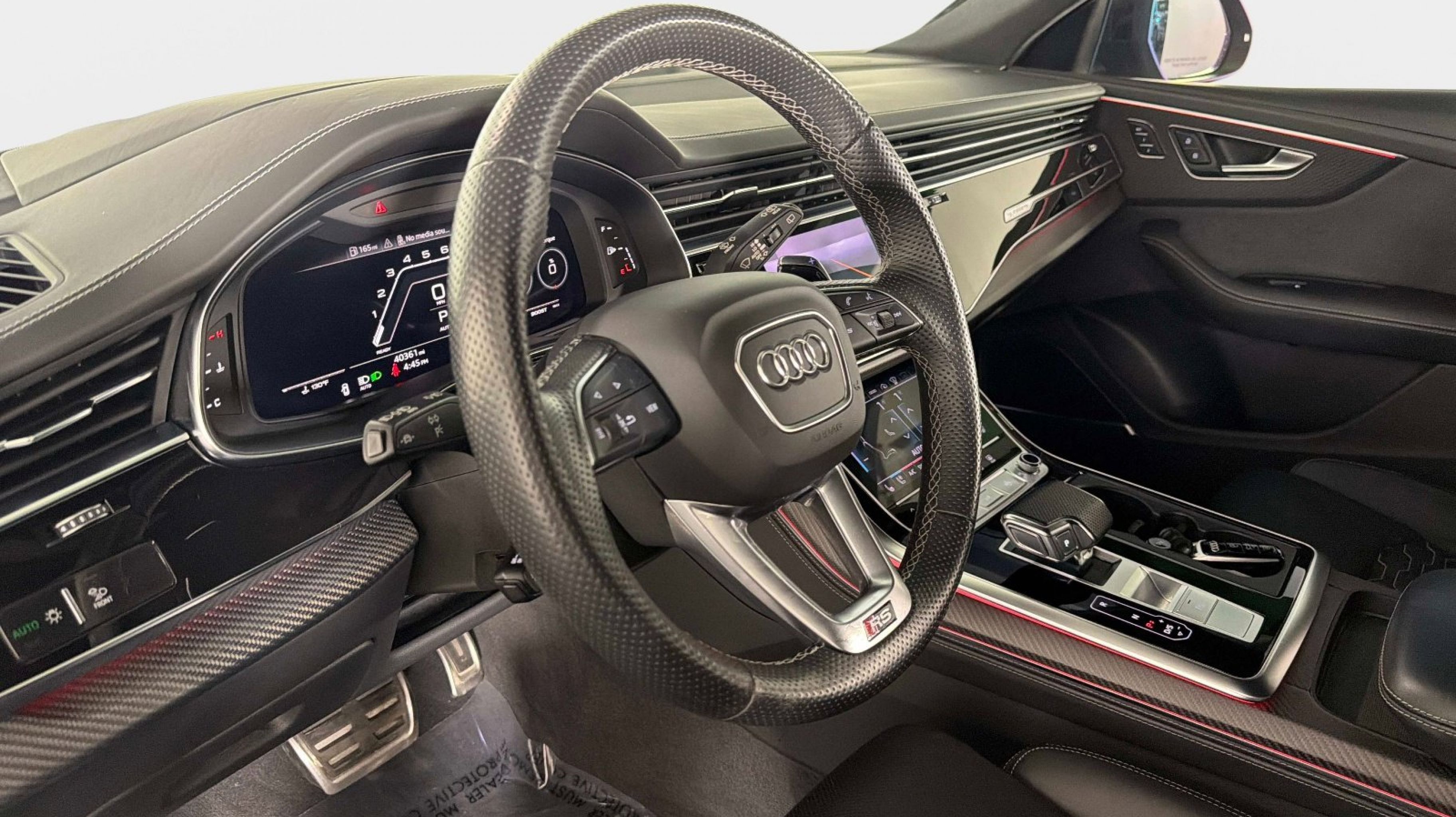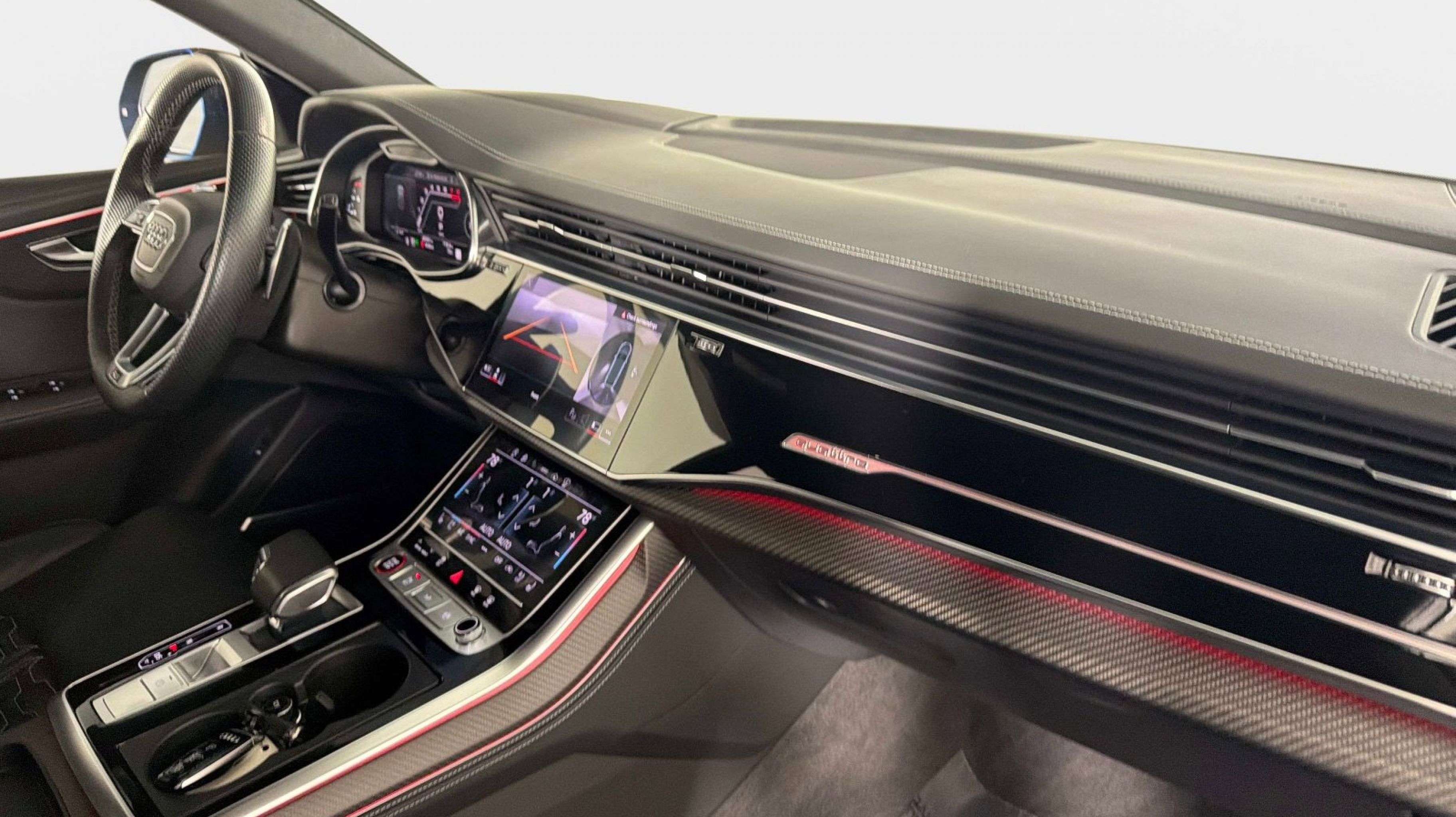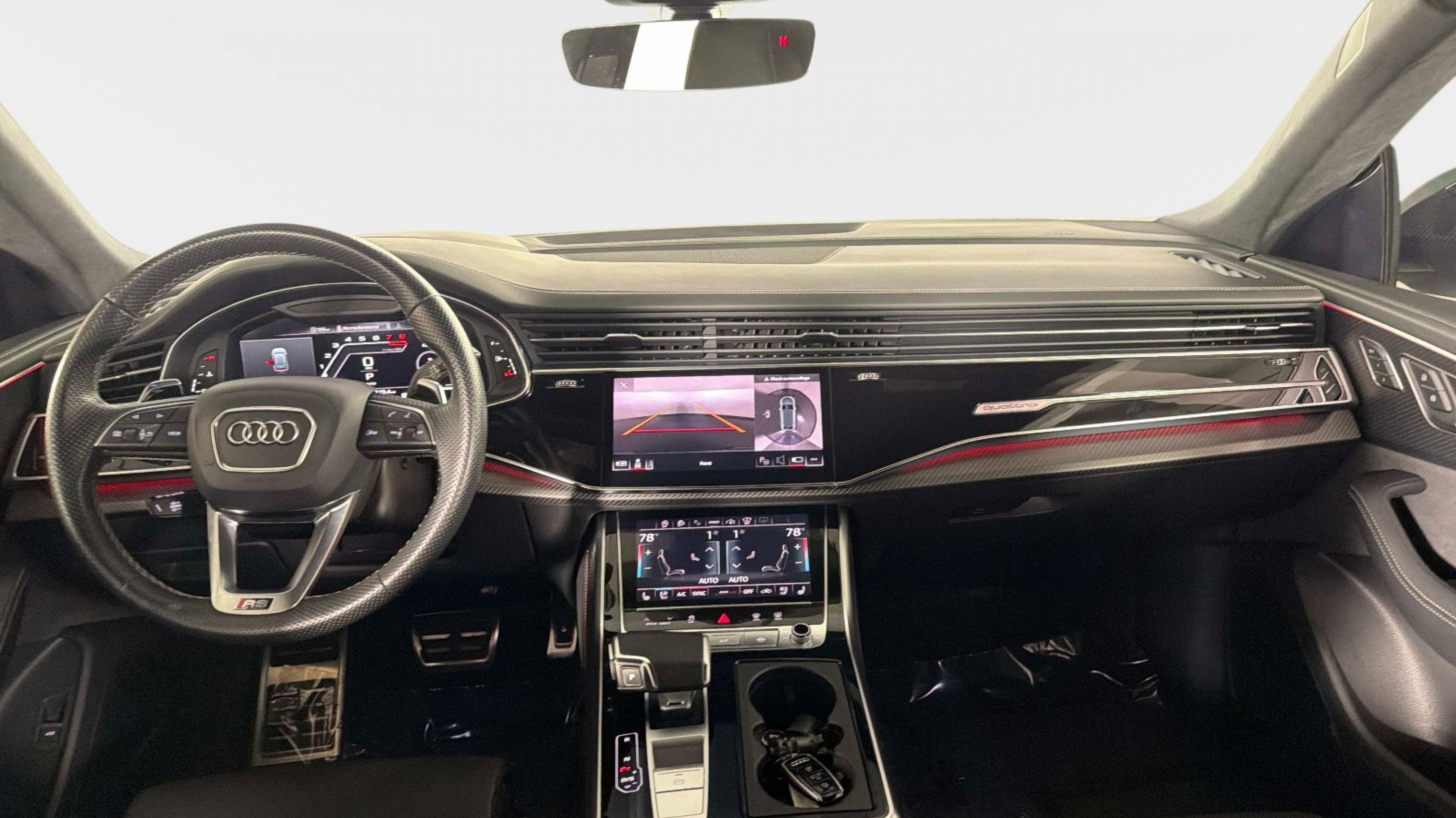 Black Dinamica Headliner, Black Mirror Housings, Black Optic Package, Black Roof Rails, Carbon Mask & Front Bumper Inlays, Carbon Mirror Housings, Carbon Optic Package, Carbon Rear Bumper Inlay, Carbon Rear Lighting Strip, Dual-Pane Acoustic Glass for Side Windows, Executive Package, Head-Up Display, Heated Rear Seats, Intersection Assist, Luxury Package, Massage Function for Front Seats, Power Soft-Closing Doors, Red Brake Calipers, Remote Park Assist Plus, Sport Exhaust System w/Black Tips, Traffic Sign Recognition, Wheels: 23 Audi Sport 5 Y-Spoke Rotor Design, 17 Speakers, 4-Wheel Disc Brakes, ABS brakes, Adaptive suspension, Air Conditioning, Alloy wheels, AM/FM radio: SiriusXM, Auto High-beam Headlights, Auto-dimming door mirrors, Auto-dimming Rear-View mirror, Auto-leveling suspension, Automatic temperature control, Bang & Olufsen Premium Sound System w/3D Sound, Brake assist, Bumpers: body-color, Compass, Delay-off headlights, Driver door bin, Driver vanity mirror, Dual front impact airbags, Dual front side impact airbags, Electronic Stability Control, Emergency communication system: Audi connect CARE, Exterior Parking Camera Rear, Four wheel independent suspension, Front anti-roll bar, Front Bucket Seats, Front Center Armrest, Front dual zone A/C, Front fog lights, Front reading lights, Fully automatic headlights, Garage door transmitter: HomeLink, Headlight cleaning, Heated & Ventilated Sports Seats Plus, Heated door mirrors, Heated front seats, Heated steering wheel, Illuminated entry, Leather Shift Knob, Leather steering wheel, Low tire pressure warning, Memory seat, Navigation system: Audi MMI Navigation plus with Touch Response, Occupant sensing airbag, Outside temperature display, Overhead airbag, Overhead console, Panic alarm, Passenger door bin, Passenger vanity mirror, Perforated Valcona Leather Seating Surfaces, Power door mirrors, Power driver seat, Power Liftgate, Power moonroof: Panoramic, Power passenger seat, Power steering, Power windows, Radio data system, Radio: MMI Navigation Plus, Rain sensing wipers, Rear air conditioning, Rear anti-roll bar, Rear dual zone A/C, Rear fog lights, Rear reading lights, Rear seat center armrest, Rear side impact airbag, Rear Window Blind, Rear window defroster, Rear window wiper, Remote keyless entry, Security system, Speed control, Speed-sensing steering, Split folding rear seat, Spoiler, Steering wheel memory, Steering wheel mounted audio controls, Tachometer, TBD Axle Ratio, Telescoping steering wheel, Tilt steering wheel, Traction control, Trip computer, Turn signal indicator mirrors, Variably intermittent wipers, Ventilated front seats, Wheels: 22 10-V-Spoke Star Design, Black Dinamica Headliner, Black Mirror Housings, Black Optic Package, Black Roof Rails, Carbon Mask & Front Bumper Inlays, Carbon Mirror Housings, Carbon Optic Package, Carbon Rear Bumper Inlay, Carbon Rear Lighting Strip, Dual-Pane Acoustic Glass for Side Windows, Executive Package, Head-Up Display, Heated Rear Seats, Intersection Assist, Luxury Package, Massage Function for Front Seats, Power Soft-Closing Doors, Red Brake Calipers, Remote Park Assist Plus, Sport Exhaust System w/Black Tips, Traffic Sign Recognition, Wheels: 23 Audi Sport 5 Y-Spoke Rotor Design.