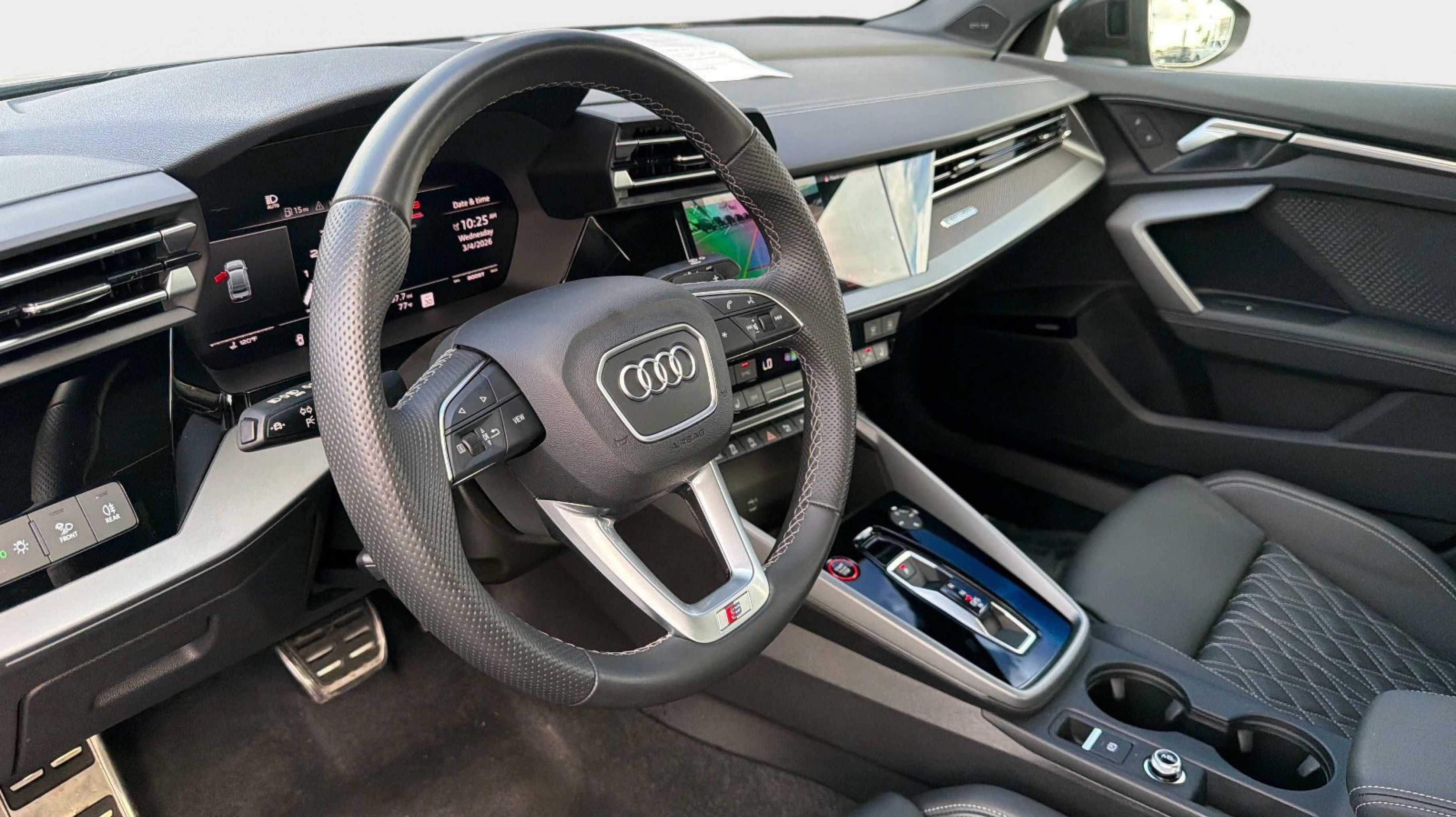The Audi S3 delivers a perfect balance of subtle aggression and premium refinement. Finished in Mythos Black Metallic, it offers a sleek, stealthy look paired with sporty accents and signature Audi styling.