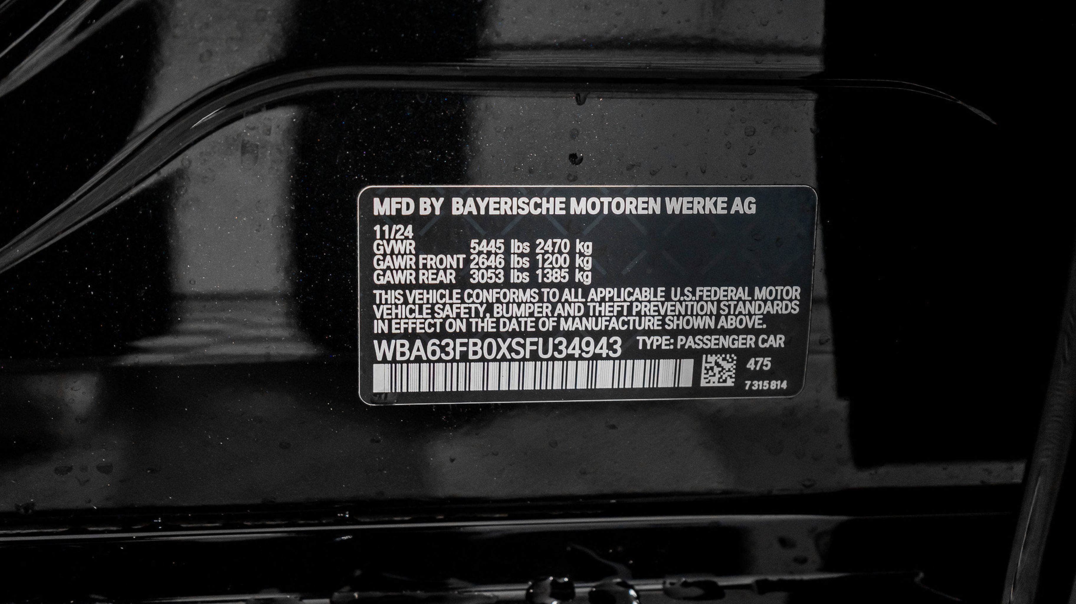 *** VIN: WBA63FB0XSU34943