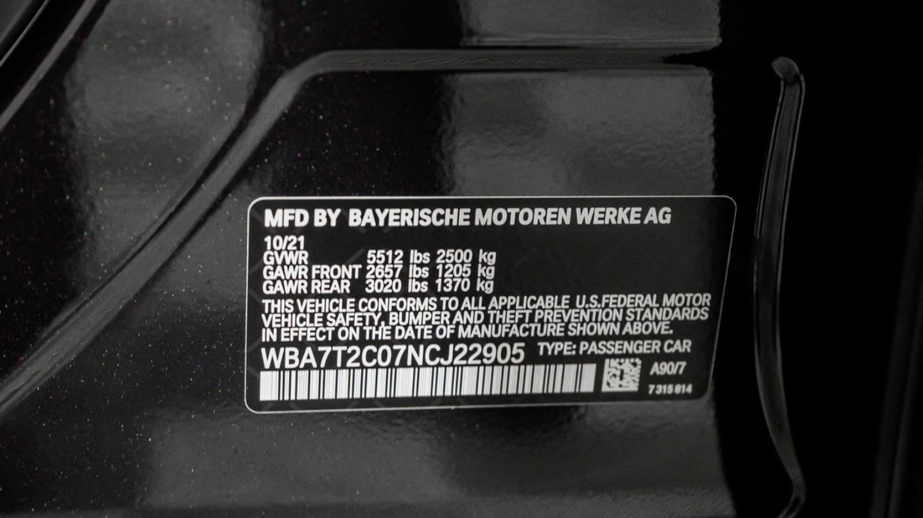 *** VIN: WBA7T2C07NCJ22905