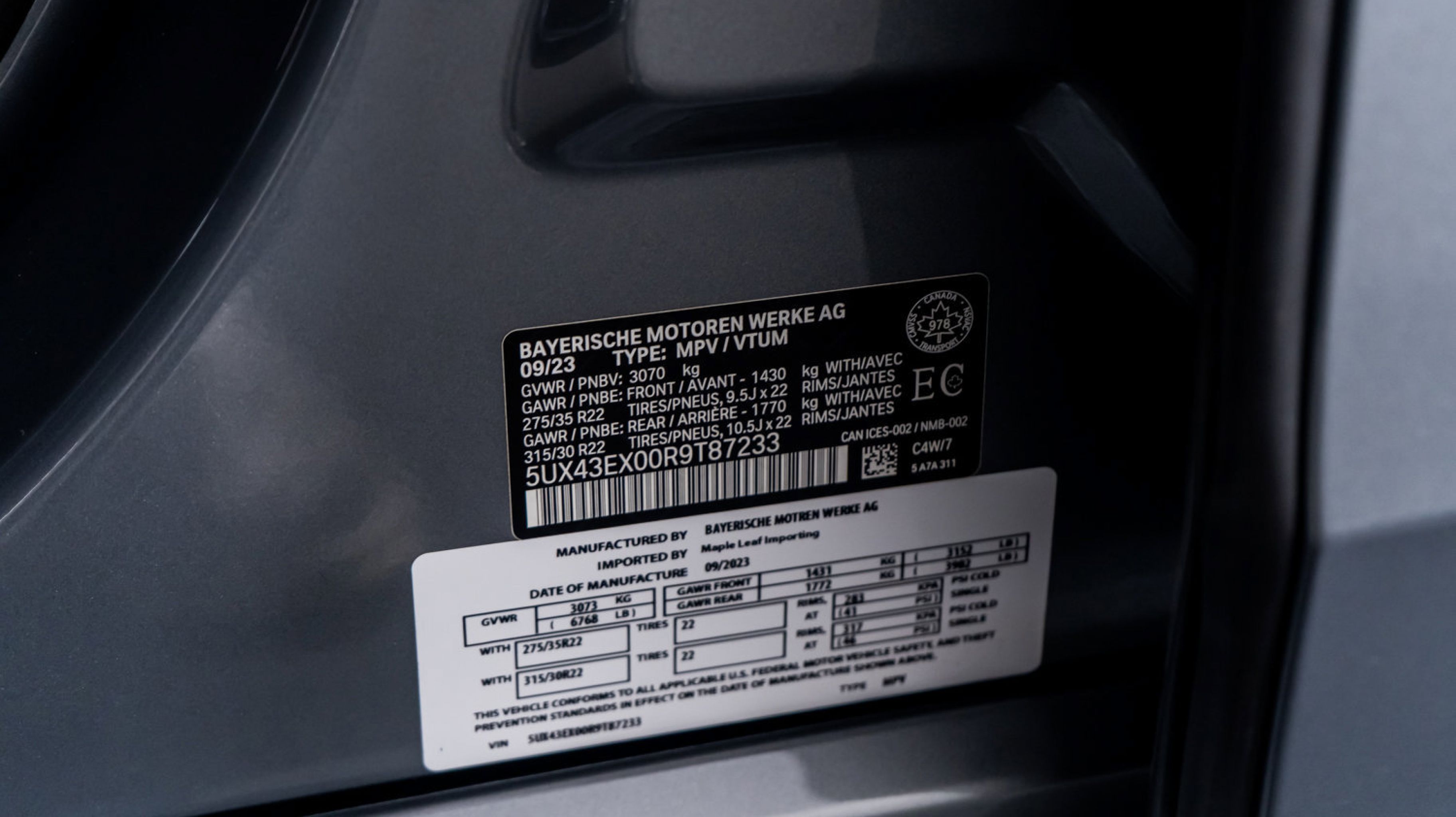 *** VIN: 5UX43EX09R9T82336