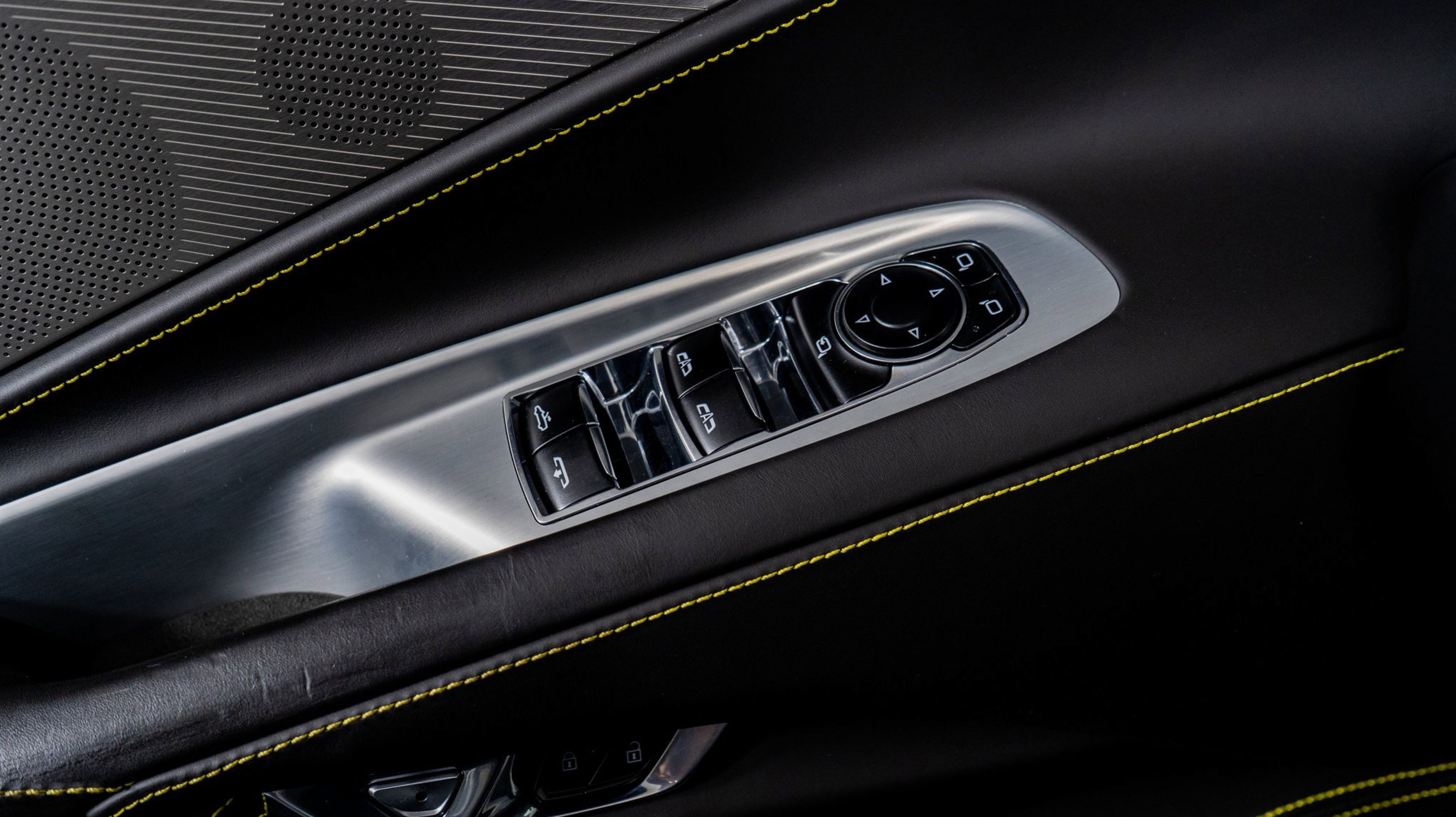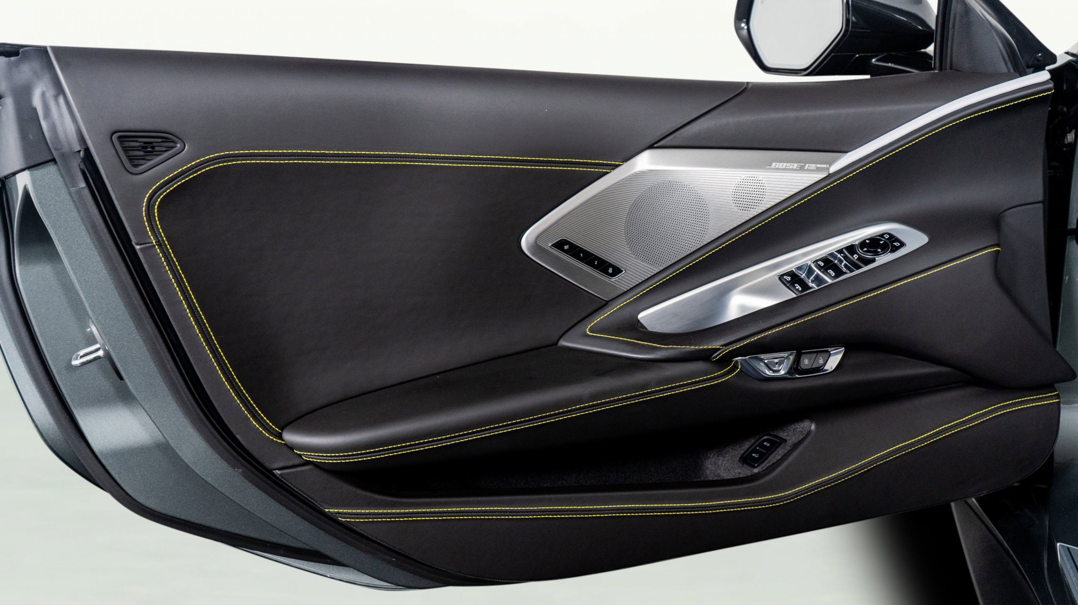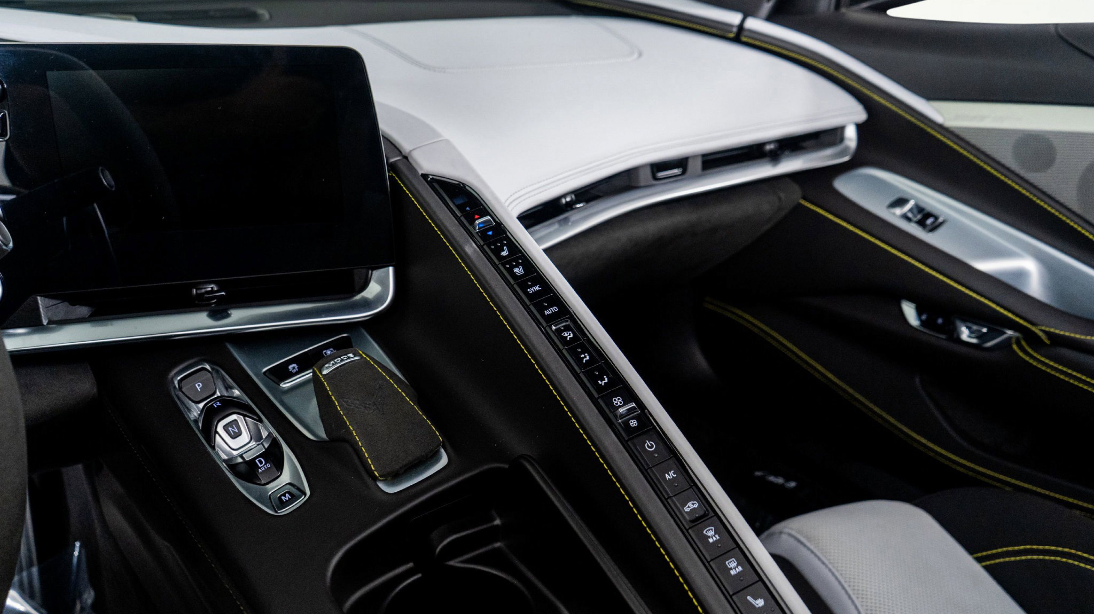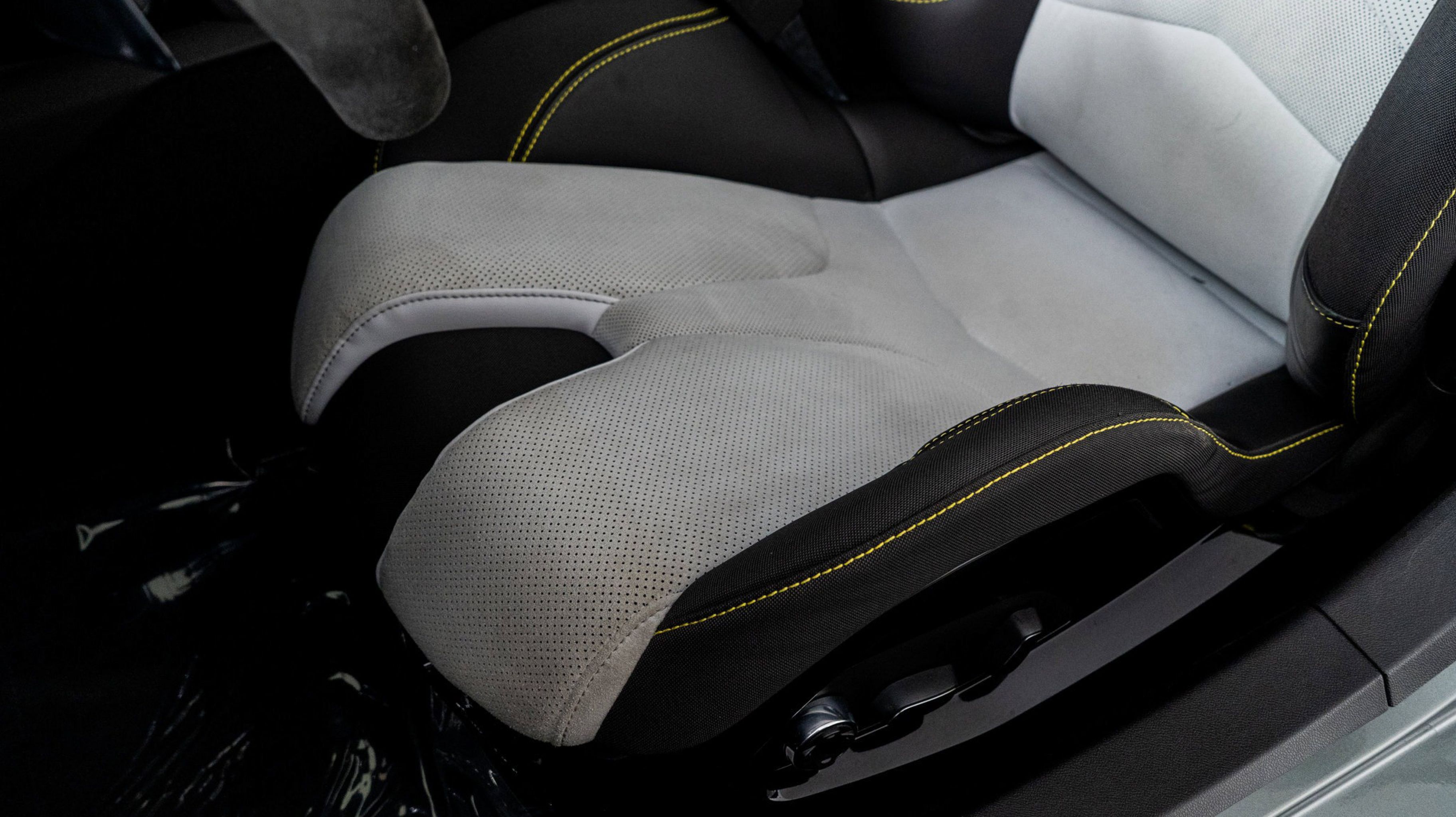 - SKY COOL GRAY/STRIKE YELLOW NAPA LEATHER SEATING SURFACES WITH PERFORATED SUEDED MICROFIBER INSERTS