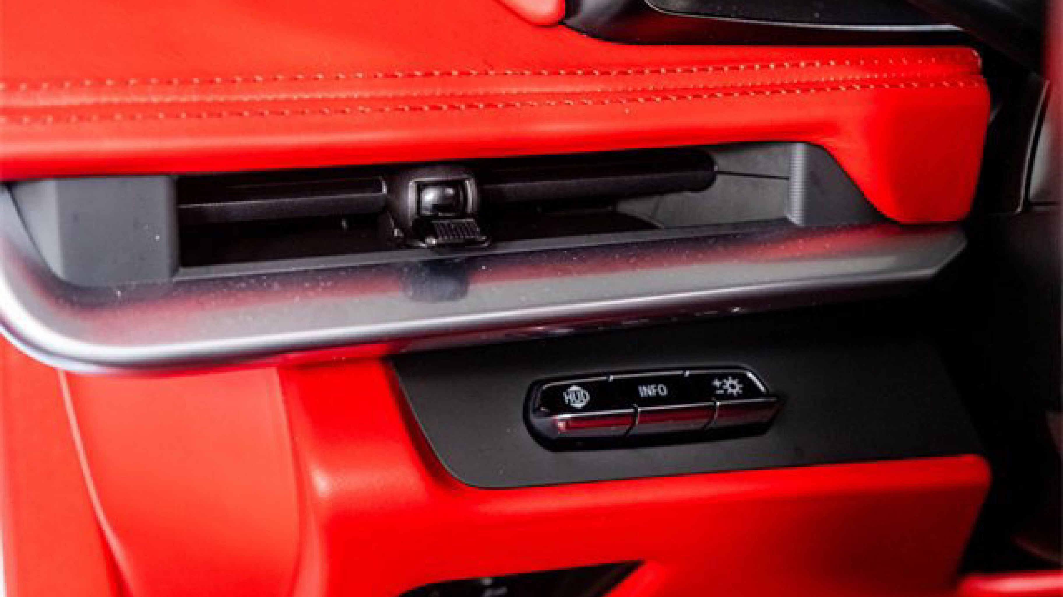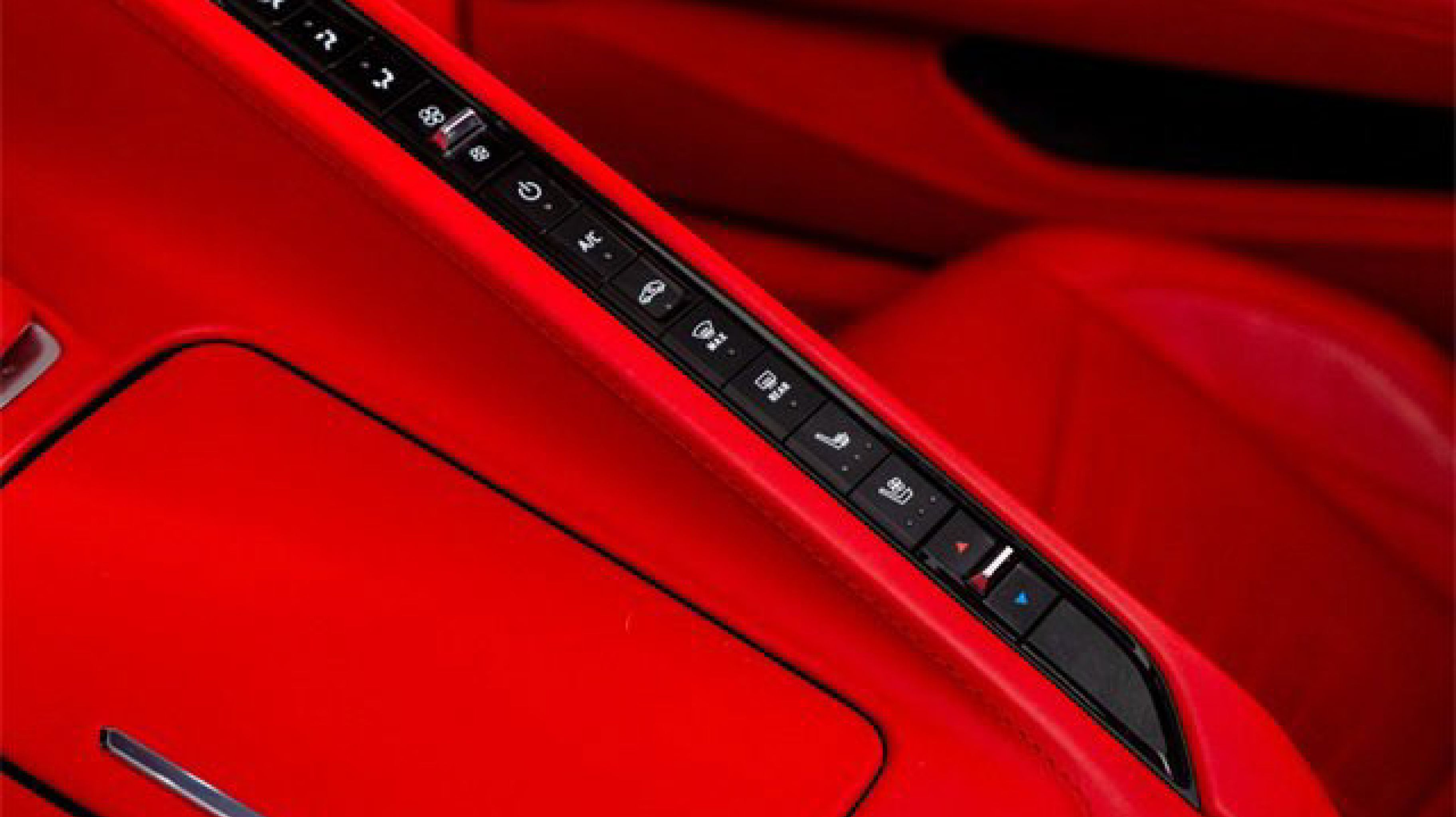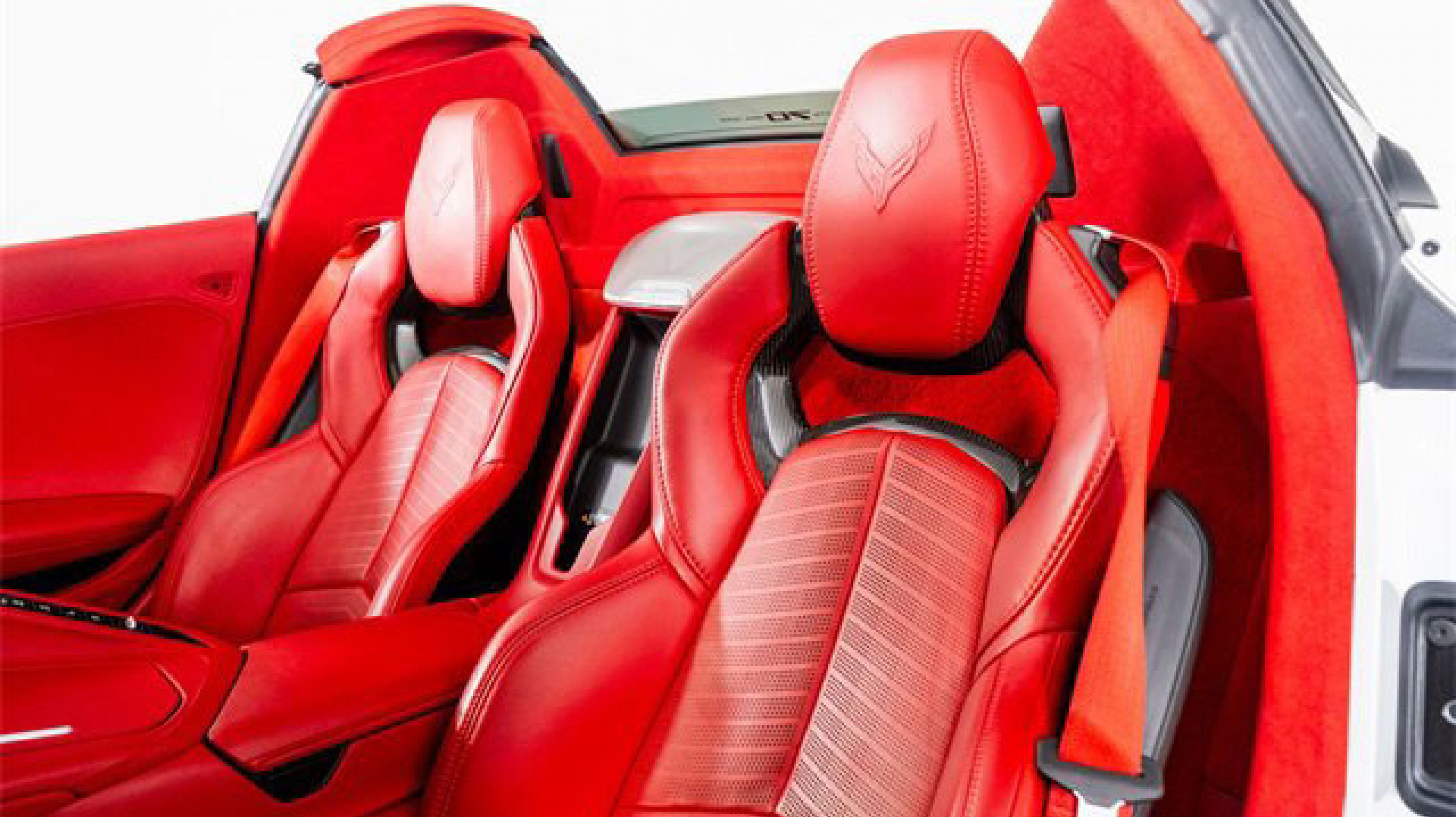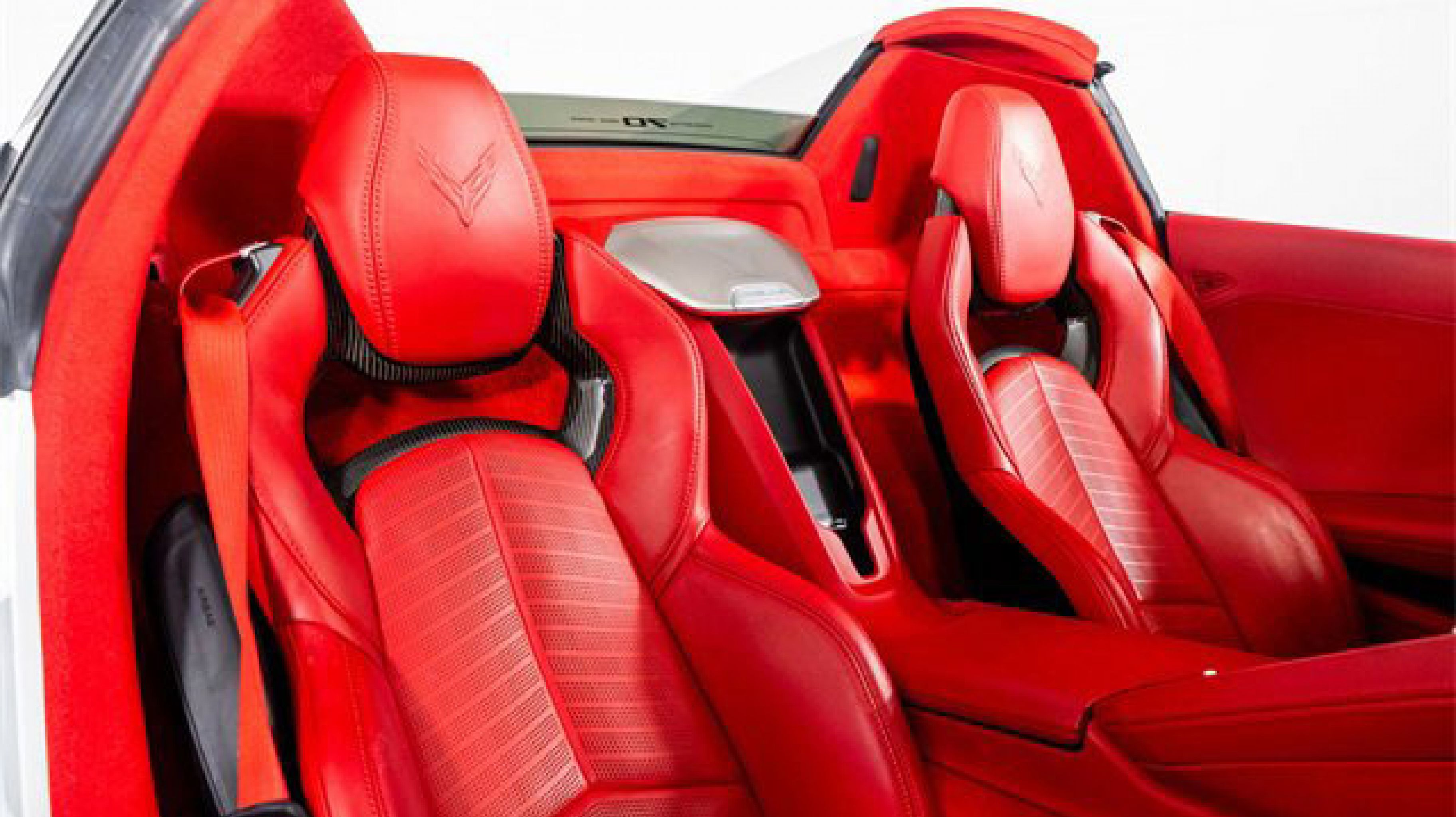 - ADRENALINE RED DIPPED NAPA LEATHER SEATING SURFACES WITH PERFORATED INSERTS (Full color interior (instrument panel doors and carpet.))