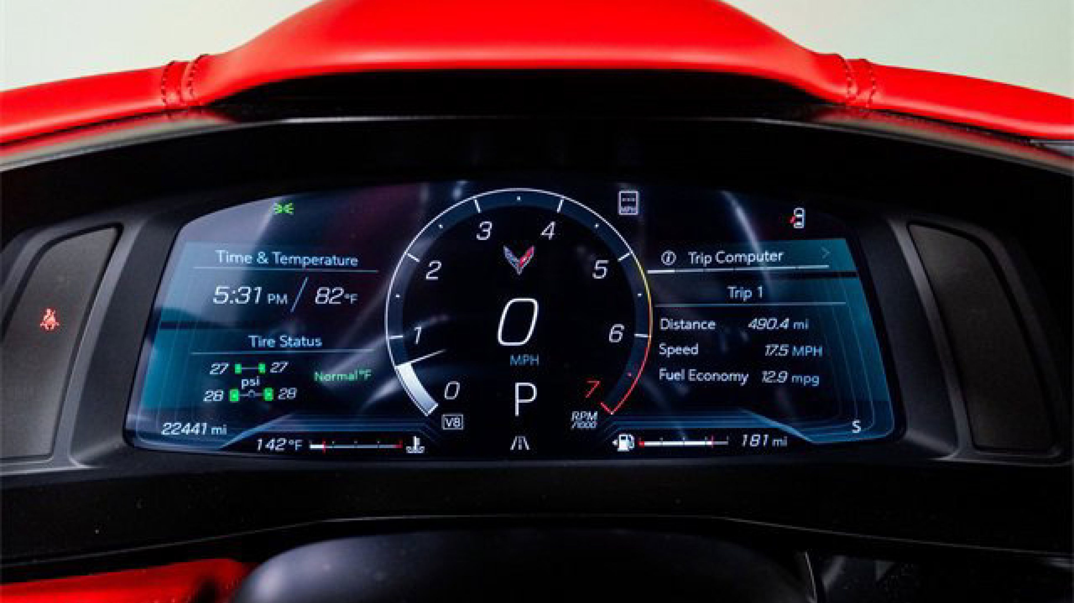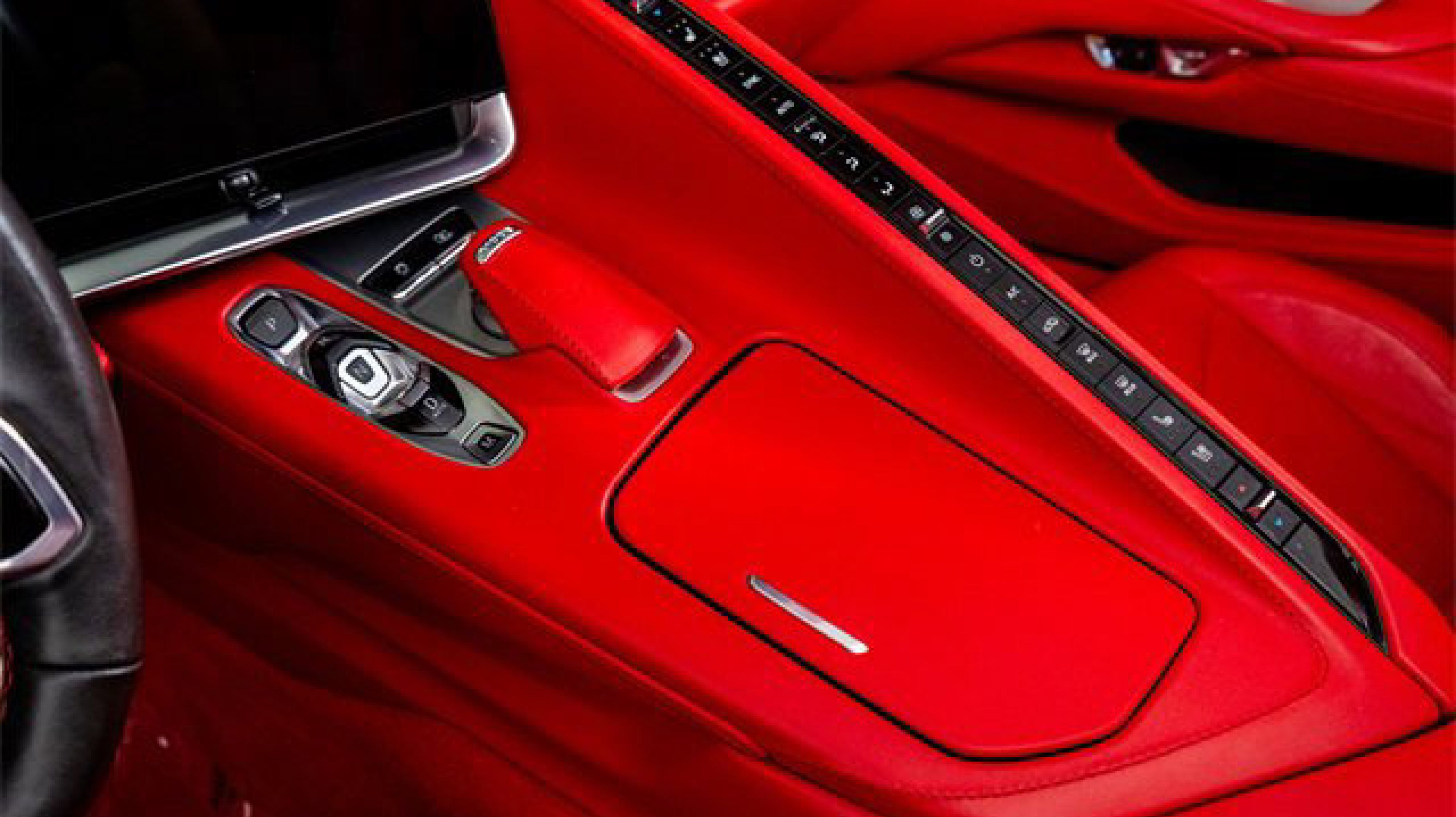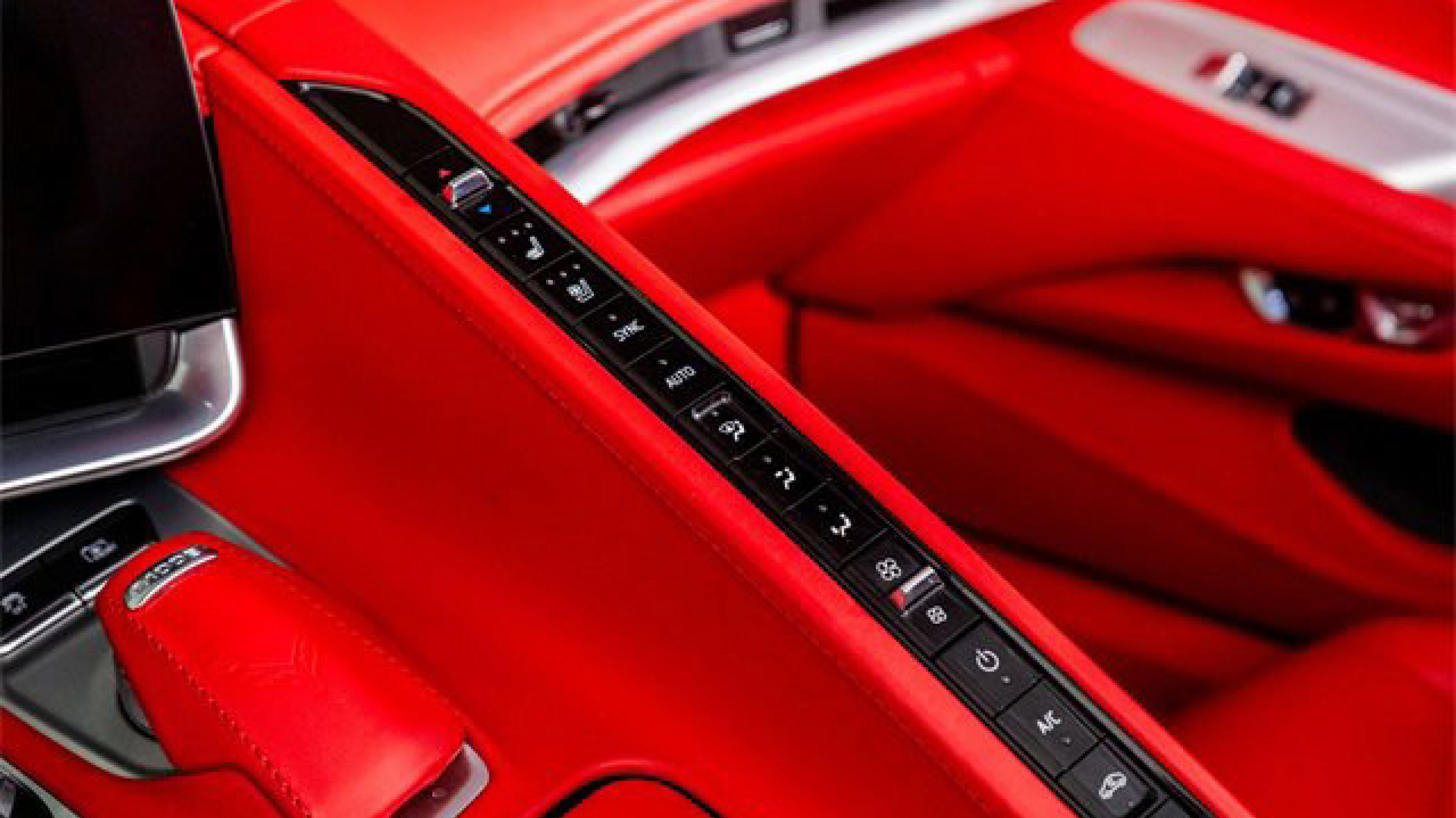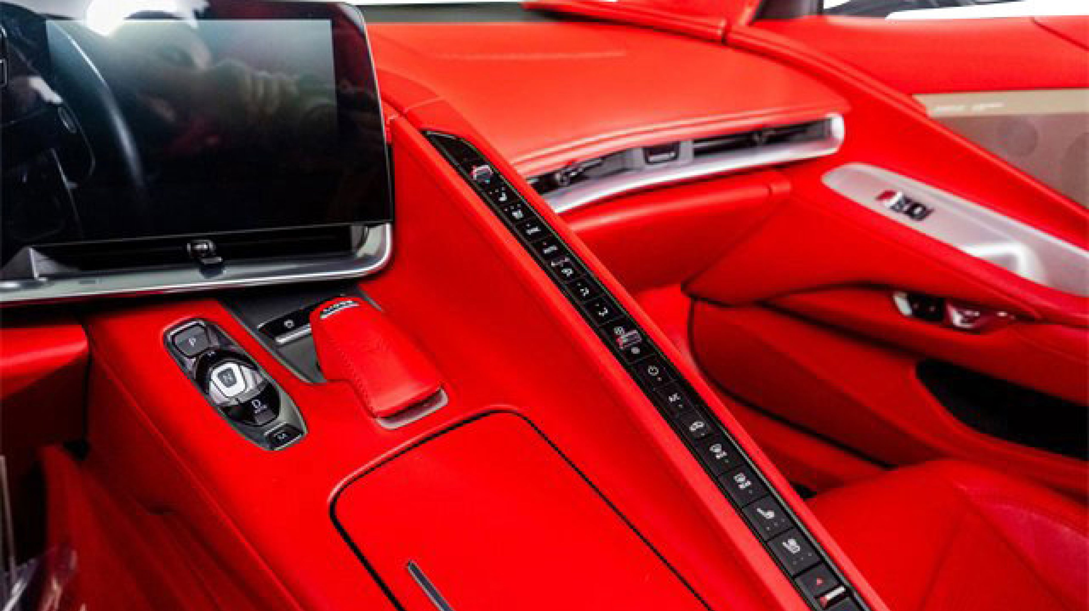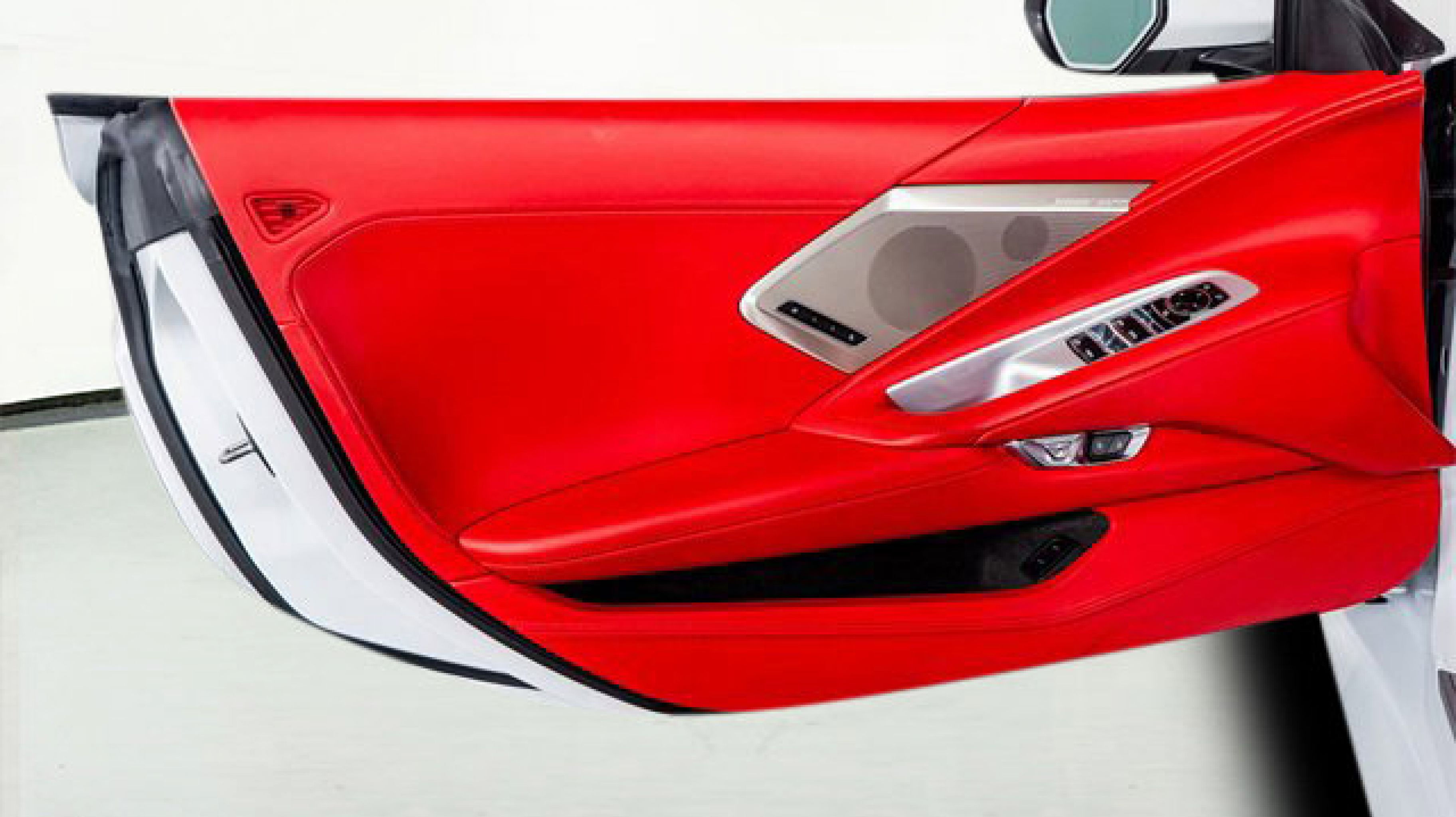 - ADRENALINE RED DIPPED NAPA LEATHER SEATING SURFACES WITH PERFORATED INSERTS (Full color interior (instrument panel doors and carpet.))
