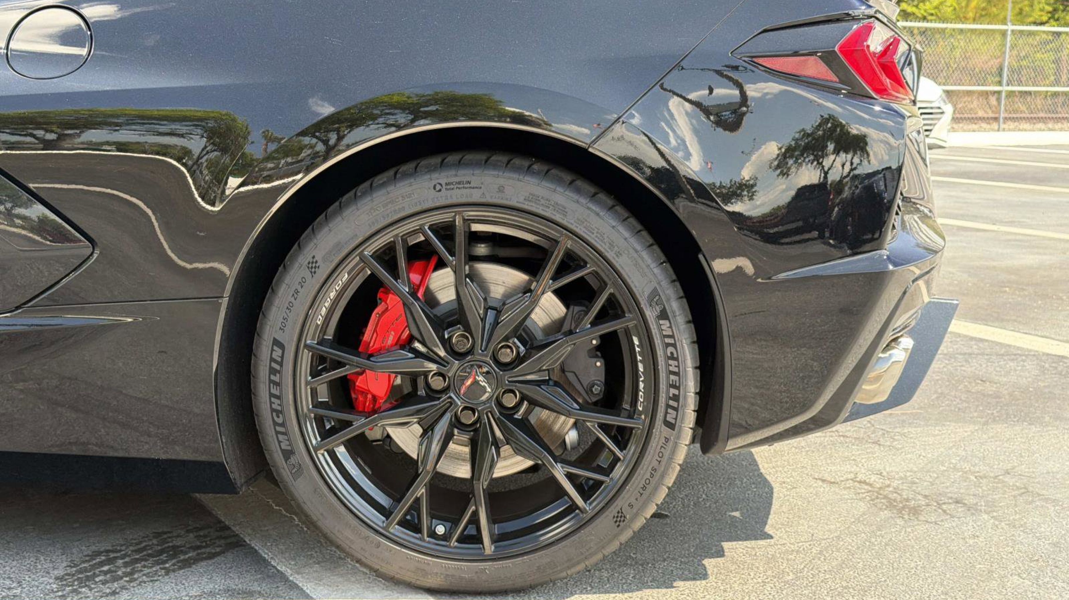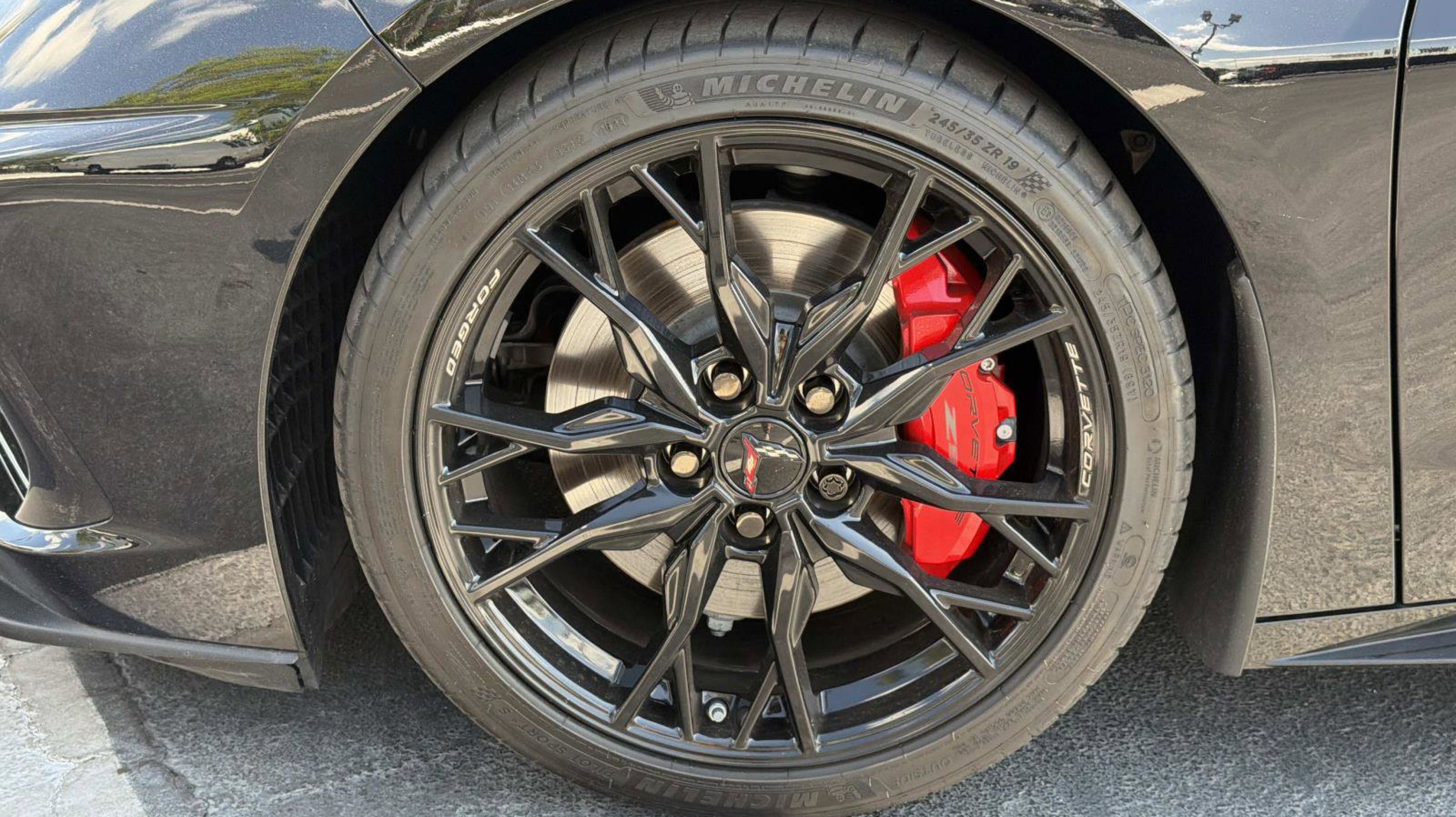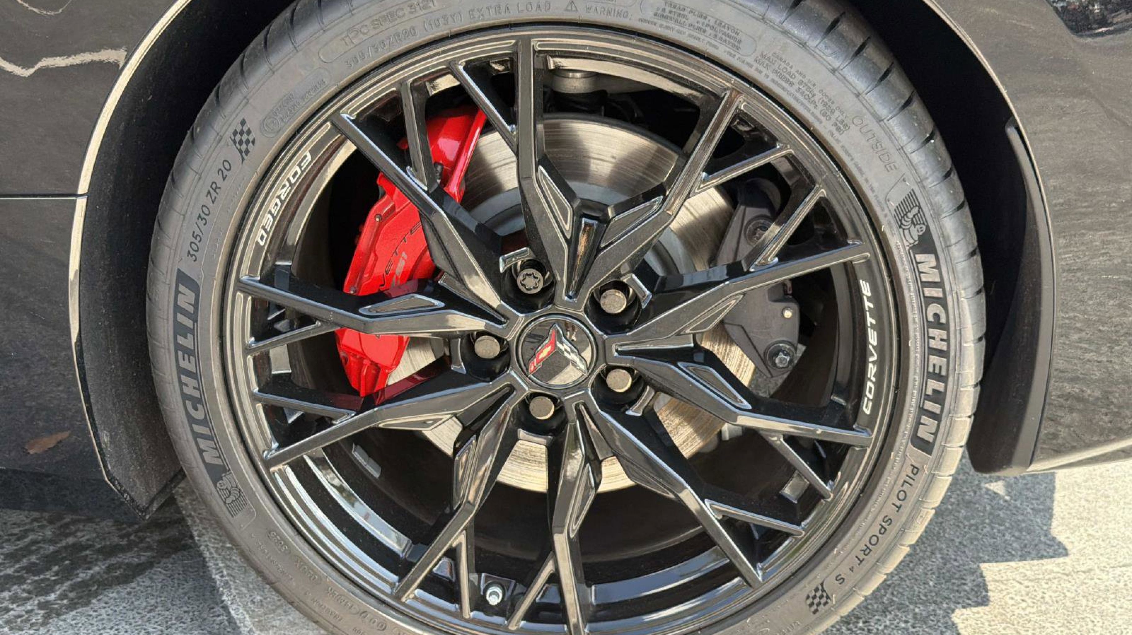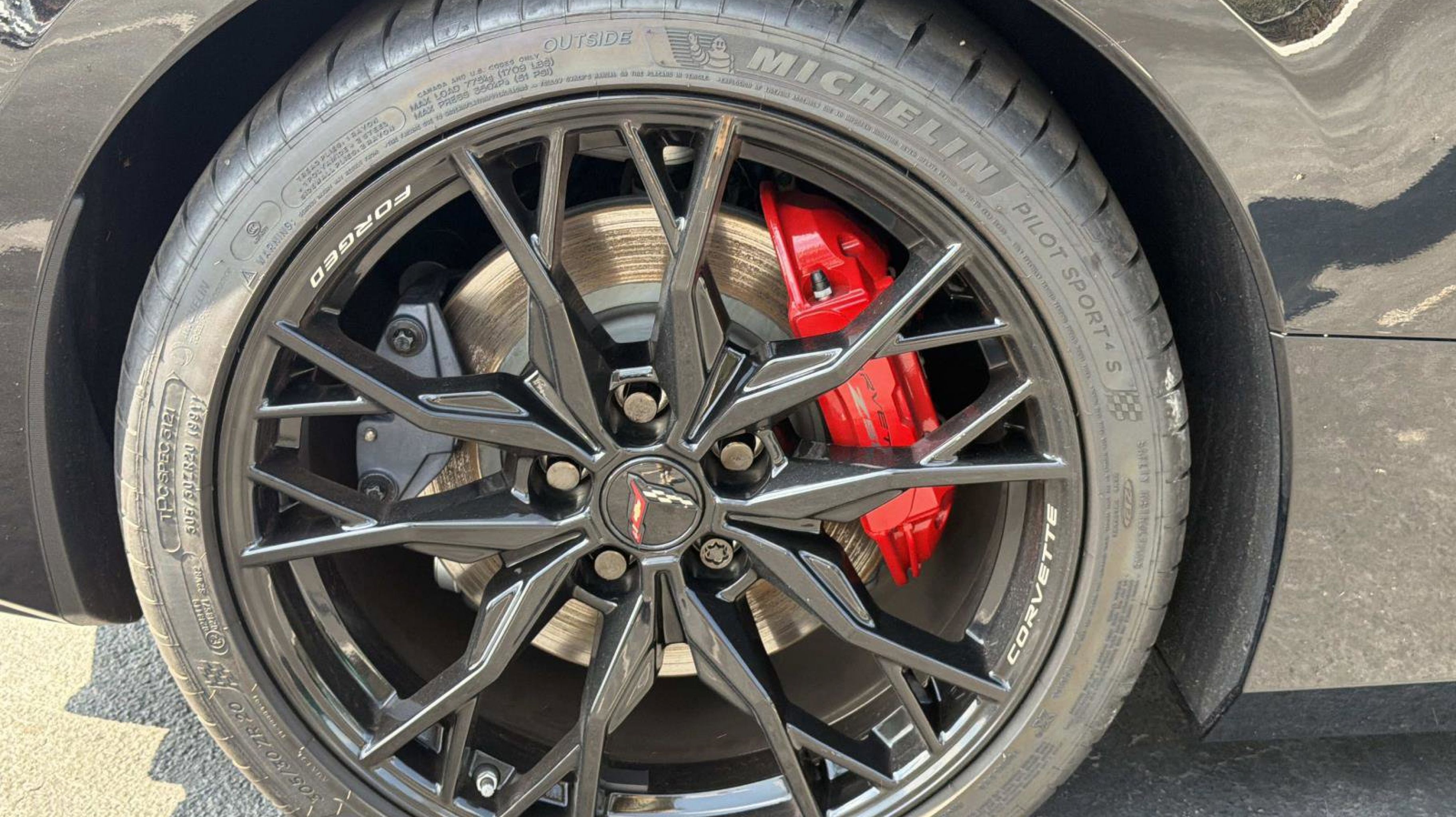 - WHEELS 19 X 8.5 (48.3 CM X 21.6 CM) FRONT AND 20 X 11 (50.8 CM X 27.9 CM) REAR 20-SPOKE GLOSS BLACK FORGED ALUMINUM