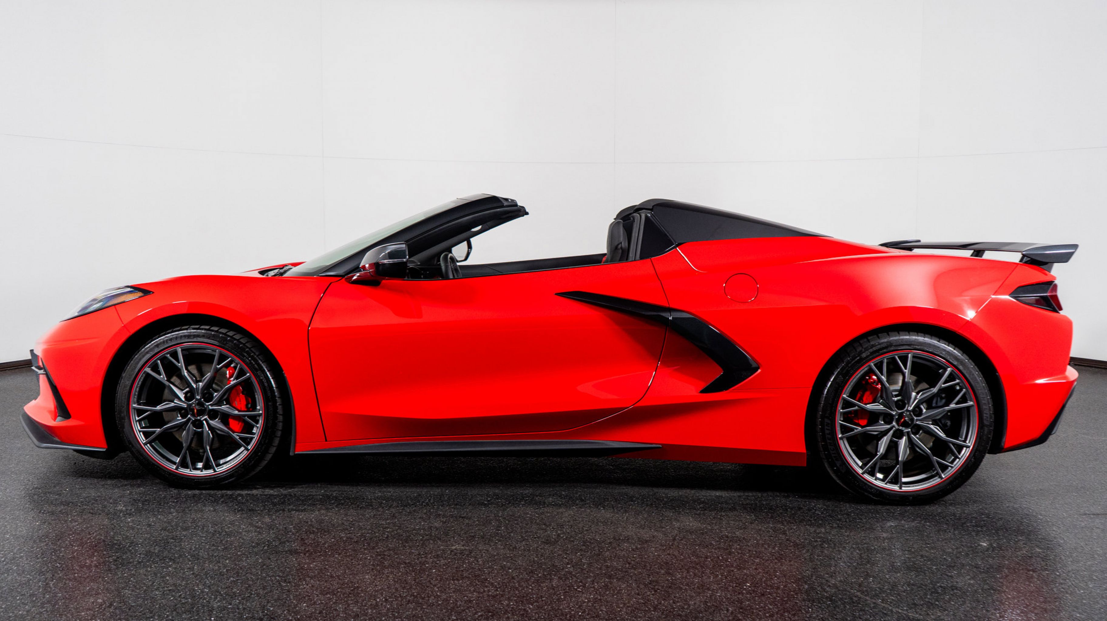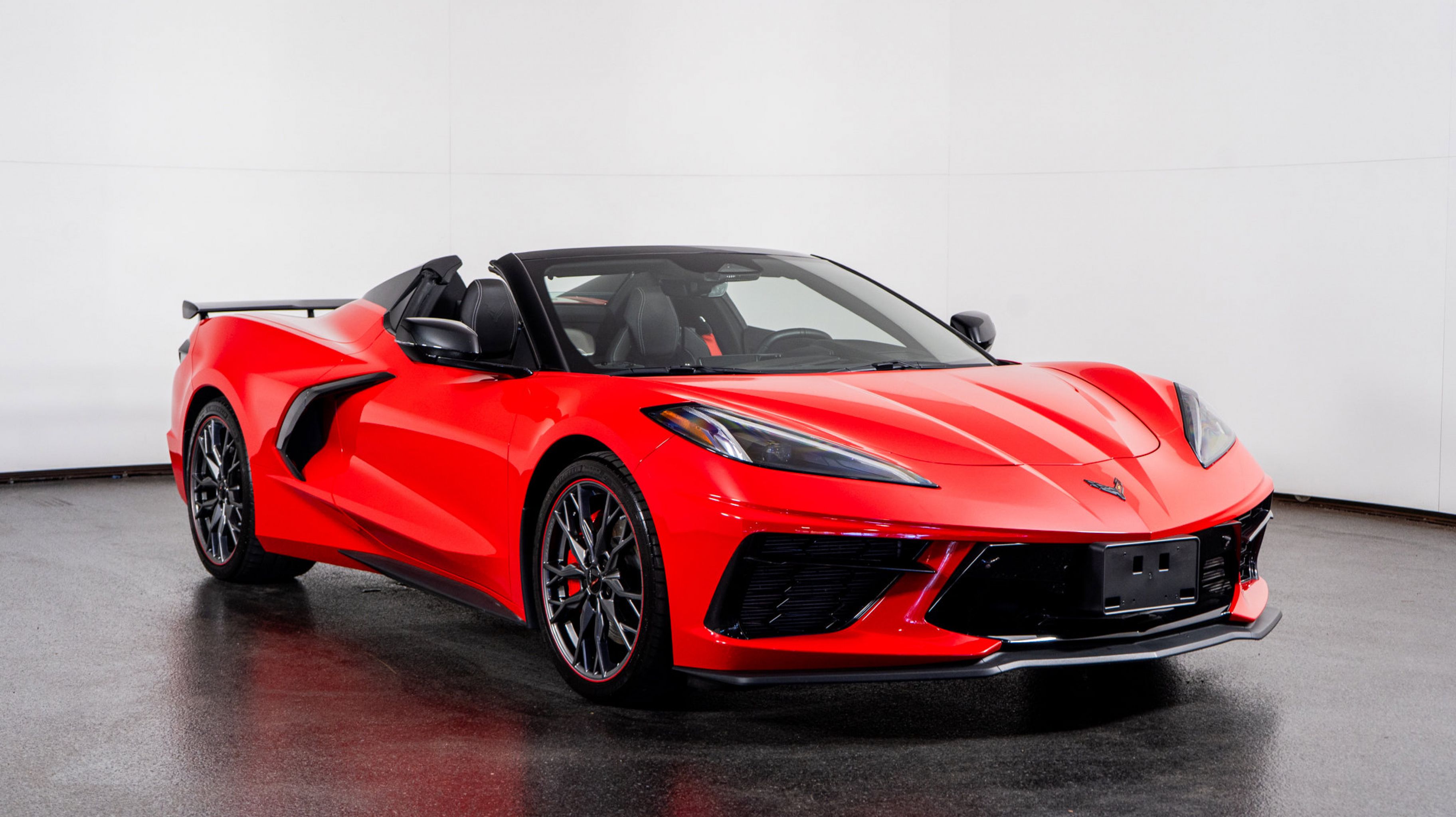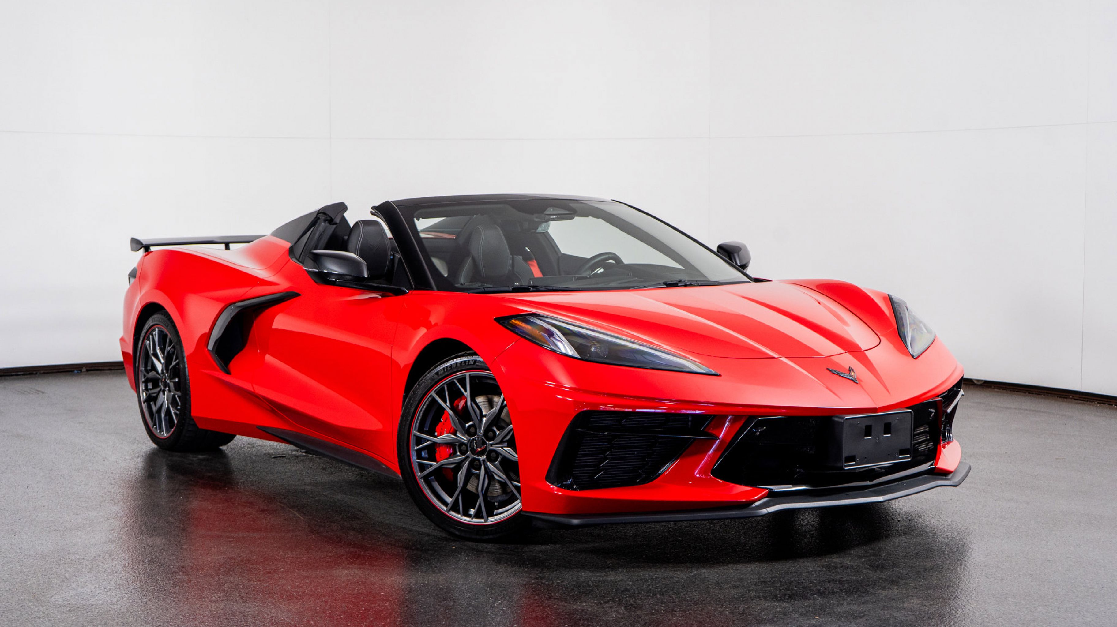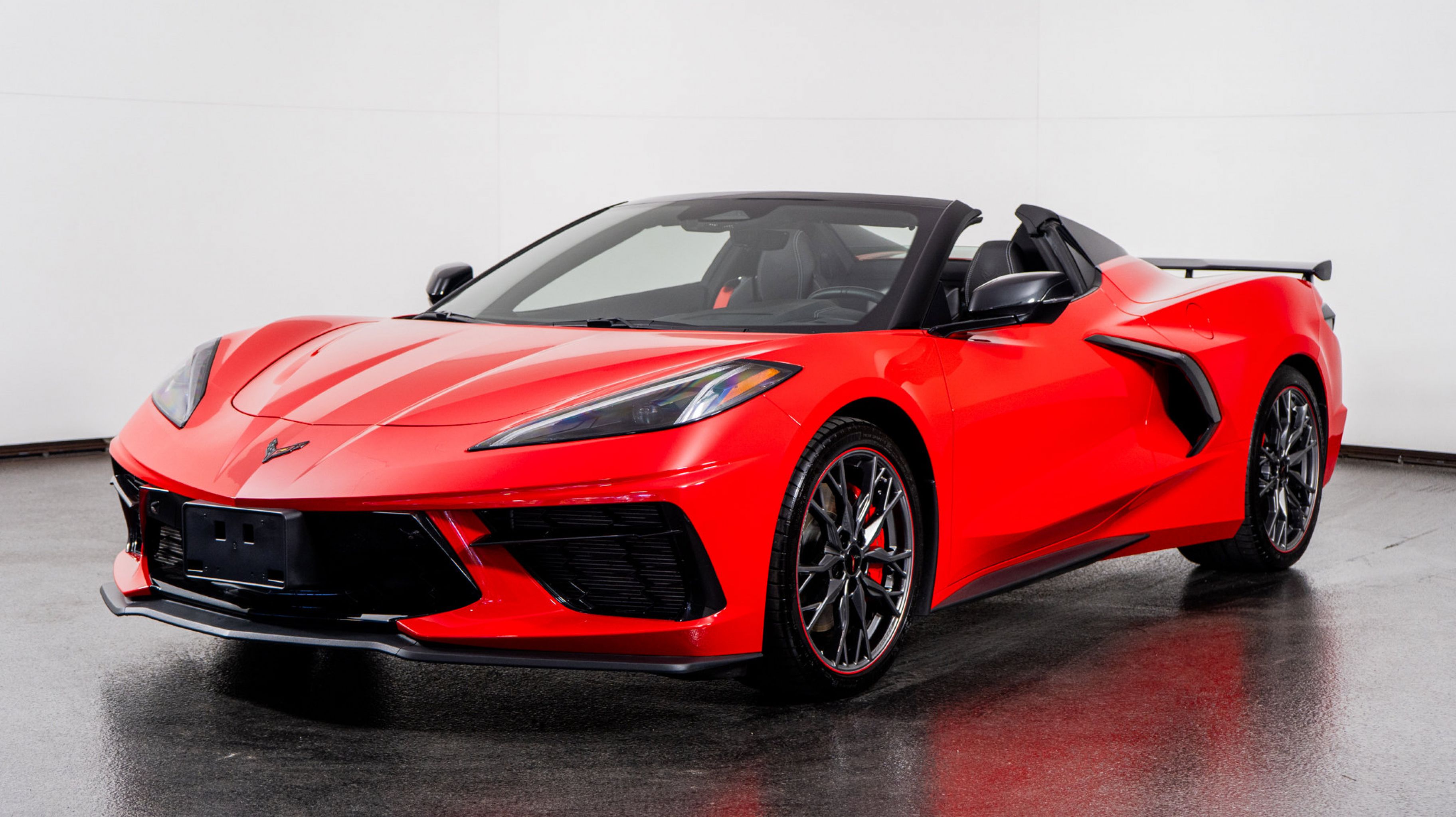 Finished in Torch Red, this convertible radiates athleticism and presence. The Jet Black Leather interior offers a driver-focused cockpit with advanced technology and handcrafted materials. The Z51 Performance Package enhances agility and cooling performance, while the 2LT Package adds luxury features including premium audio, navigation, and a heads-up display. With carbon flash accents, bright red calipers, and the convertible hardtop, this Corvette represents the perfect blend of performance, technology, and style.
