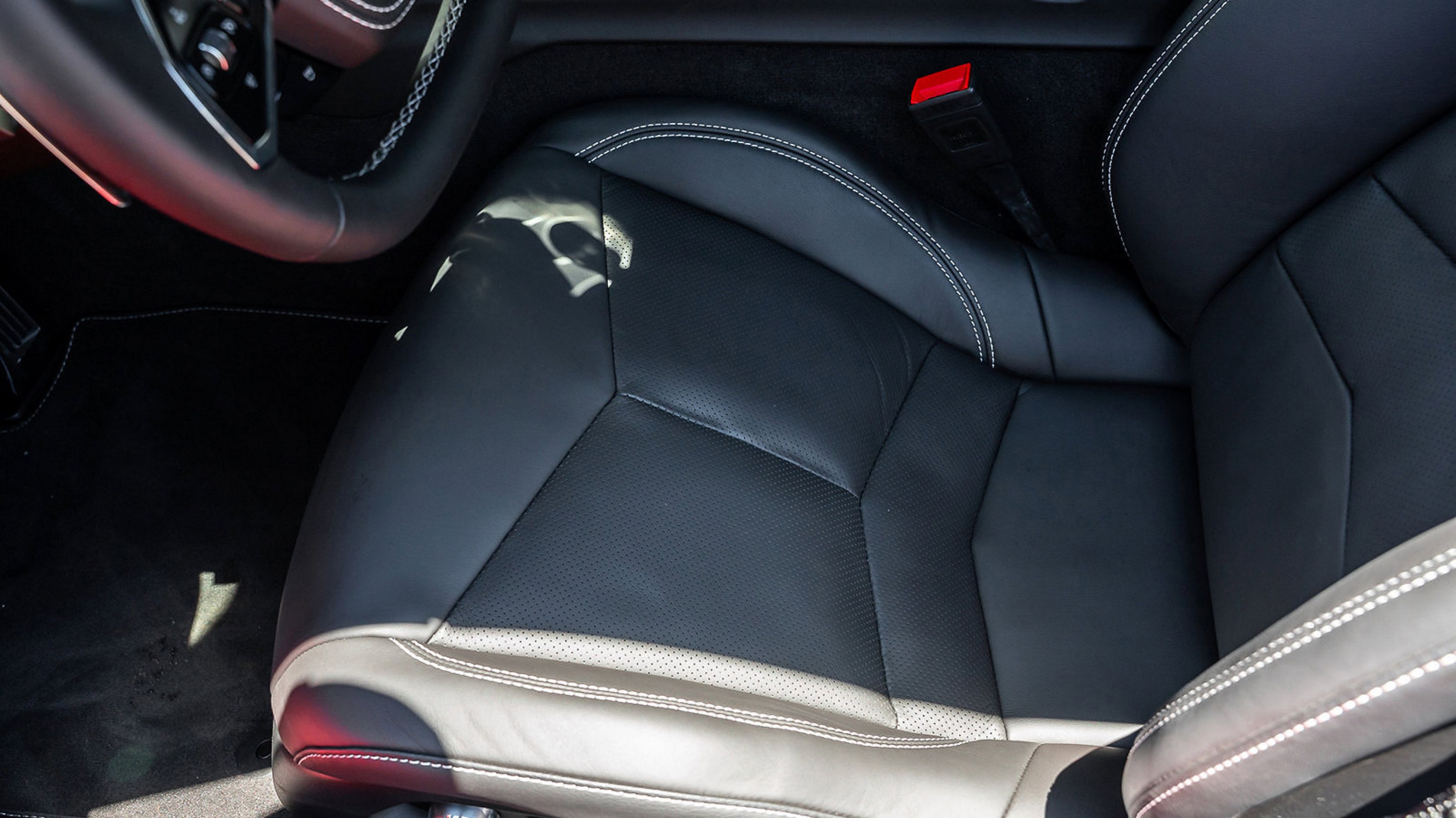 - JET BLACK MULAN LEATHER SEATING SURFACES WITH PERFORATED INSERTS