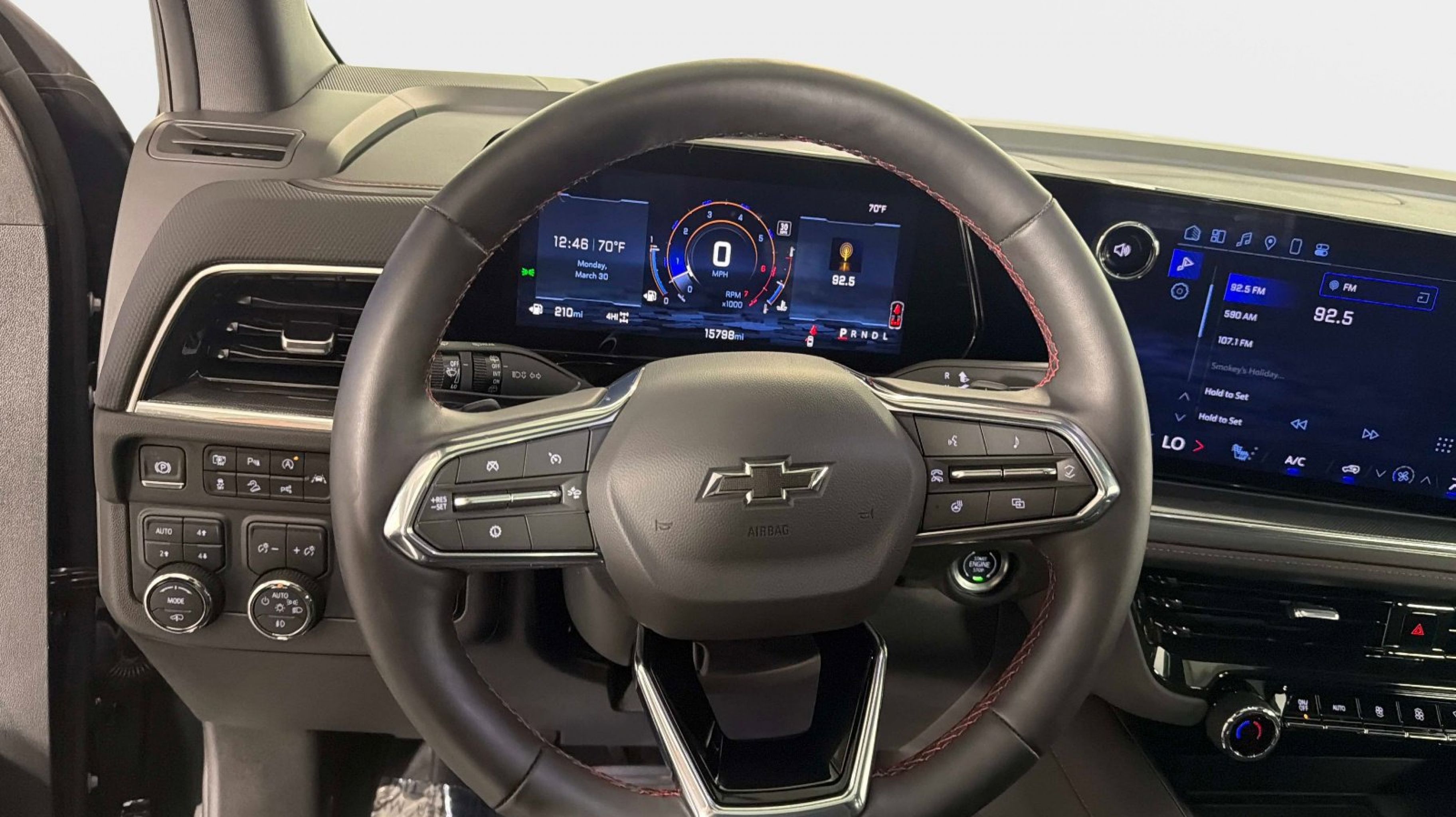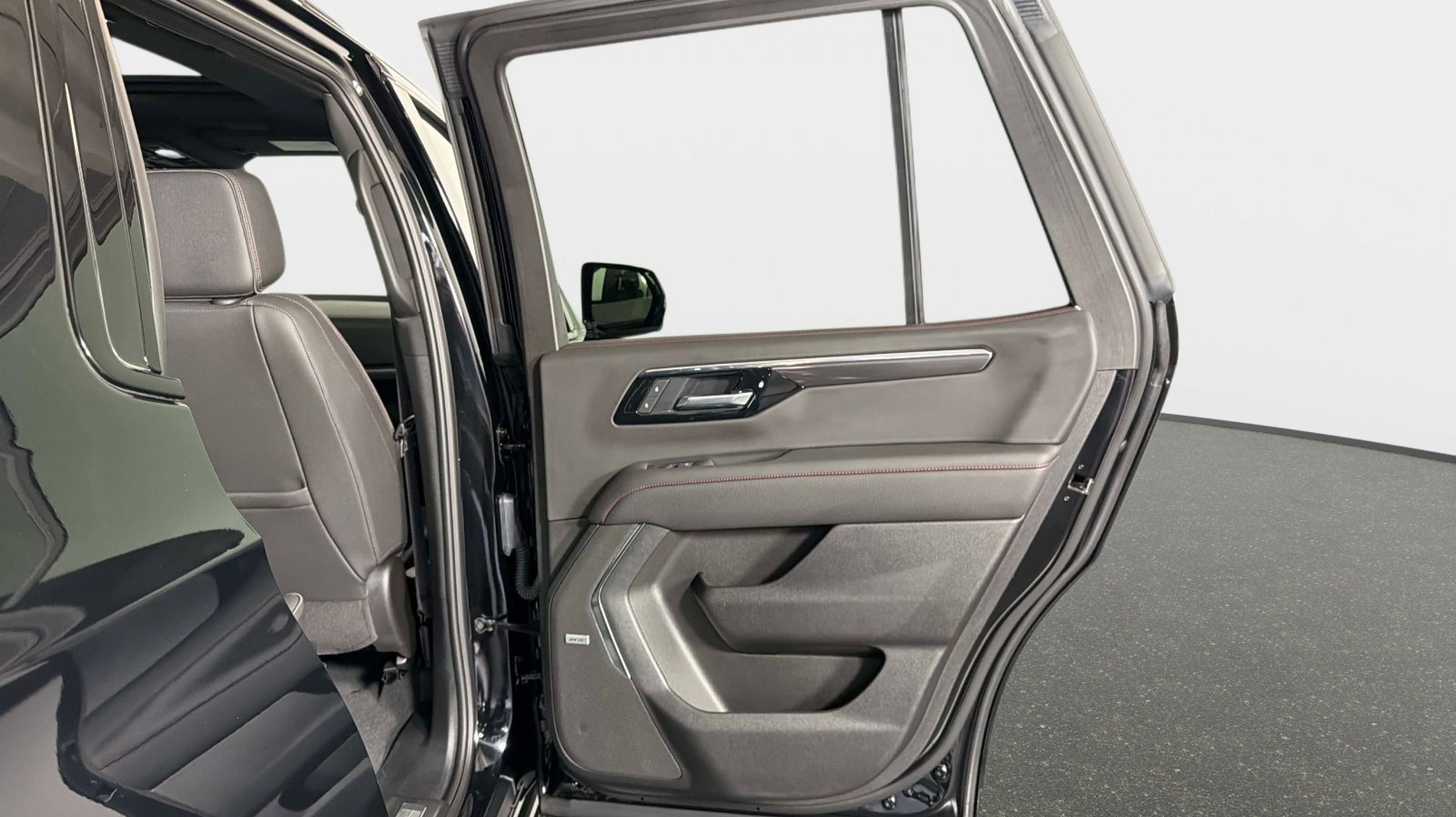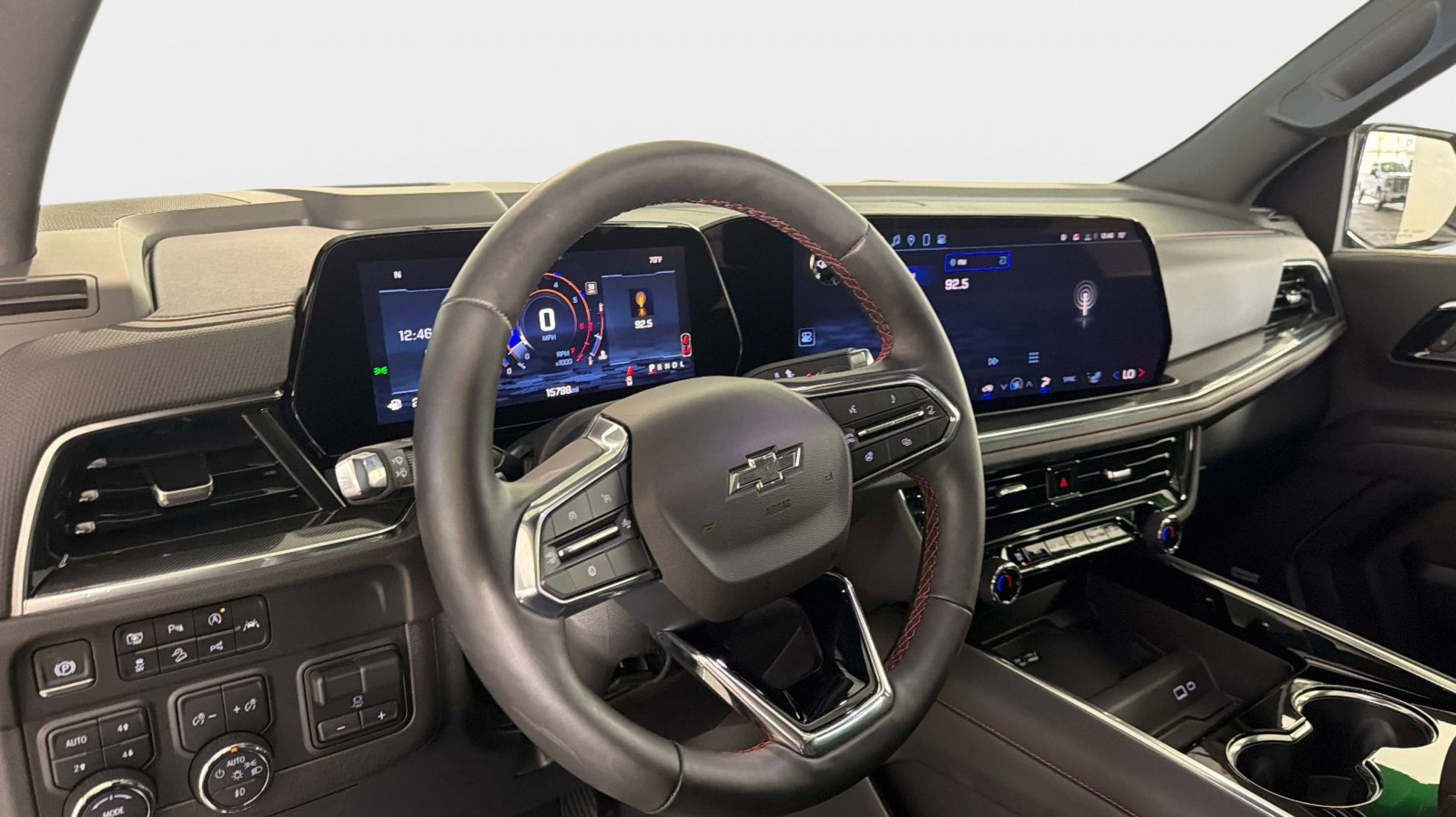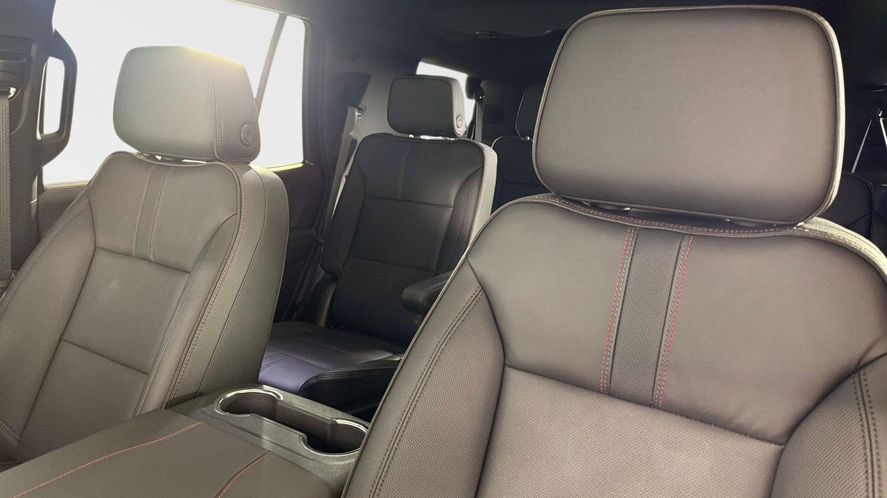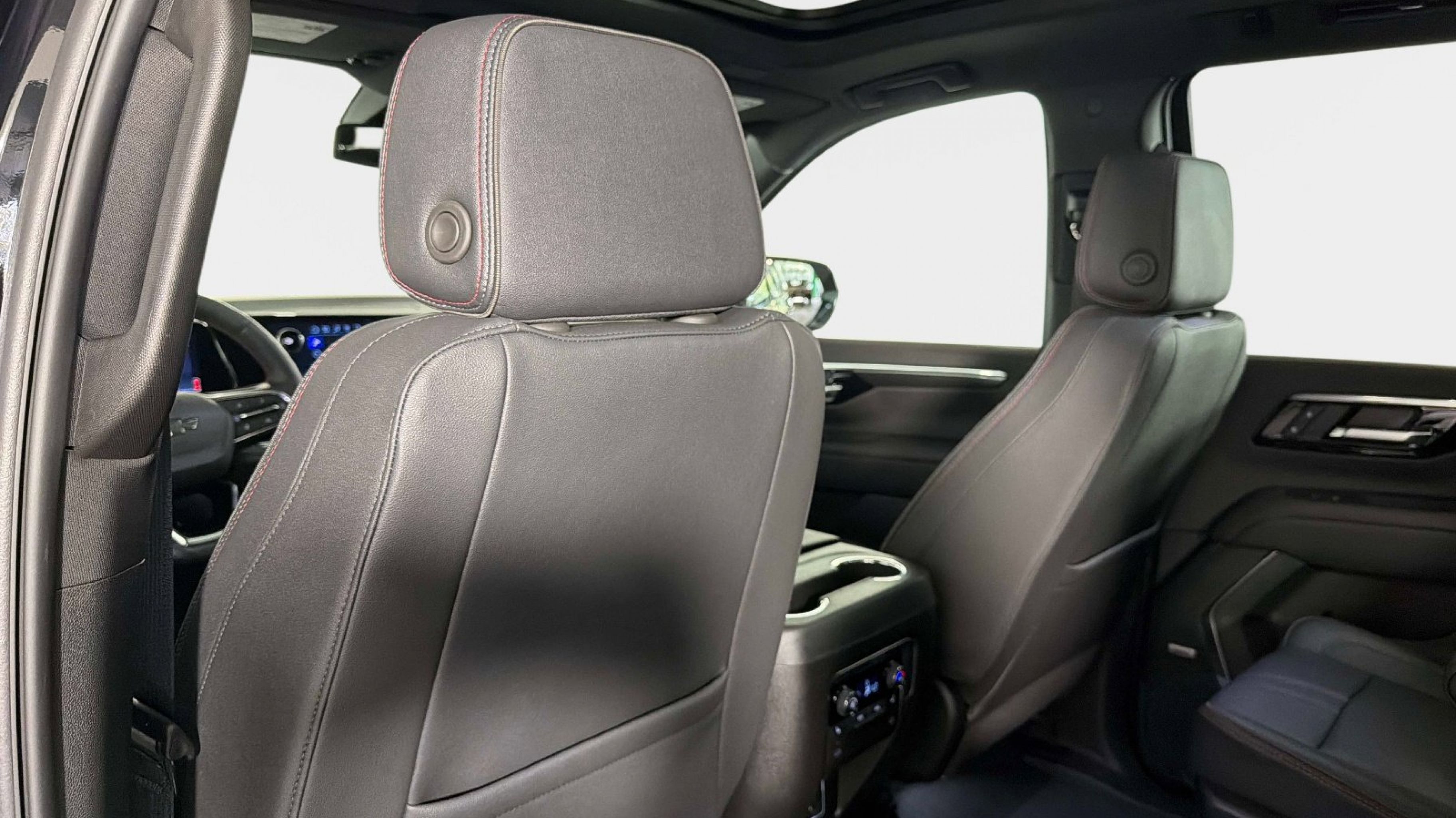Clean CARFAX. 4WD, Jet Black/Victory Red w/Perforated Leather Seat Trim, 2-Speed Active Electronic AutoTrac Transfer Case, 2nd Row Power Release 60/40 Split-Folding Bench Seat, 3rd Row 60/40 Power-Folding Split-Bench Seat, Advanced Trailering Package, Air Ride Adaptive Suspension, Blind Zone Steering Assist with Trailering, Bose 10-Speaker Centerpoint Surround Audio System Feature, Comfort Package, Floor Console, Heated 2nd Row Outboard Seats, Heated Steering Wheel, Hill Descent Control, Hitch View with Pan/Zoom Image Adjustment, Integrated Trailer Brake Controller, LED Headlamps with LED Daytime Running Lamps, LED Tail Lamps, Magnetic Ride Control Suspension, Max Trailering Package, Memory Settings, Outside Heated Power-Adjustable Mirrors, RST Capability Package, Smart Trailer Integration Indicator, 1st and 2nd Row Color-Keyed Carpeted Floor Mats, 2-Way Power Driver Lumbar Seat Adjuster, 2-Way Power Front Passenger Lumbar Seat Adjuster, 3-Spoke Wrapped Steering Wheel, 3.23 Rear Axle Ratio, 3rd Row Manual 60/40 Split-Folding Bench Seats, 3rd row seats: split-bench, 4-Wheel Disc Brakes, 6 Speakers, 6-Speaker Audio System Feature, 8-Way Power Driver Seat Adjuster, 8-Way Power Front Passenger Seat Adjuster, ABS brakes, Air Conditioning, Alloy wheels, AM/FM radio: SiriusXM with 360L, Apple CarPlay/Android Auto, Auto High-beam Headlights, Auto-Dimming Inside Rear-View Mirror, Auto-dimming Rear-View mirror, Automatic temperature control, Brake assist, Bright Front and Rear Door Sill Plates, Bumpers: body-color, Color-Keyed Carpeting Floor Covering, Compass, Delay-off headlights, Driver door bin, Driver vanity mirror, Dual Exhaust System, Dual front impact airbags, Dual front side impact airbags, Electronic Stability Control, Emergency communication system: OnStar and Chevrolet connected services capable, Exterior Parking Camera Rear, Floor Console with Storage Area, Four wheel independent suspension, Front anti-roll bar, Front Bucket Seats, Front Center Armrest, Front dual zone A/C, Front fog lights, Front LED Fog Lamps, Front Pedestrian and Bicyclist Braking, Front reading lights, Frontal Driver and Outboard Passenger Airbags, Fully automatic headlights, Garage door transmitter, Heated door mirrors, Heated Driver and Front Passenger Seats, Heated front seats, Illuminated entry, Low tire pressure warning, Memory seat, Memory Settings For Driver, Navigation system: Google built-in compatibility (select service plan required, terms and limitations apply), Occupant sensing airbag, Outside temperature display, Overhead airbag, Overhead console, Panic alarm, Passenger door bin, Passenger vanity mirror, Perforated Leather Seat Trim, Power door mirrors, Power driver seat, Power Liftgate, Power passenger seat, Power steering, Power windows, Premium audio system: Chevrolet Infotainment 3 Premium, Premium Smooth Ride Suspension, Radio data system, Radio: 17.7 Diagonal Advanced Color LCD Display, Rain sensing wipers, Rear air conditioning, Rear anti-roll bar, Rear Power Liftgate, Rear reading lights, Rear seat center armrest, Rear window defroster, Rear window wiper, Remote keyless entry, Remote Start, RST Exterior Features, Security system, Set of 4 Wheel Locks, SiriusXM with 360L Trial Subscription, Speed control, Speed-sensing steering, Split folding rear seat, Spoiler, Steering wheel mounted audio controls, Tachometer, Telescoping steering wheel, Tilt steering wheel, Traction control, Trip computer, Universal Home Remote, USB Ports,