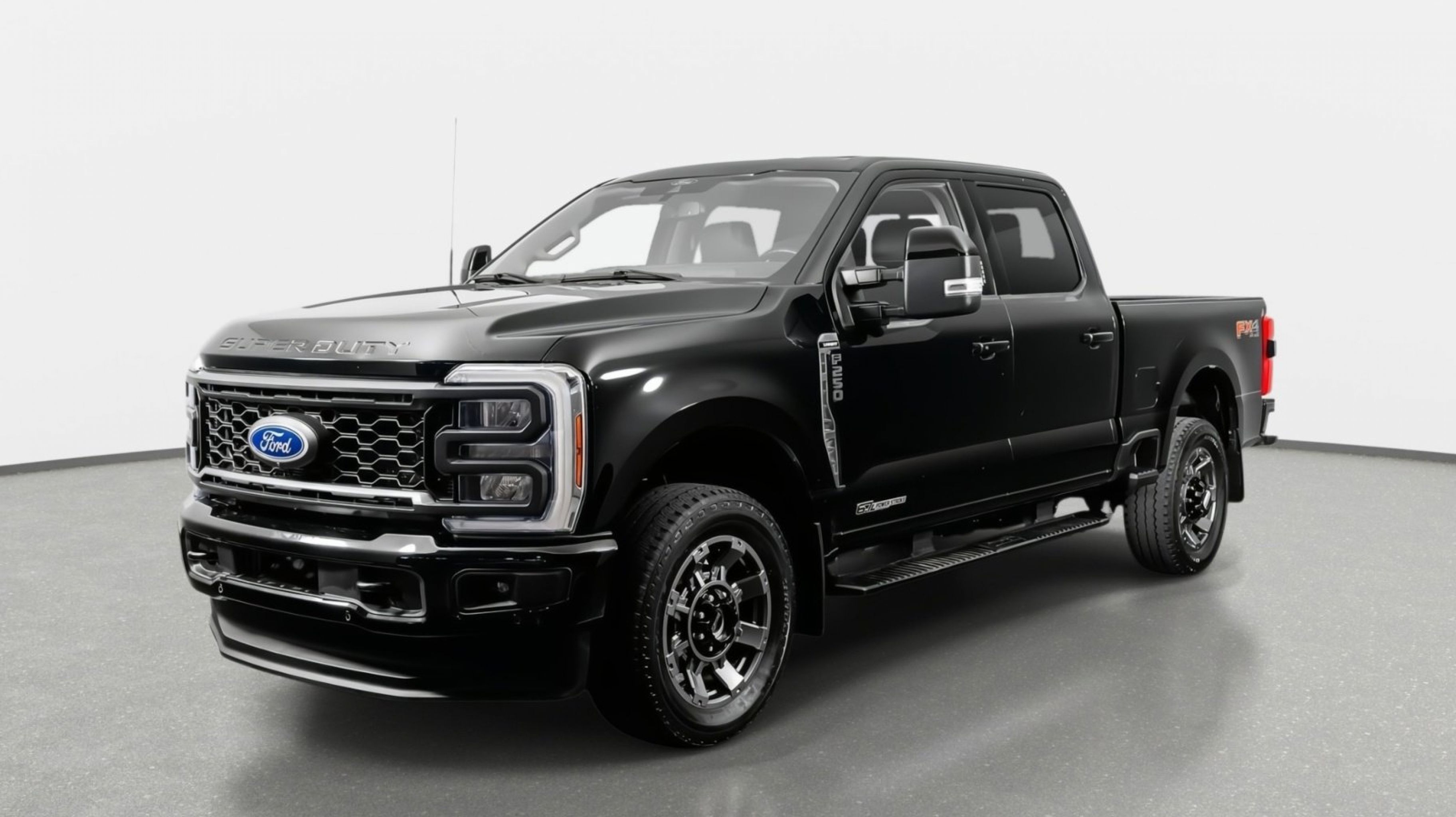 4WD, 4-Way Adjustable Headrests, ABS brakes, Alloy wheels, Black Tow Hooks, Body-Color Front & Rear Bumpers, Chrome Exhaust Tip, Compass, Dark Painted Grille, Electronic Stability Control, F-250 >10K GVWR Package, Front dual zone A/C, Front Sensing System, FX4 Off-Road Package, Head-Up Display, Heated door mirrors, Heated front seats, Heated rear seats, Hill Descent Control, Illuminated entry, Intelligent Adaptive Cruise Control w/Stop-and-Go, Lariat Ultimate Package, Low tire pressure warning, Off-Road Specifically Tuned Shock Absorbers, Platform Running Boards, Pro Trailer Backup Assist, Pro Trailer Hitch Assist, Radio: B&O Unleashed Sound System by Bang & Olufsen, Remote keyless entry, SiriusXM Radio w/360L, Sport 4x4 Box Side Decal, Sport Appearance Package, SYNC 4 w/Enhanced Voice Recognition, Tailgate Step & Handle, Traction control, Unique FX4 Off-Road Box Decal, Upfitter Switches (6), Wheels: 20 Dark Carbonized Gray Painted Aluminum, Wireless Charging Pad.