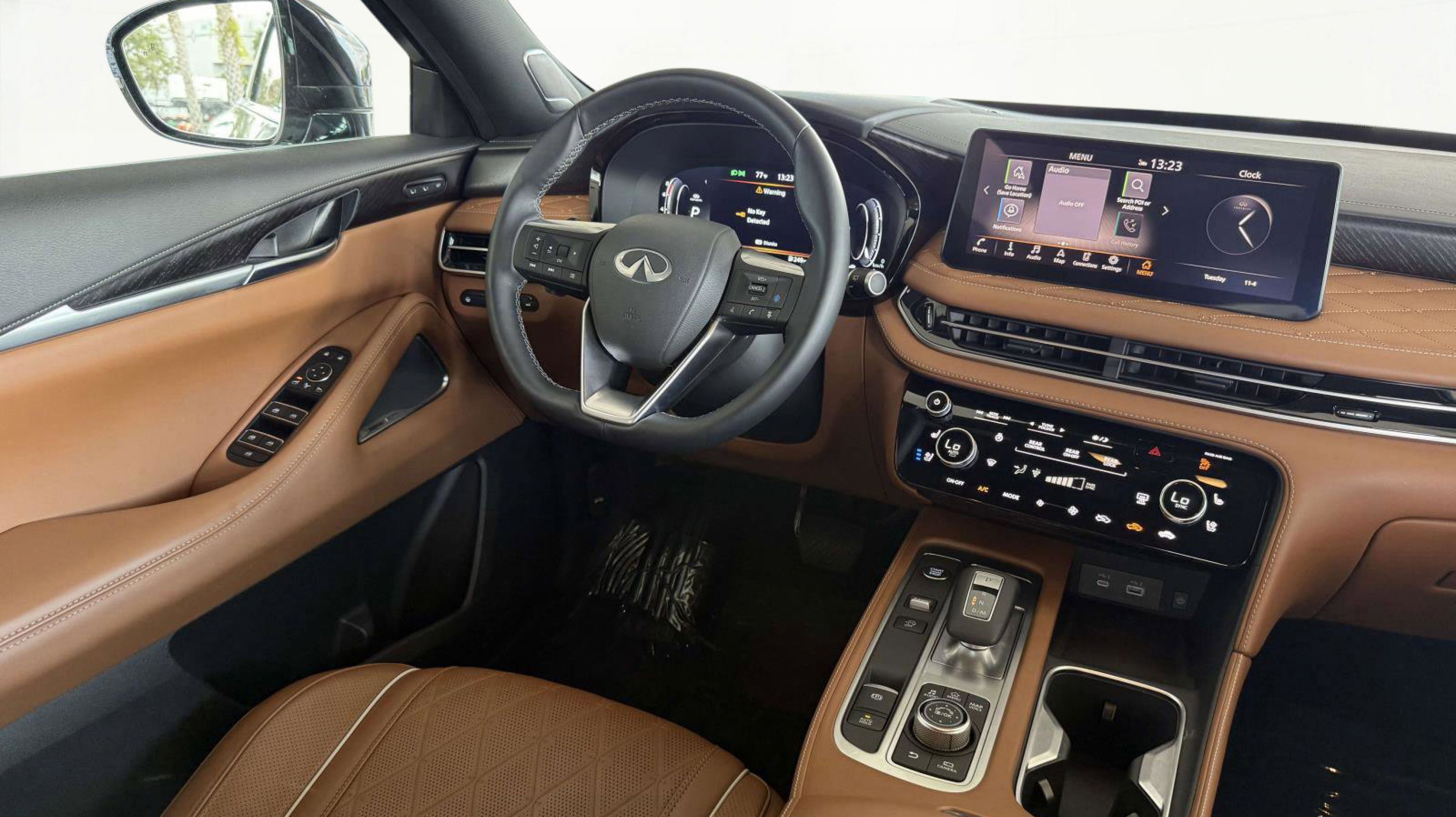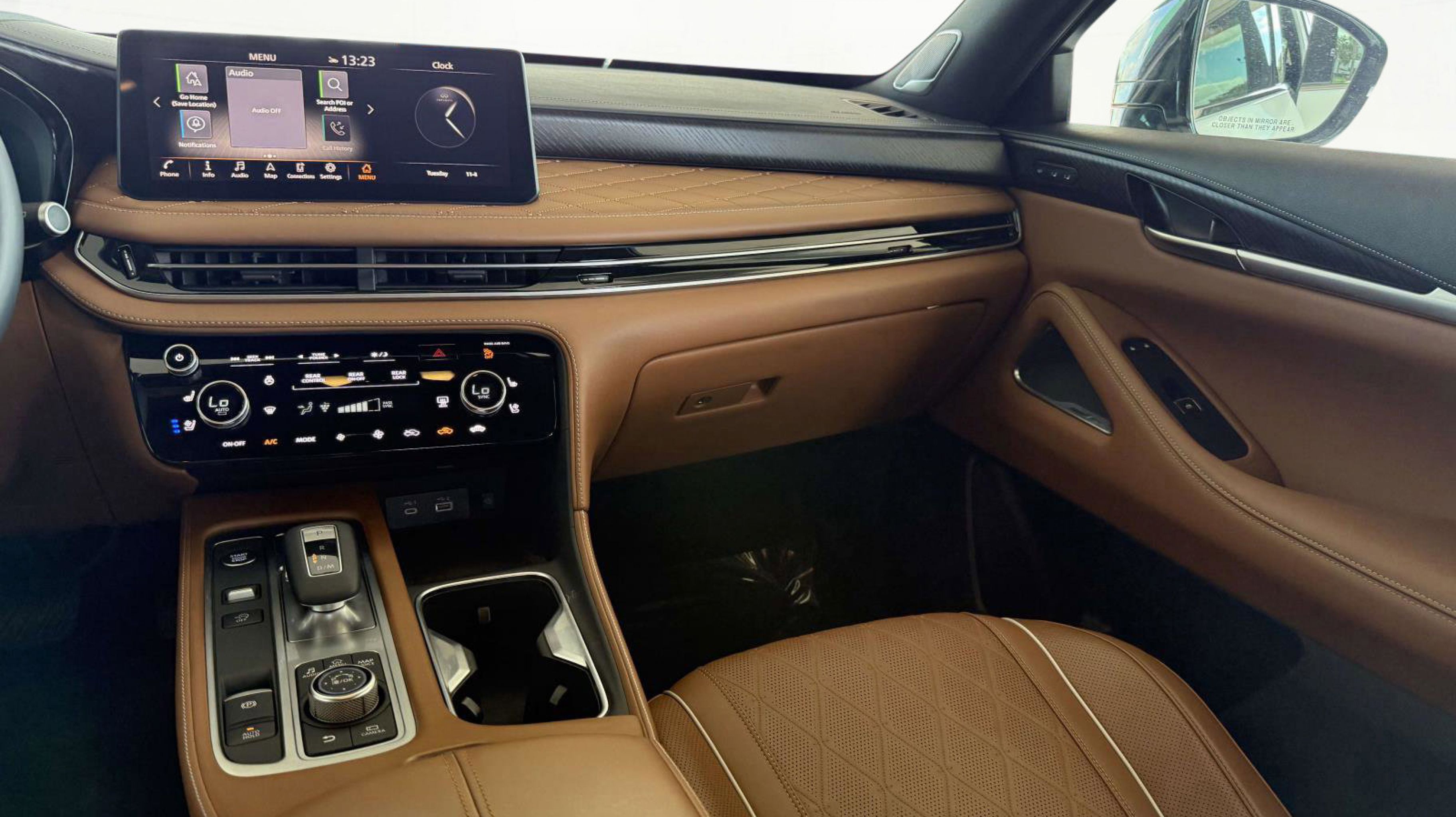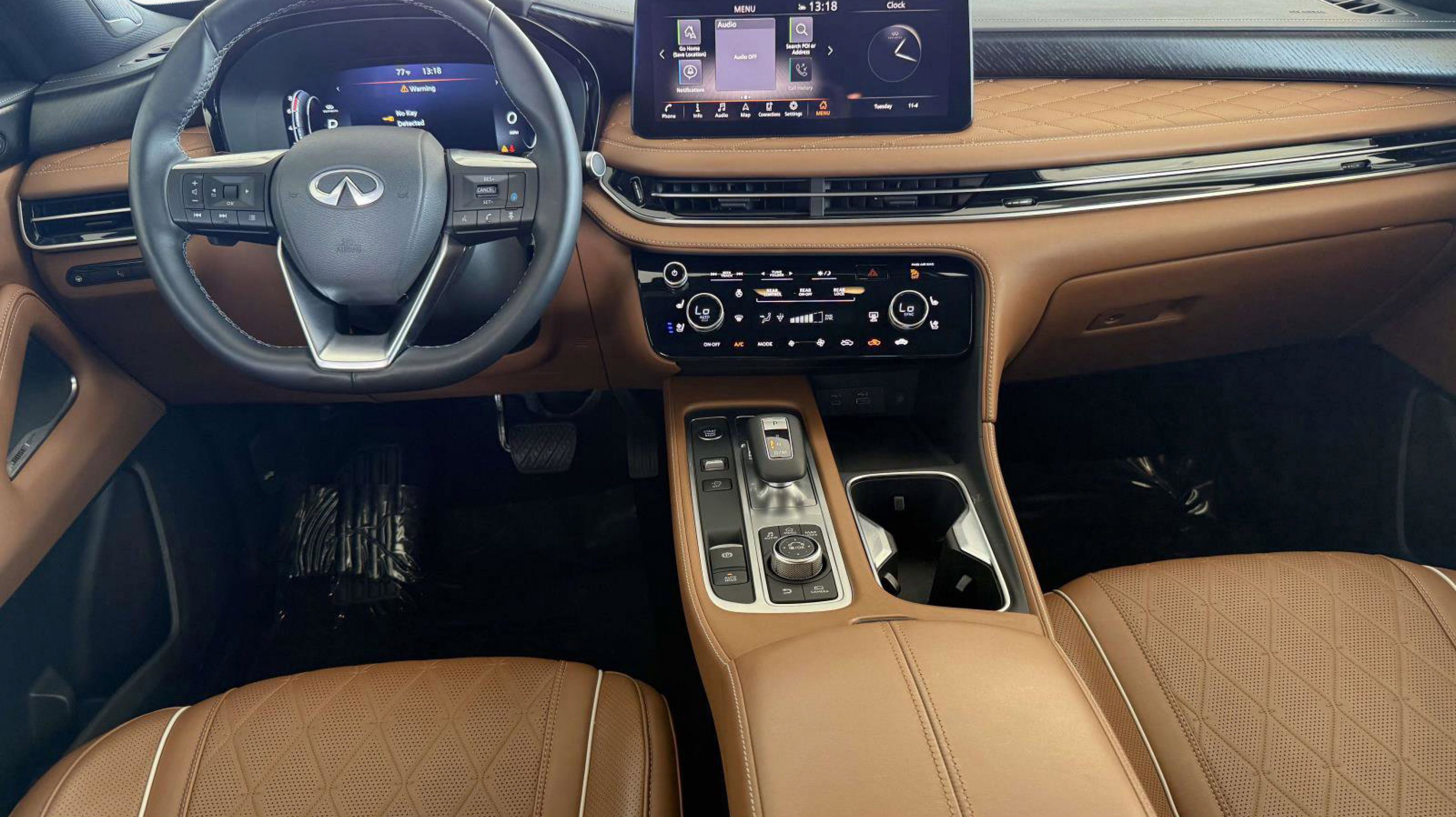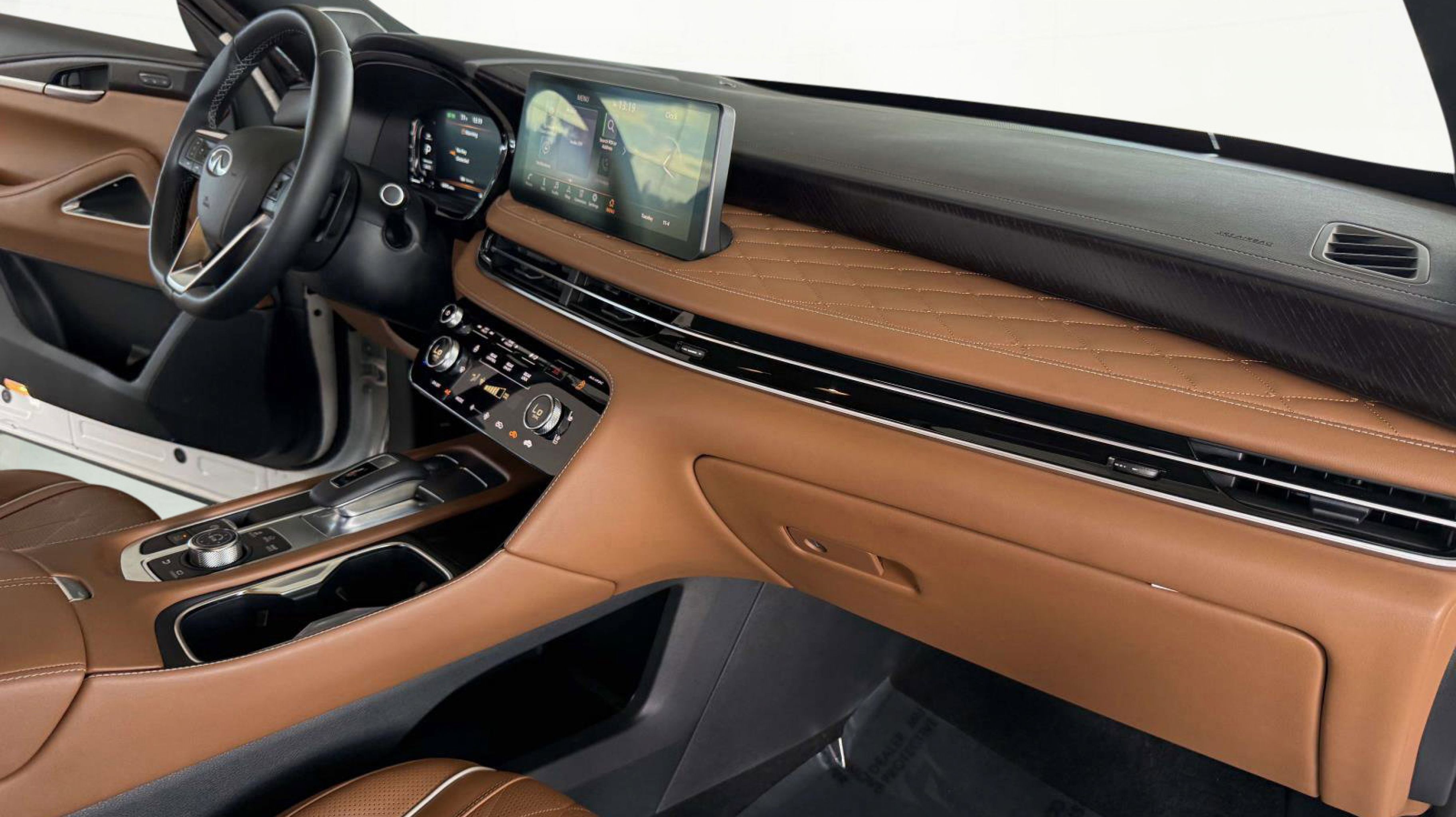 17 Speakers, 3rd row seats: bench, 4-Wheel Disc Brakes, ABS brakes, Air Conditioning, Alloy wheels, AM/FM radio: SiriusXM, Anti-whiplash front head restraints, Apple CarPlay/Android Auto, Auto High-beam Headlights, Auto tilt-away steering wheel, Auto-dimming door mirrors, Auto-dimming Rear-View mirror, Automatic temperature control, Bose Performance Series 17-Speaker Sound System, Brake assist, Bumpers: body-color, Climate Controlled Massaging Front Bucket Seats, Delay-off headlights, Driver door bin, Driver vanity mirror, Dual front impact airbags, Dual front side impact airbags, Electronic Stability Control, Emergency communication system: INFINITI InTouch, Exterior Parking Camera Rear, Four wheel independent suspension, Front anti-roll bar, Front Bucket Seats, Front Center Armrest, Front dual zone A/C, Front reading lights, Fully automatic headlights, Garage door transmitter: HomeLink, Heads-Up Display, Heated door mirrors, Heated front seats, Heated rear seats, Heated steering wheel, Illuminated entry, Knee airbag, Leather Shift Knob, Leather steering wheel, Low tire pressure warning, Memory seat, Navigation system: INFINITI InTouch Navigation, Occupant sensing airbag, Outside temperature display, Overhead airbag, Overhead console, Panic alarm, Passenger door bin, Passenger vanity mirror, Power door mirrors, Power driver seat, Power Liftgate, Power moonroof, Power passenger seat, Power steering, Power windows, Radio data system, Radio: Bose Performance Series, Rain sensing wipers, Rear air conditioning, Rear anti-roll bar, Rear reading lights, Rear side impact airbag, Rear window defroster, Rear window wiper, Reclining 3rd row seat, Remote keyless entry, Security system, Semi Aniline Leather-Appointed Seating Surfaces, Speed control, Speed-sensing steering, Speed-Sensitive Wipers, Split folding rear seat, Spoiler, Steering wheel memory, Steering wheel mounted audio controls, Tachometer, Telescoping steering wheel, Tilt steering wheel, Traction control, Trip computer, Turn signal indicator mirrors, Variably intermittent wipers, Ventilated front seats, Wheels: 20 x 8J Luxury Machined Aluminum Alloy. Clean CARFAX. Recent Arrival! 22/27 City/Highway MPG