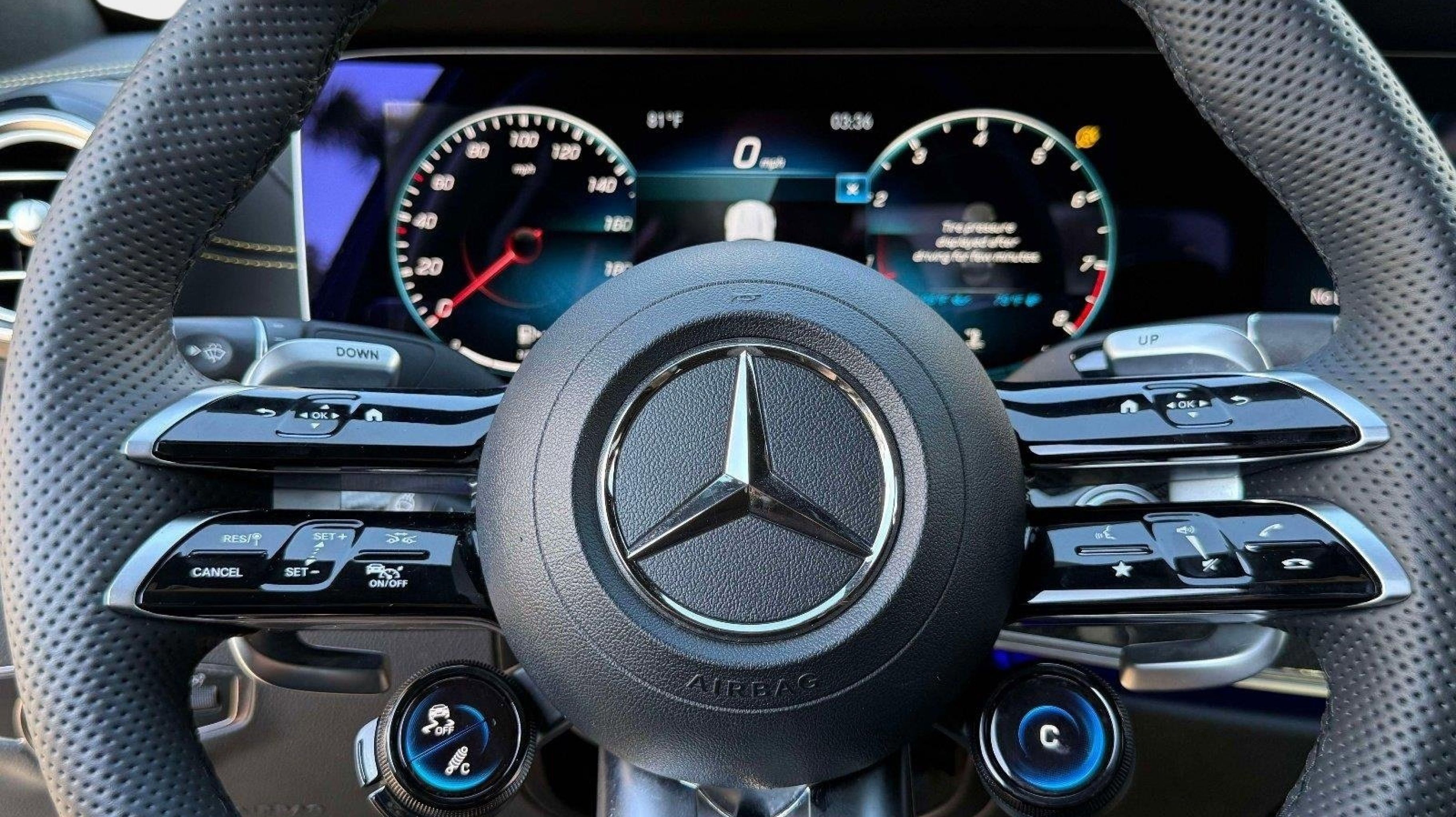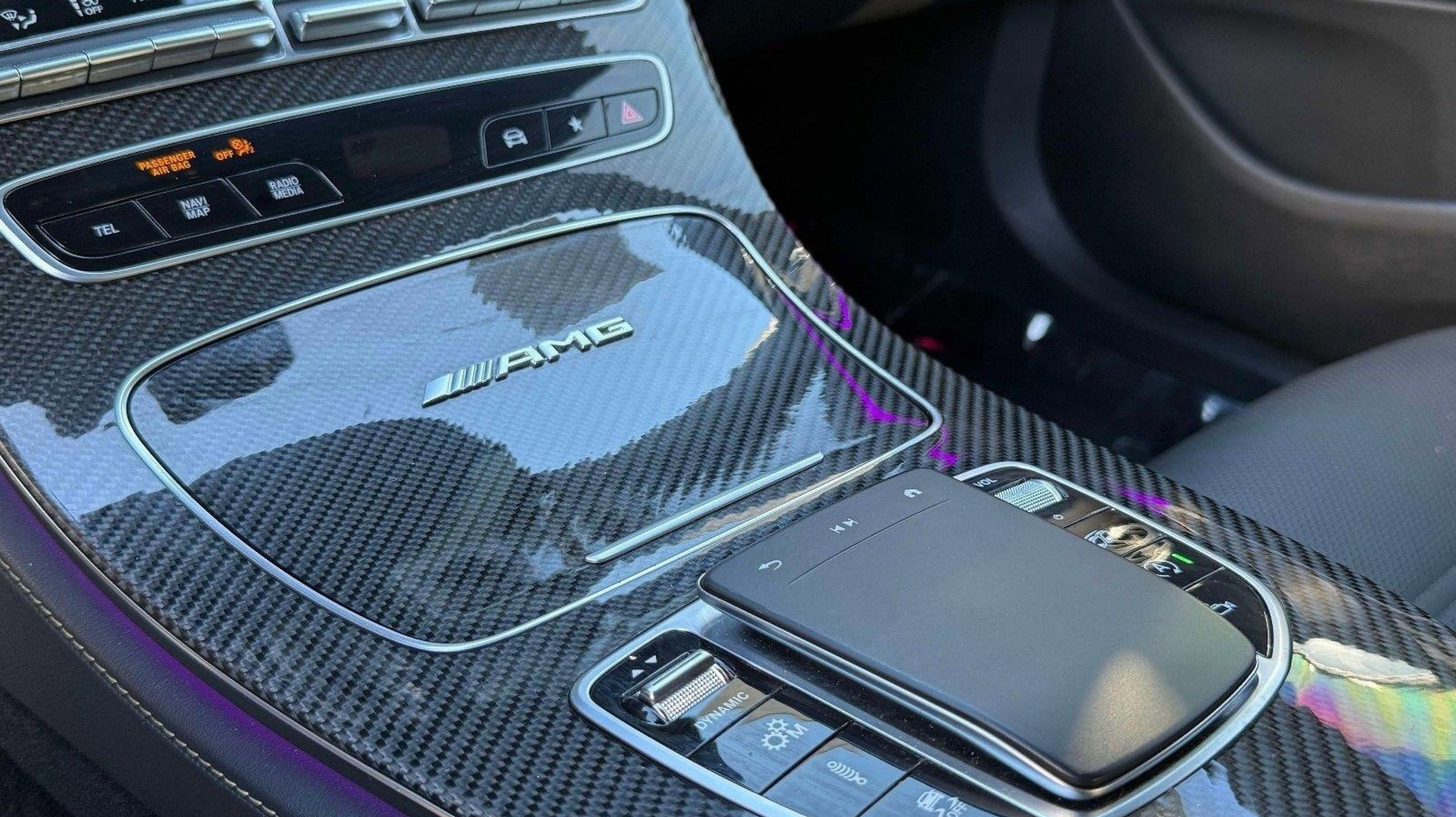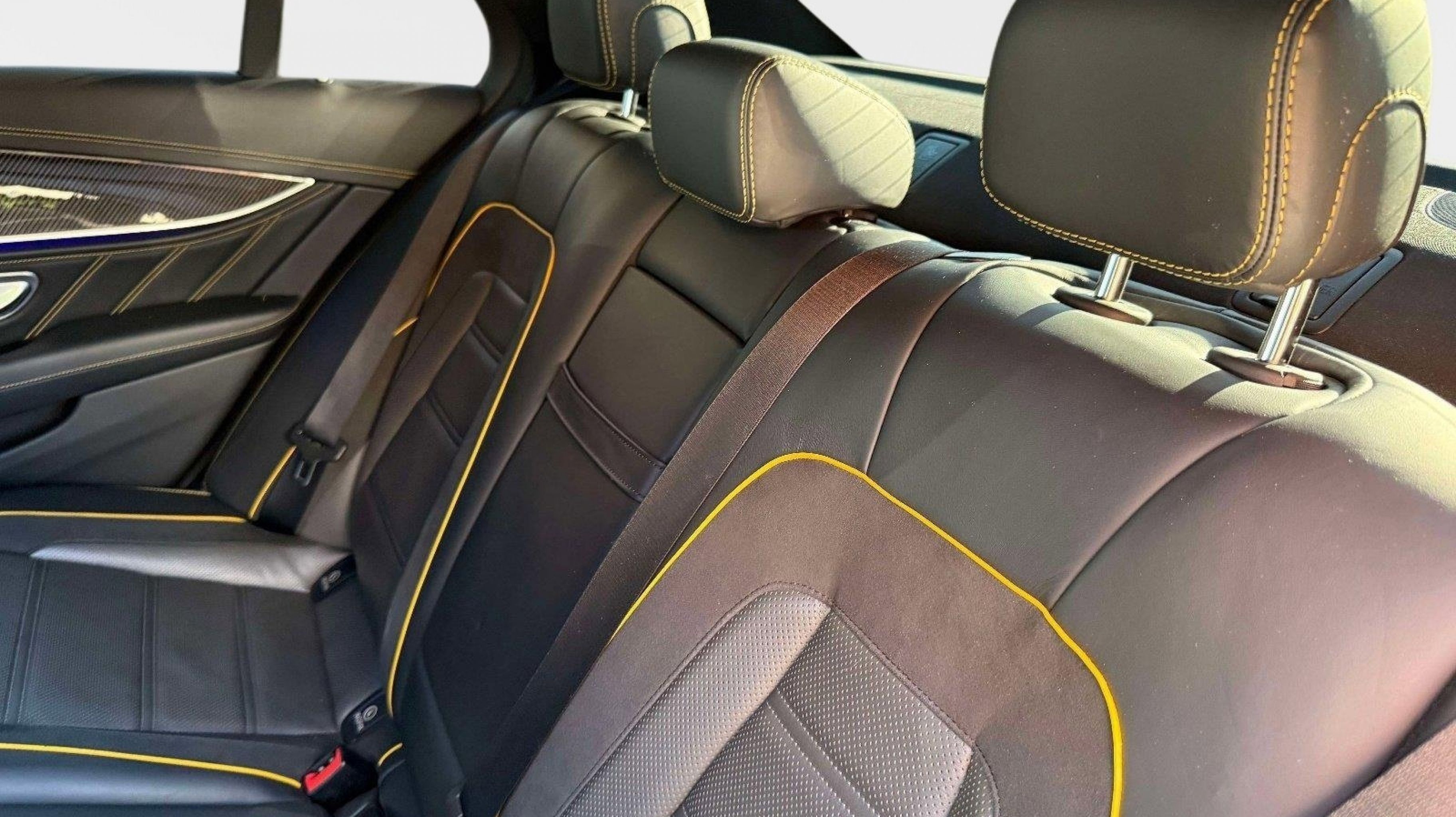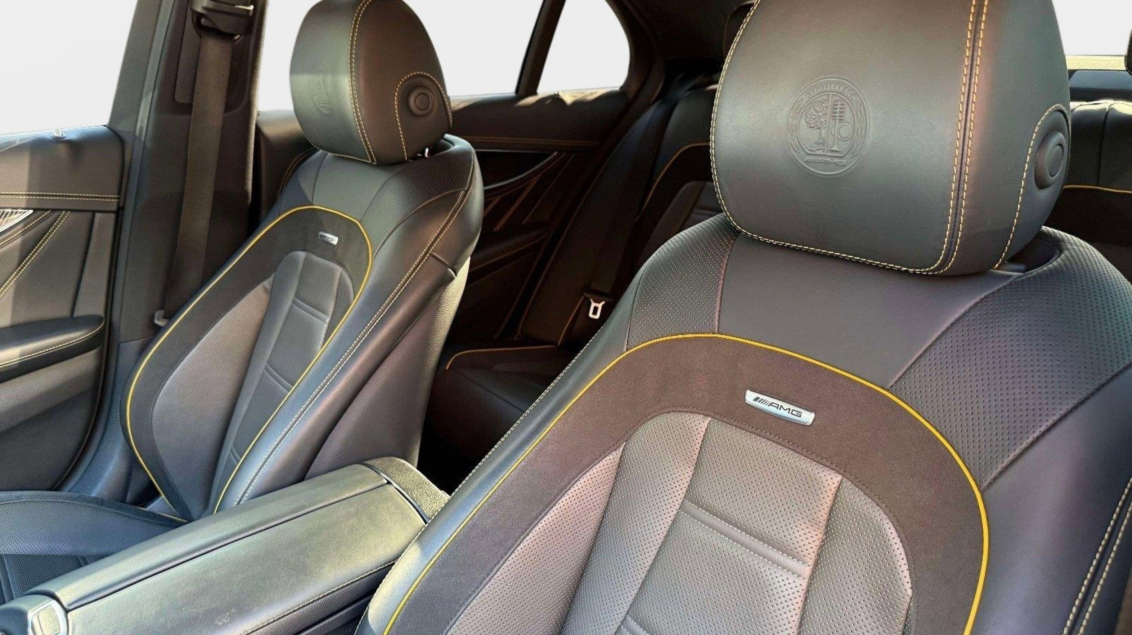 CARFAX One-Owner. Clean CARFAX. 4MATIC®, 13 Speakers, 4-Wheel Disc Brakes, ABS brakes, Adaptive suspension, Air Conditioning, Alloy wheels, AM/FM radio: SiriusXM, AMG® Exclusive Nappa Leather Upholstery, Anti-whiplash front head restraints, Apple CarPlay®/Android Auto®, Auto tilt-away steering wheel, Auto-dimming door mirrors, Auto-dimming Rear-View mirror, Auto-leveling suspension, Automatic temperature control, Black Piano Lacquer Center Console, Brake assist, Bumpers: body-color, Delay-off headlights, Driver door bin, Driver vanity mirror, Dual front impact airbags, Dual front side impact airbags, Electronic Stability Control, Emergency communication system: Mercedes me connect, Exterior Parking Camera Rear, Four wheel independent suspension, Front anti-roll bar, Front Bucket Seats, Front Center Armrest, Front dual zone A/C, Front reading lights, Fully automatic headlights, Garage door transmitter: HomeLink, Head restraints memory, Heated & Ventilated Power Front Seats, Heated door mirrors, Heated front seats, Heated steering wheel, Illuminated entry, Knee airbag, Leather Shift Knob, Low tire pressure warning, Memory seat, Navigation System, Occupant sensing airbag, Outside temperature display, Overhead airbag, Overhead console, Panic alarm, Passenger door bin, Passenger vanity mirror, Power adjustable front head restraints, Power adjustable rear head restraints, Power door mirrors, Power driver seat, Power moonroof, Power passenger seat, Power steering, Power windows, Premium audio system: MBUX, Radio data system, Radio: MBUX Infotainment & Navigation System, Rain sensing wipers, Rear anti-roll bar, Rear fog lights, Rear reading lights, Rear seat center armrest, Rear window defroster, Remote keyless entry, Security system, Speed control, Speed-sensing steering, Split folding rear seat, Spoiler, Sport steering wheel, Steering wheel memory, Steering wheel mounted audio controls, Tachometer, Telescoping steering wheel, Tilt steering wheel, Traction control, Trip computer, Turn signal indicator mirrors, Variably intermittent wipers, Ventilated front seats, Weather band radio, Wheels: 20 AMG® Twin 5-Spoke w/Grey Accents, 4MATIC®.