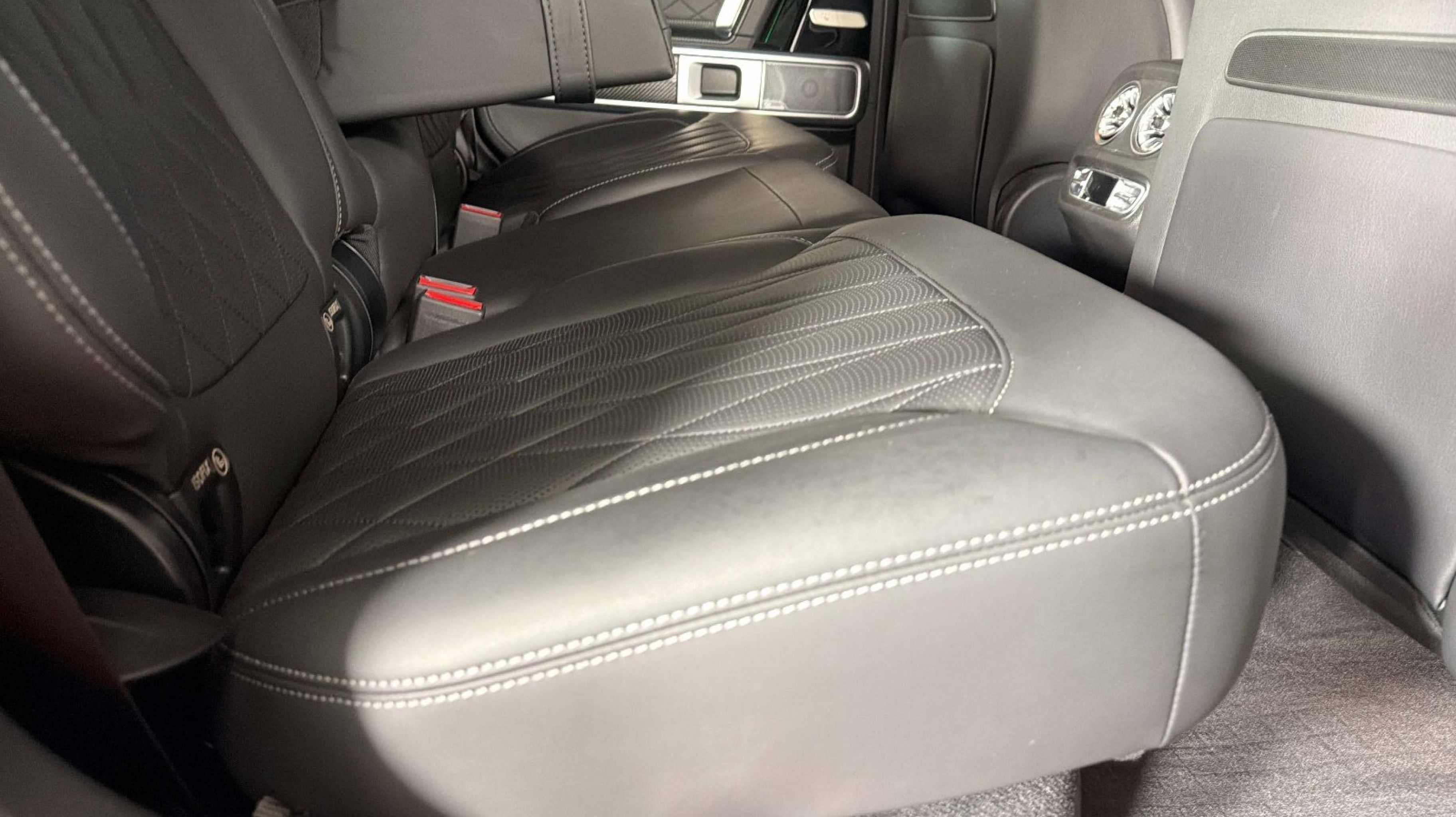 Clean CARFAX. ABS brakes, Adaptive suspension, Alloy wheels, AMG® Night Package, Armrests in Exclusive Nappa Leather, Brush Guard in Black, Compass, Electronic Stability Control, Exterior Mirrors Painted in Obsidian Black, Front Bucket Seats, Front Center Armrest, Front dual zone A/C, Front Grille in Gun Metal Grey, G MANUFAKTUR Front Passenger Grab Handle Badge, G MANUFAKTUR Interior Package Plus, Heated door mirrors, Heated Front Seats, Heated front seats, Heated rear seats, Illuminated entry, Low tire pressure warning, Navigation System, Power moonroof, Power passenger seat, PROFESSIONAL Roof Rack, Remote keyless entry, Speed-sensing steering, Split folding rear seat, Traction control, Underguard in Black, Upper & Lower Dashboard in Nappa Leather, Ventilated front seats.