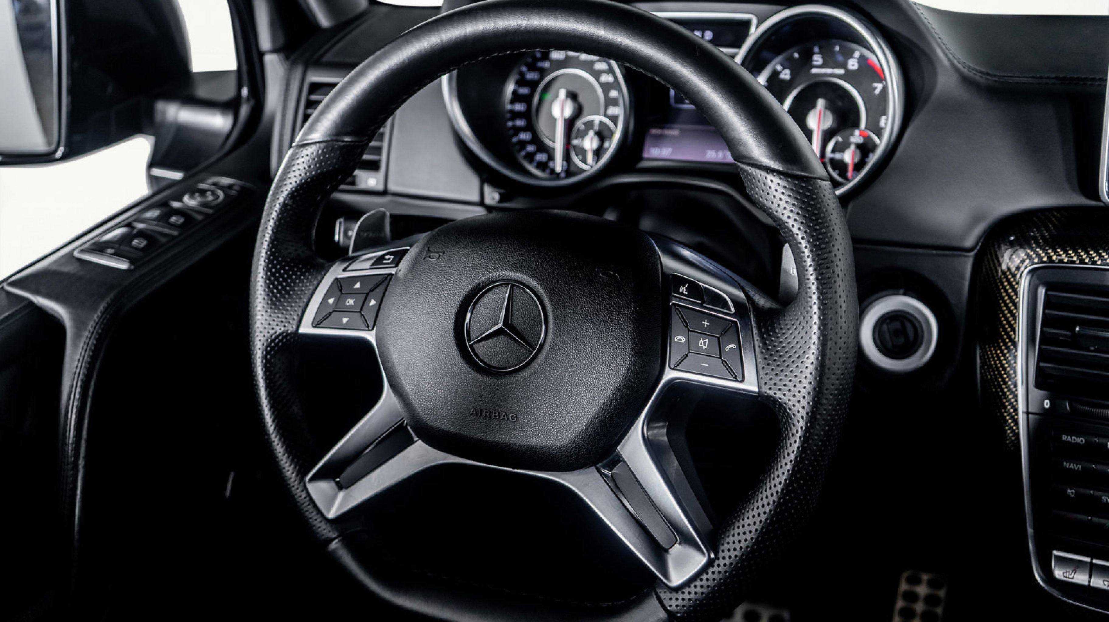 *** Luxurious Interior Designo black leather upholstery, Alcantara headliner, carbon fiber trim, and quilted and perforated seat inserts