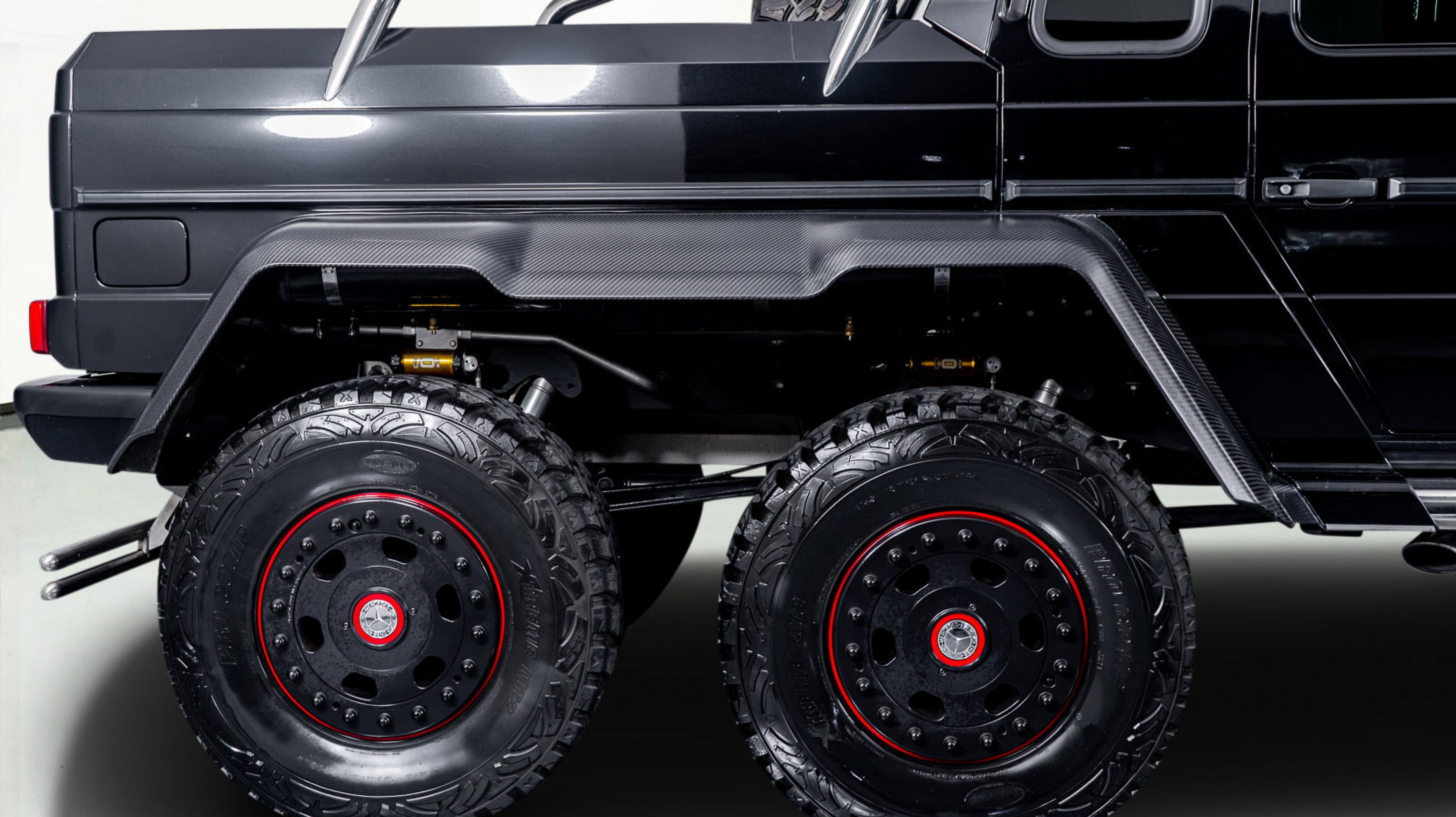 *** High-End Exterior Features Carbon fiber fender flares, dual side-exit exhaust outlets, tubular rear bumpers, and a chrome roll bar