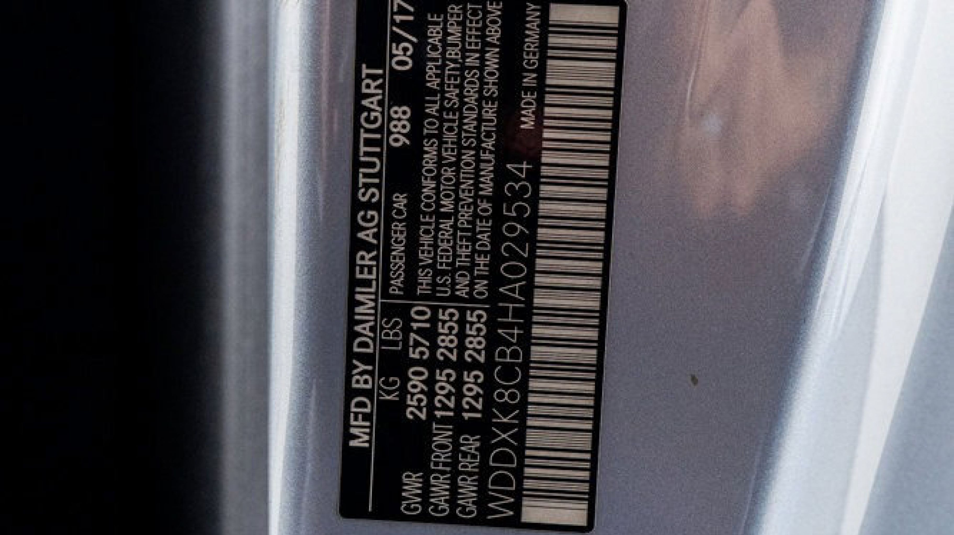 *** VIN: WDDXK8CB4HA029534