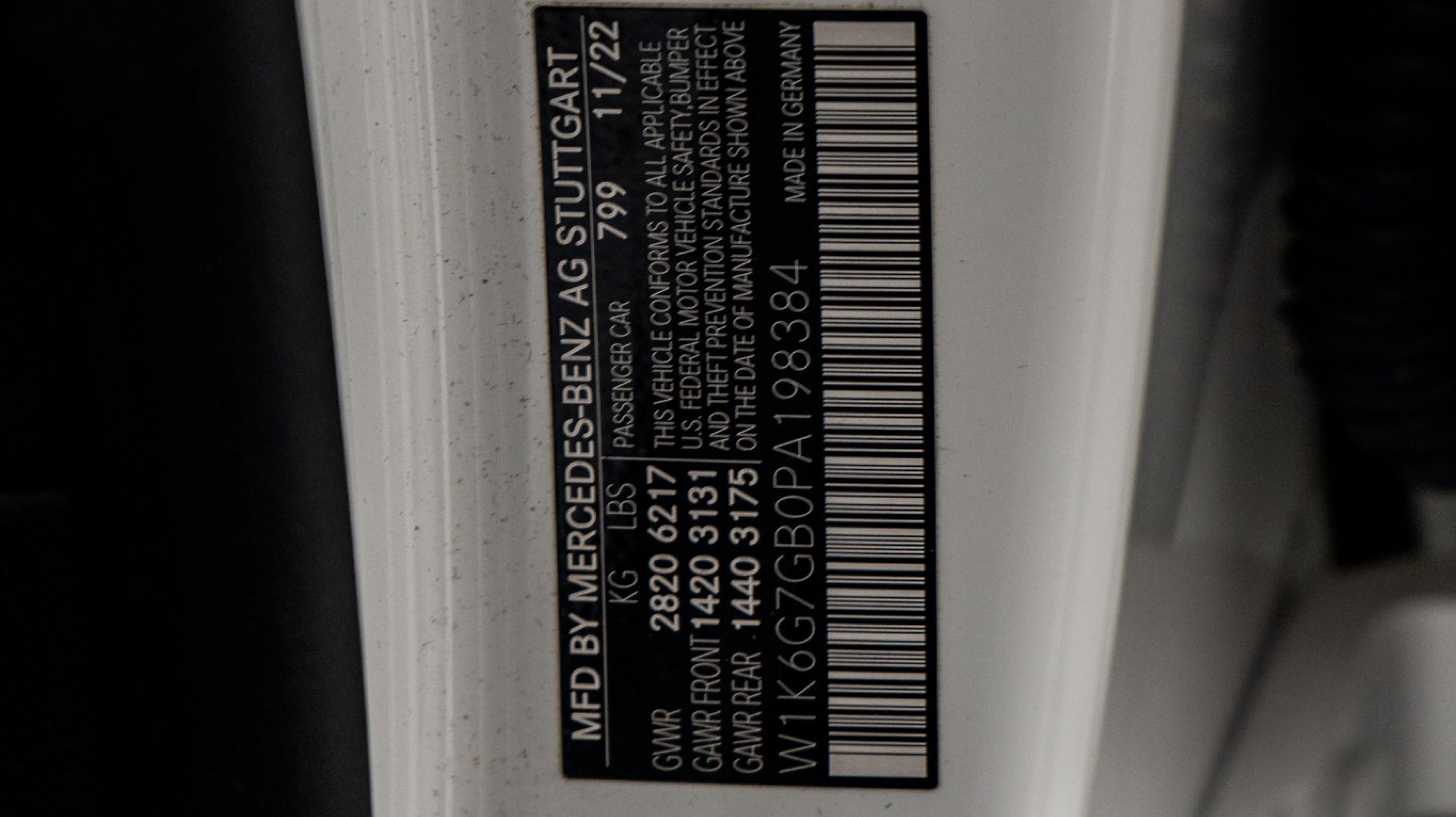 *** VIN:** W1K6G7GB0PA198384