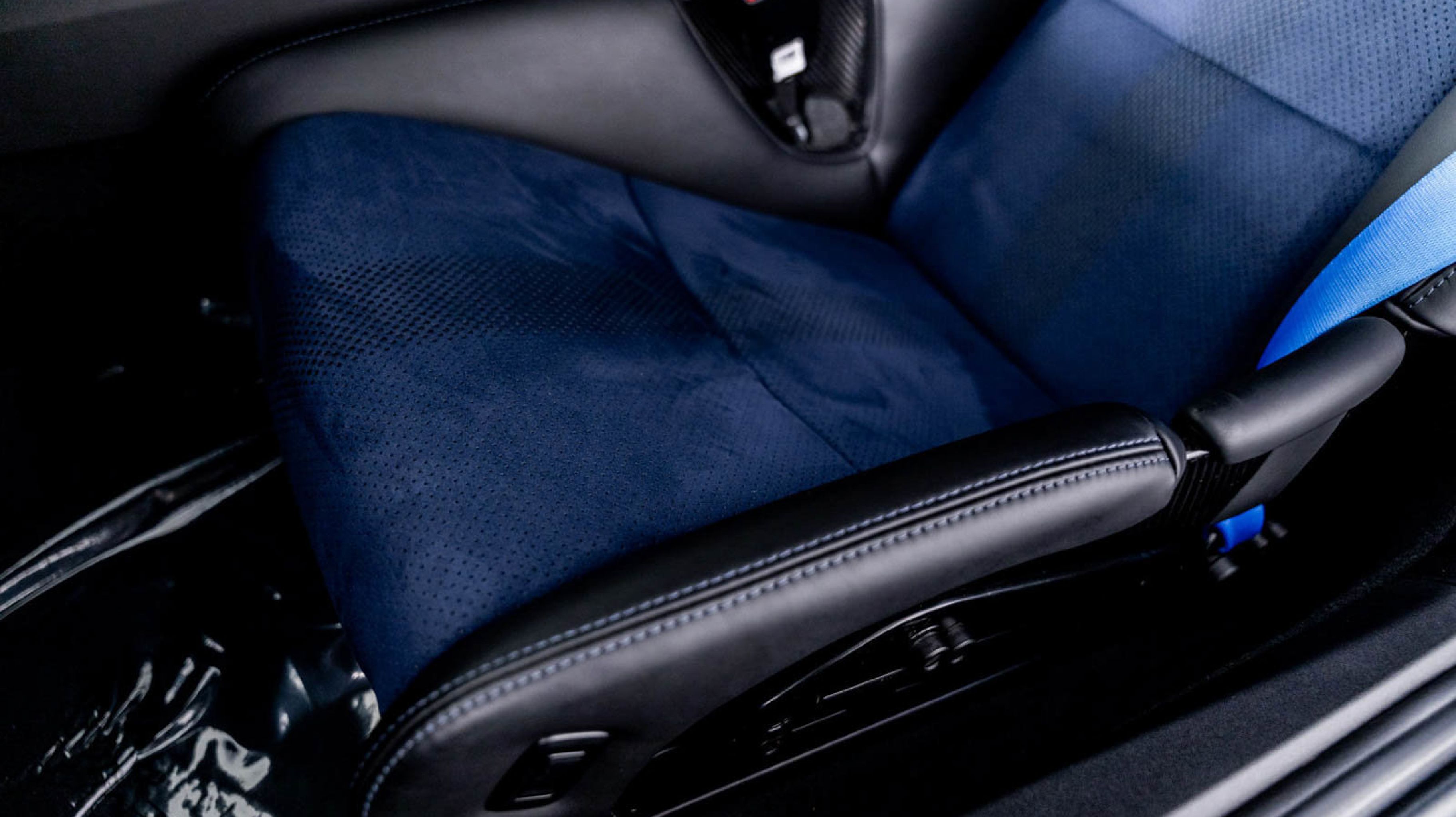 *** Carbon Fiber Bucket Seats with Shark Blue Seat Belts.