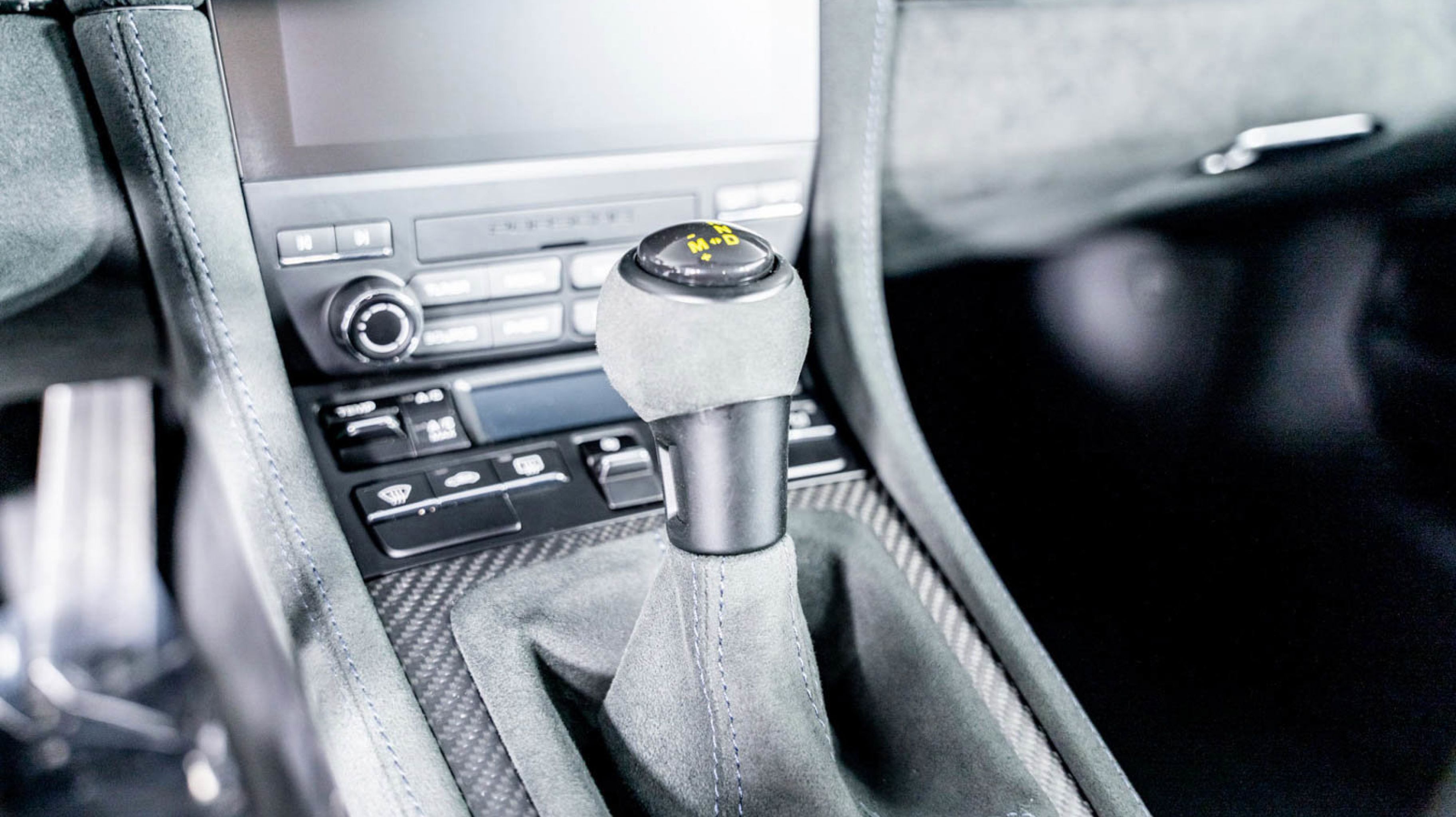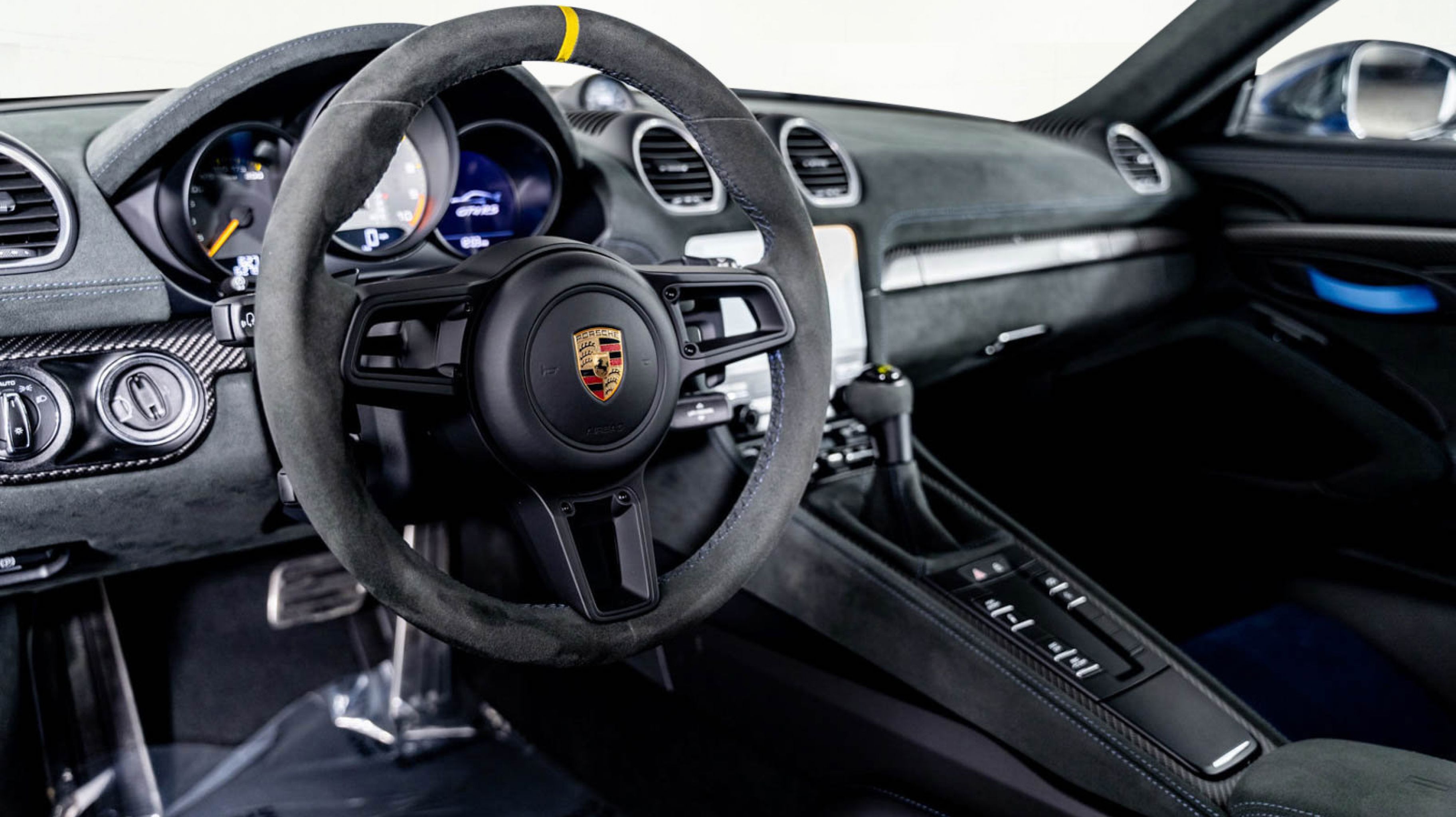 *** Alcantara-Wrapped Steering Wheel with Yellow Center Marker.