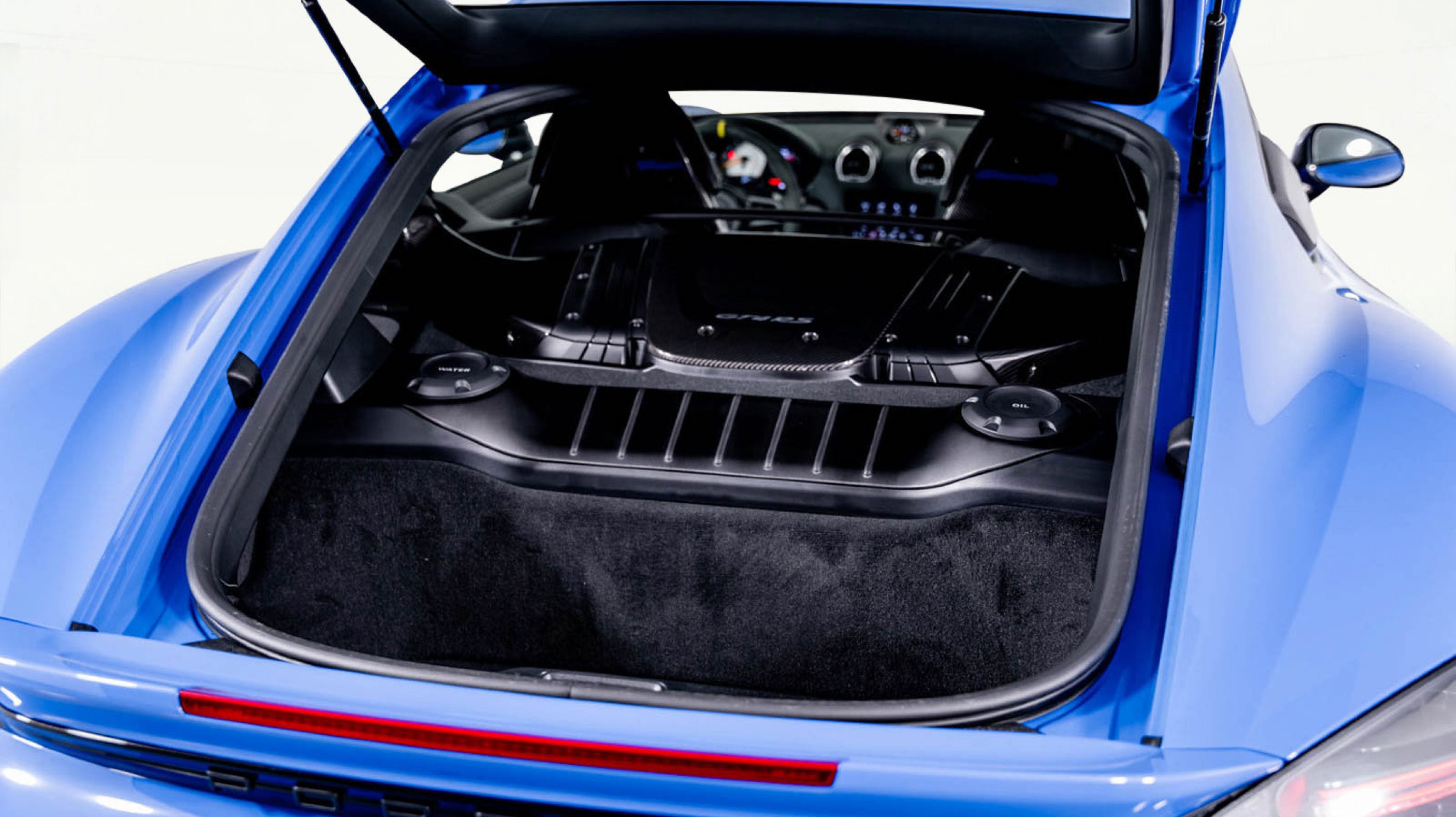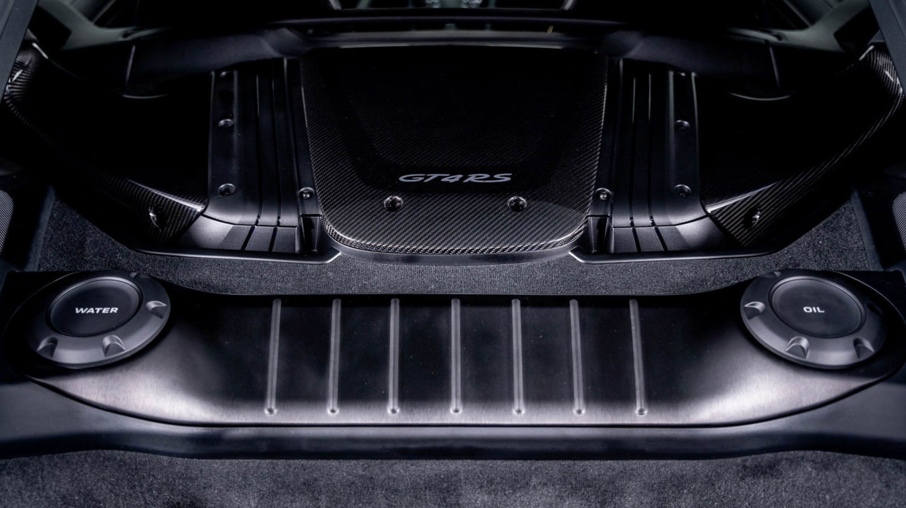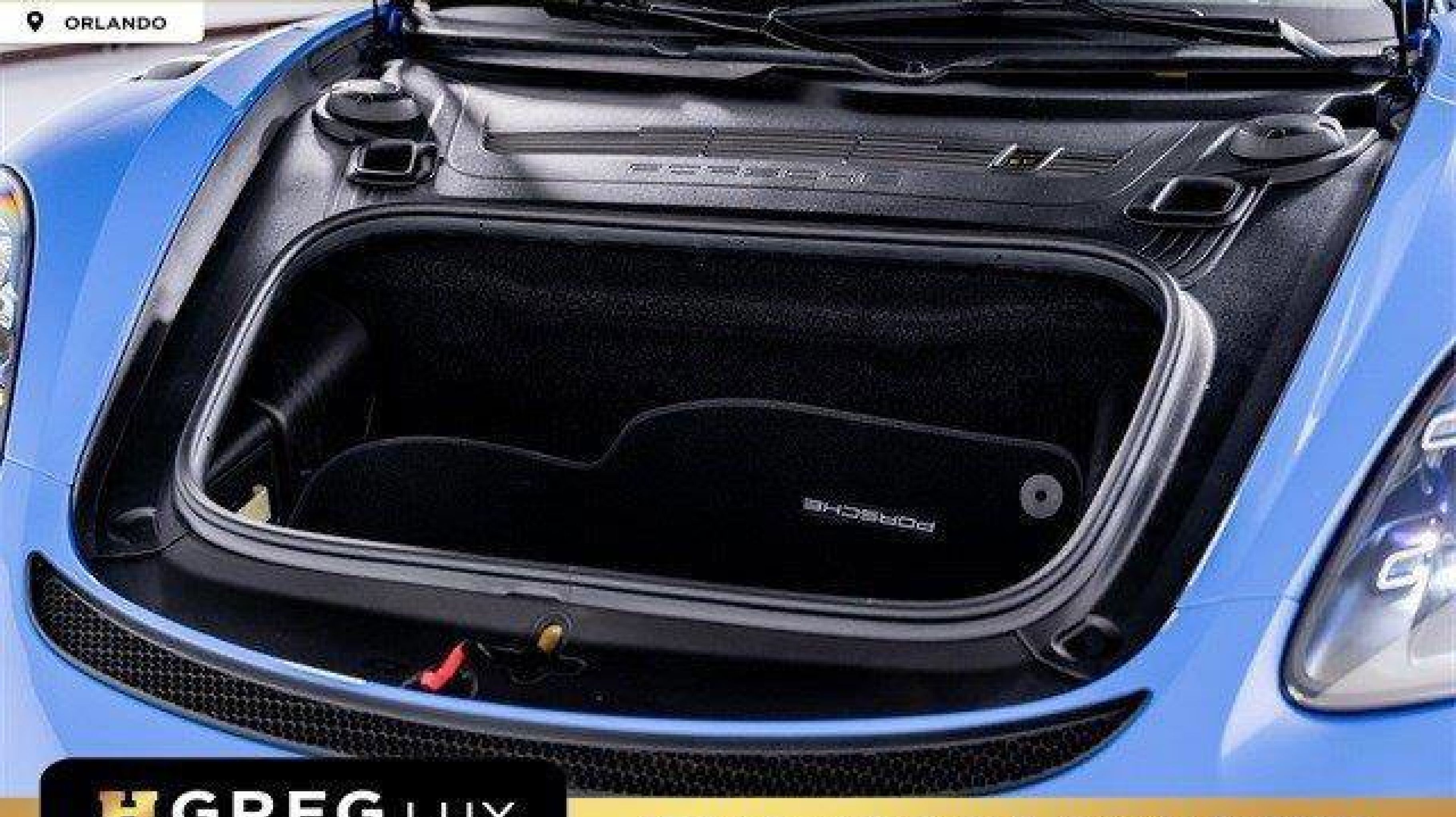 *** Rear Storage Compartment Lid in Race-Tex with Porsche Logo.
