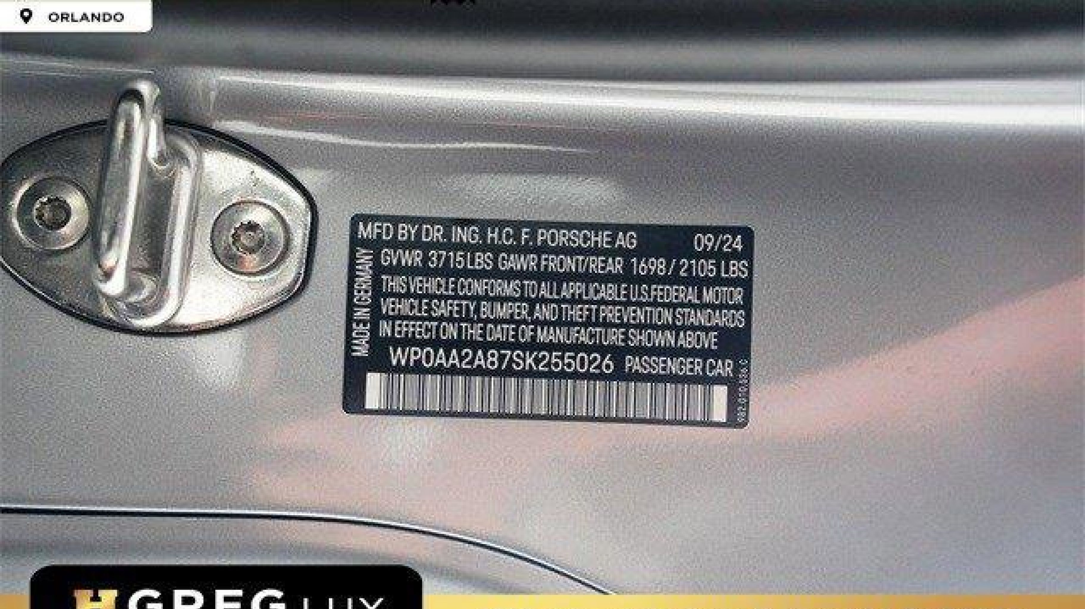 *** VIN:** WP0AA2A87SK255026