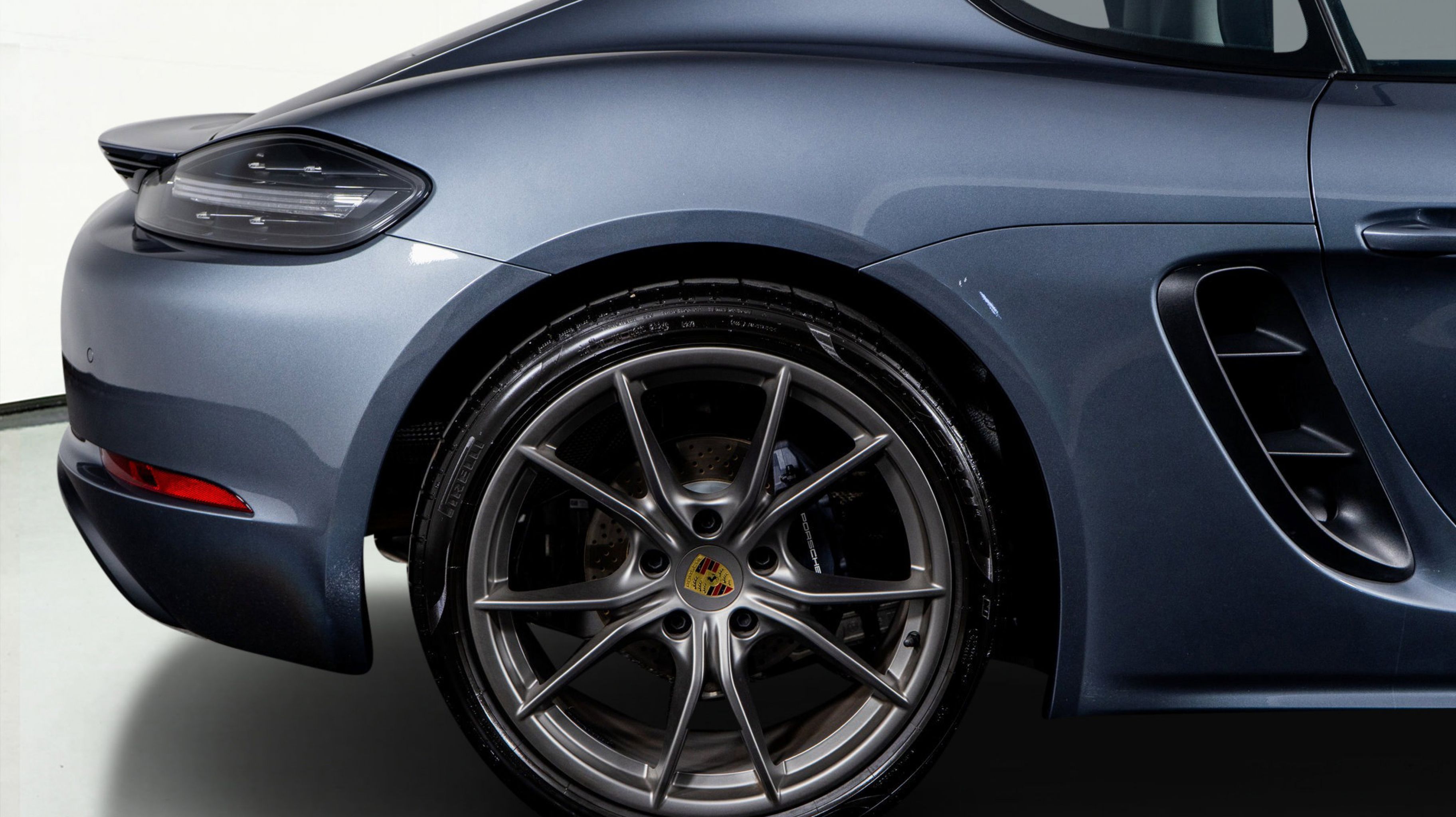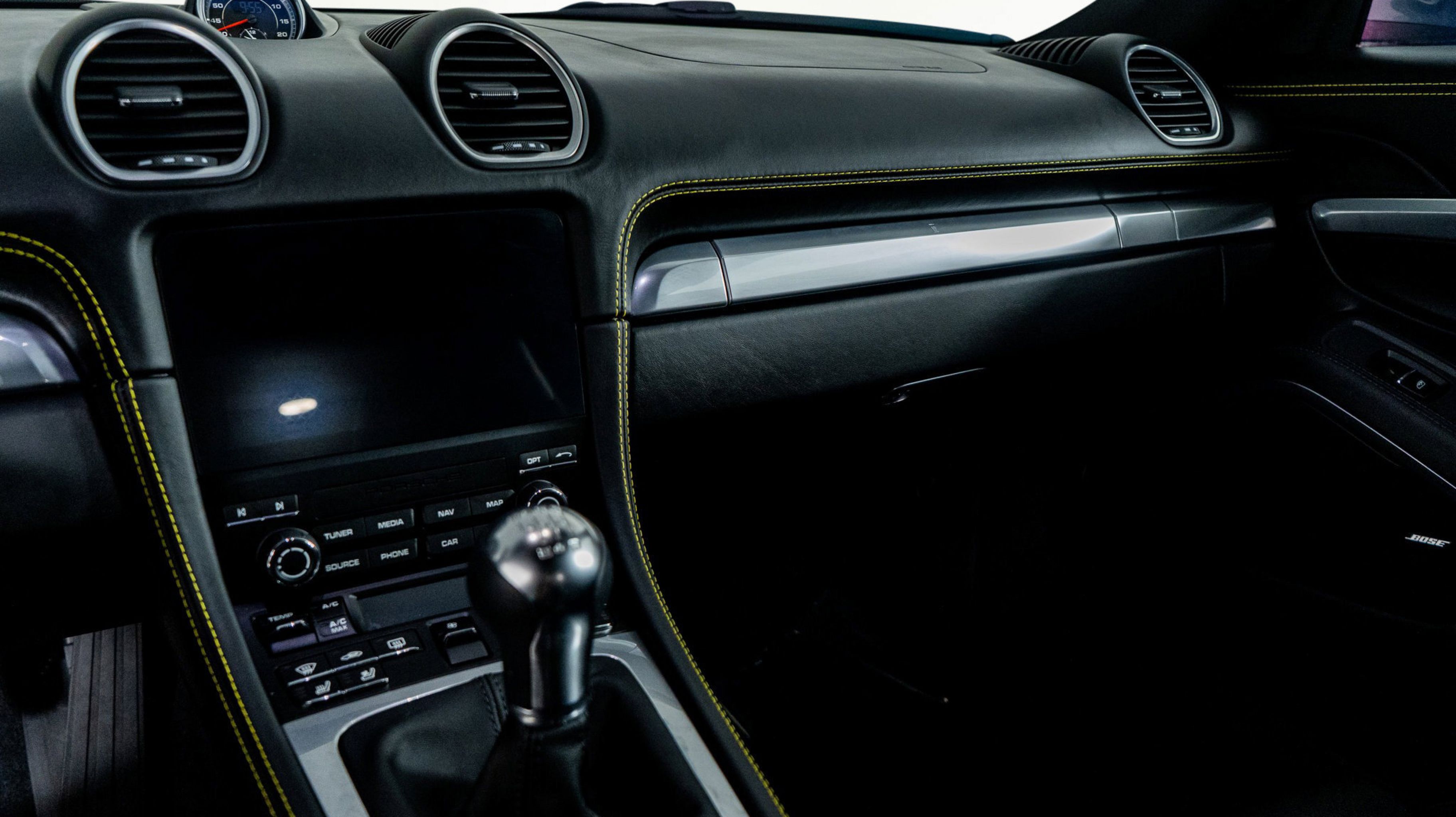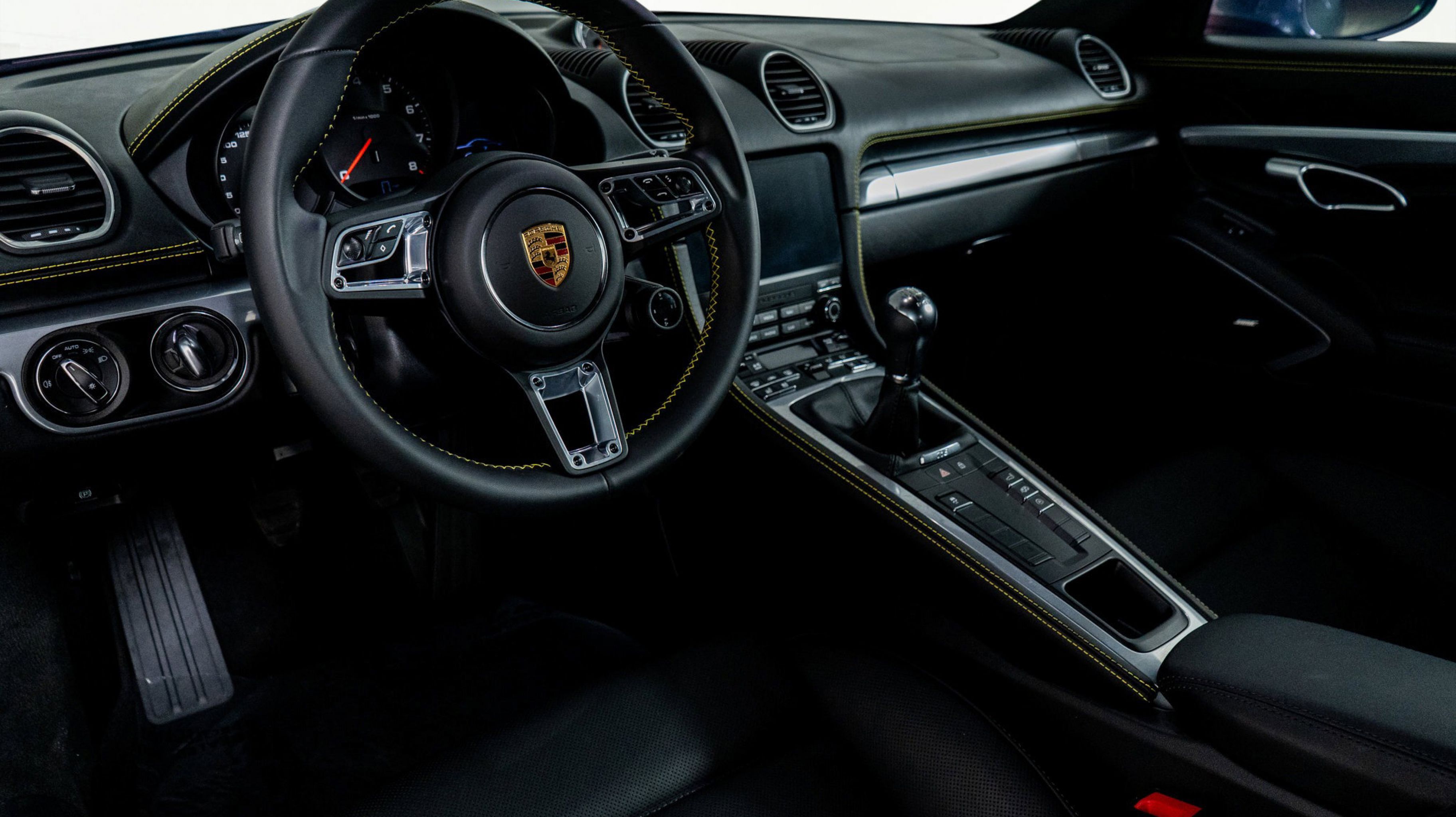 At HGREG LUX Orlando, experience this Vanadium Grey Metallic Cayman, a stunning configuration enhanced by satin platinum wheels, racing yellow stitching, Bose Surround Sound, clear taillights, and Sport Tailpipes in Black. The upgraded leather interior, sport chrono elements, and luxurious craftsmanship create a cockpit built for true drivers.