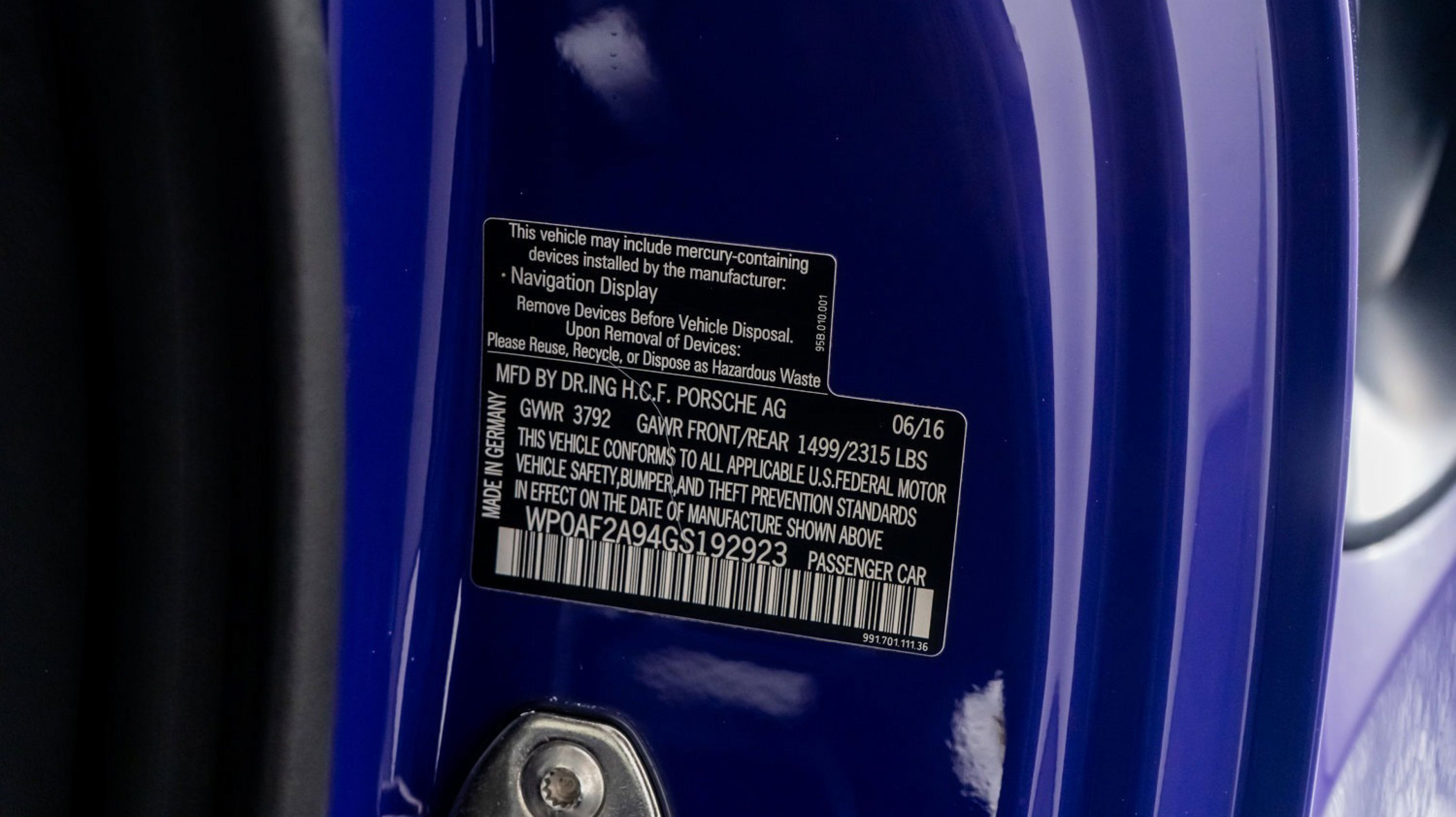 *** VIN: WP0AF2A94GS192923