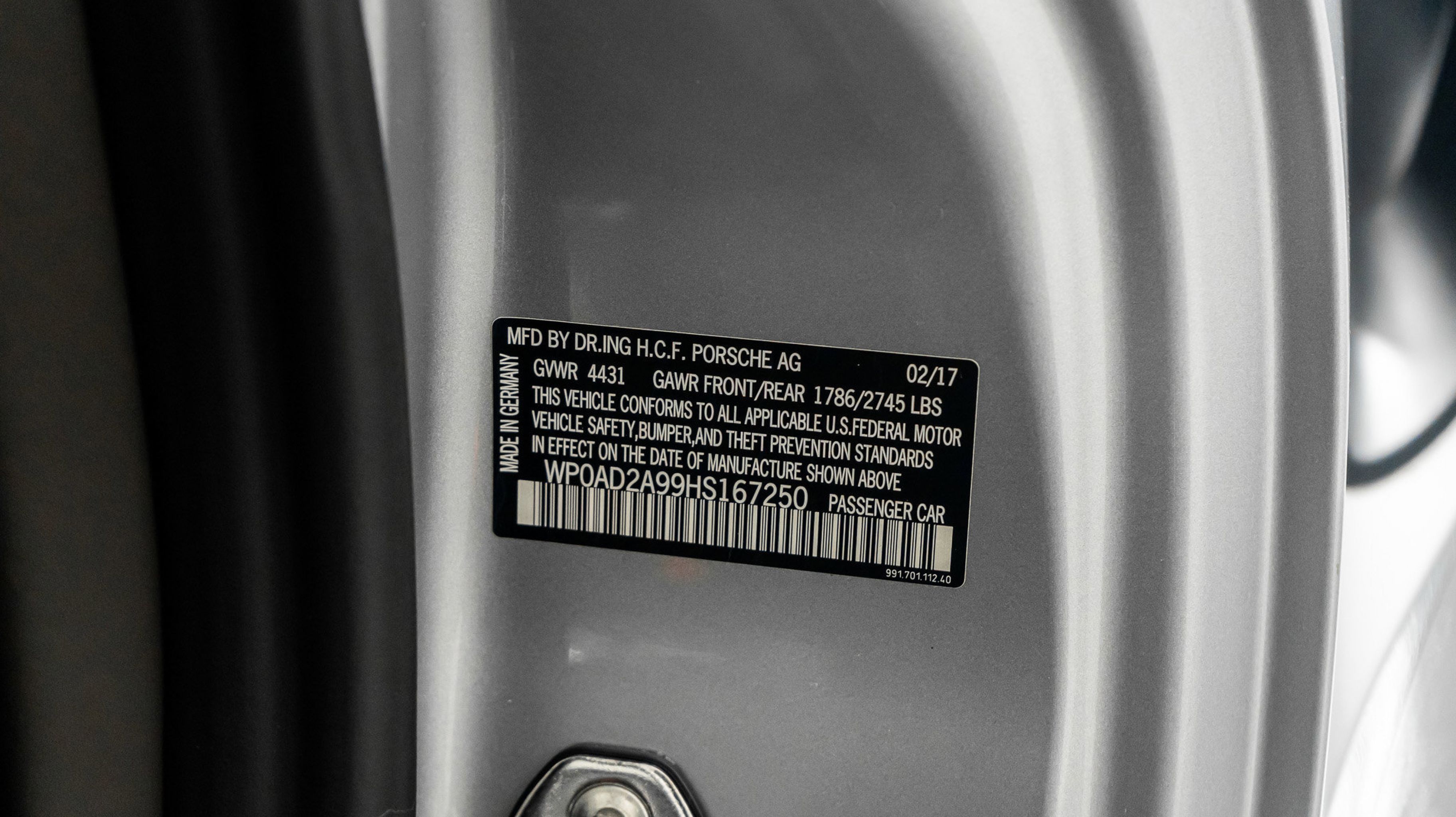 *** VIN: WP0AD2A99HS167250