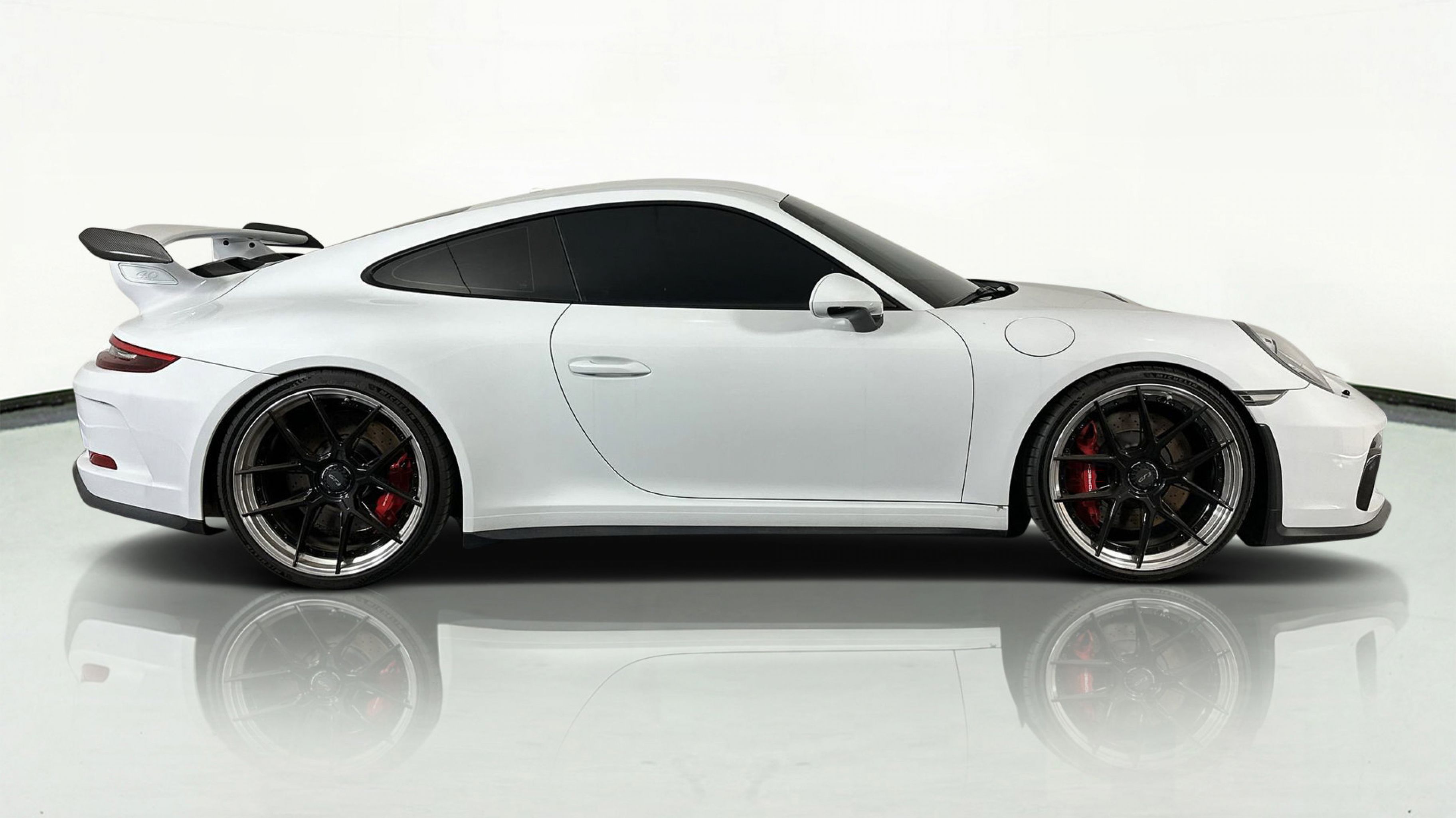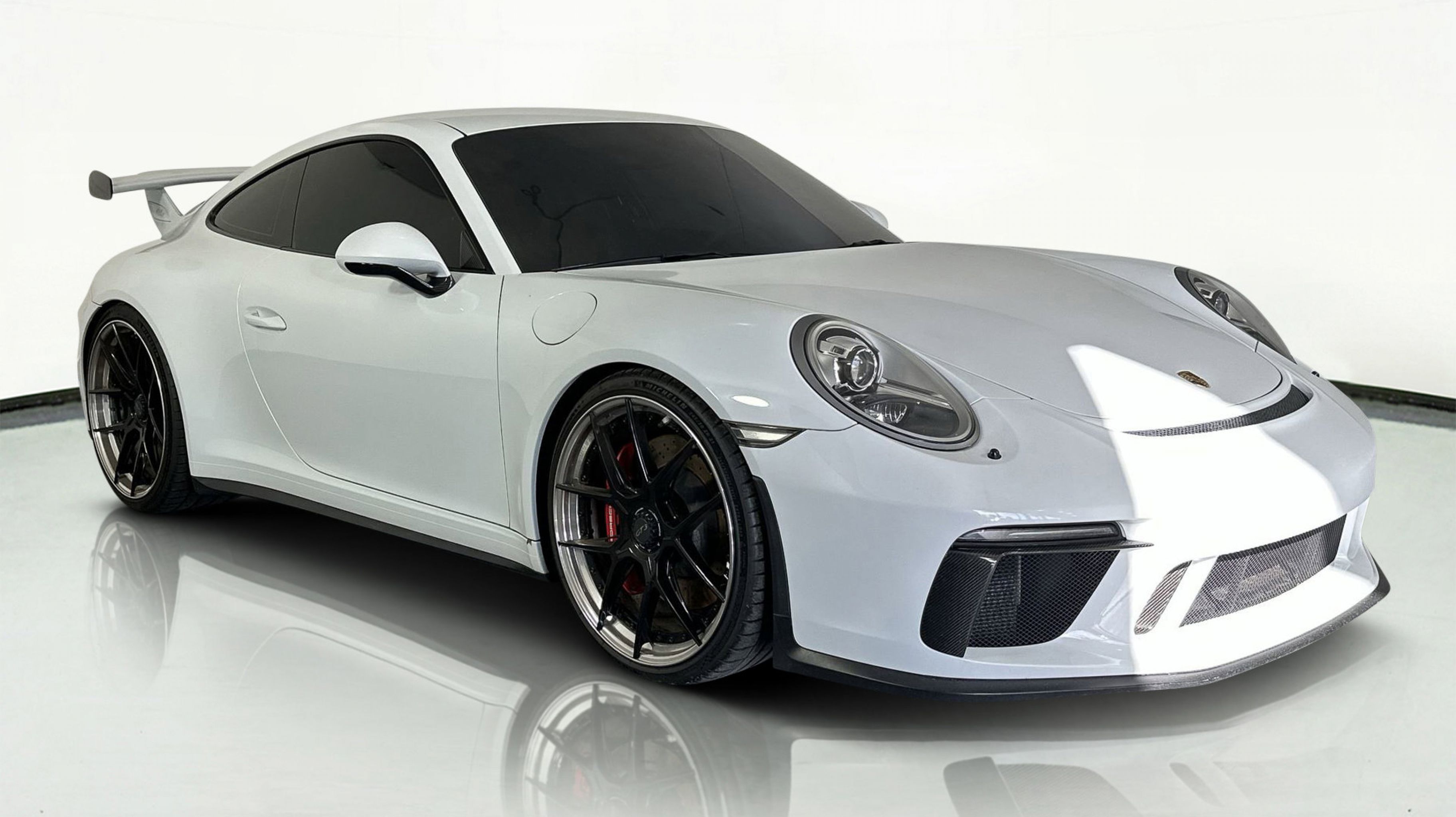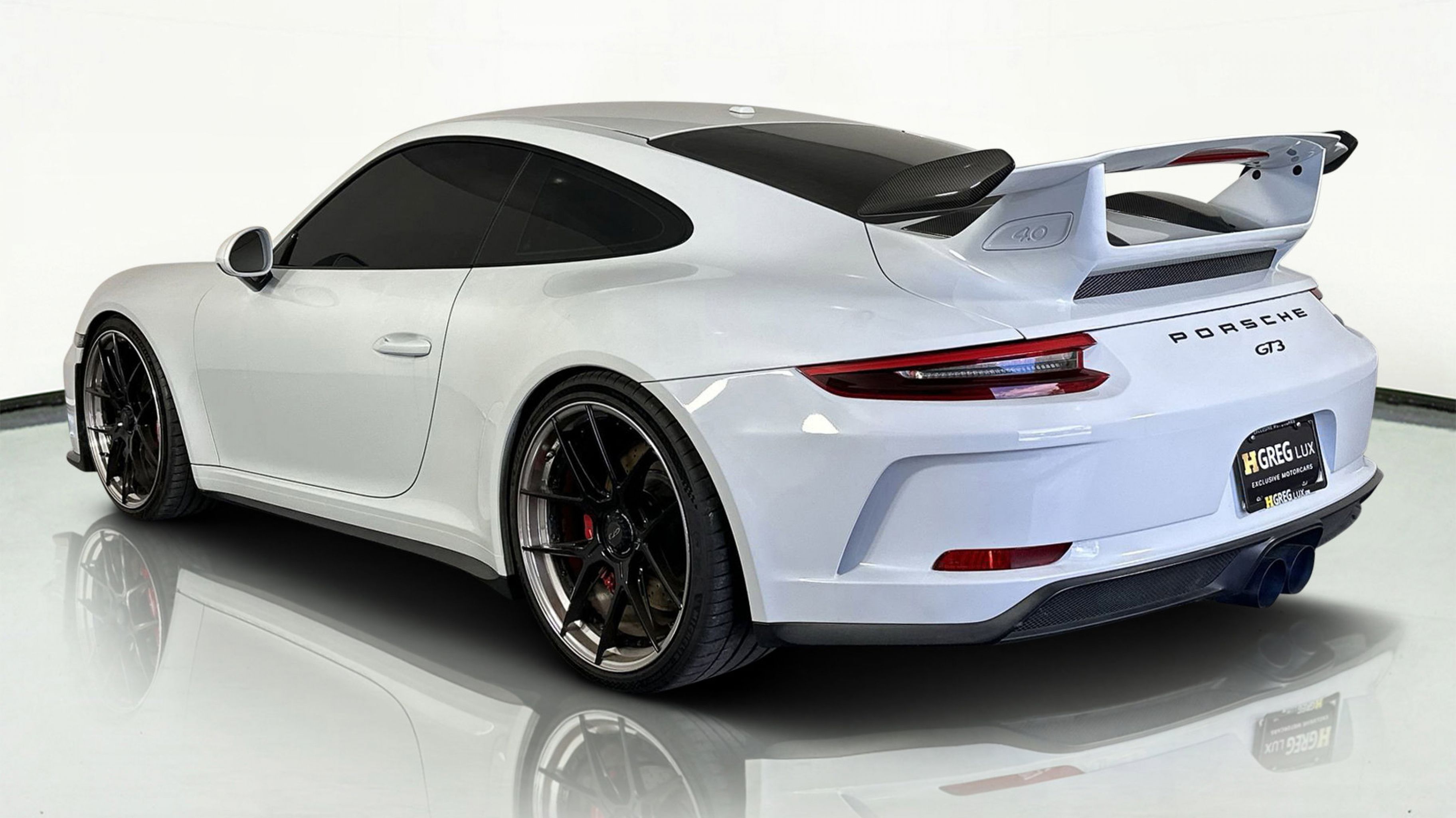 At HGREG LUX Pompano Beach, were proud to offer motorsport-grade machines like the 2018 Porsche 911 GT3. This GT3 is a drivers dreamnaturally aspirated, manual transmission, finished in Carrara White Metallic with track-focused options including the Chrono Package and extended-range fuel tank.