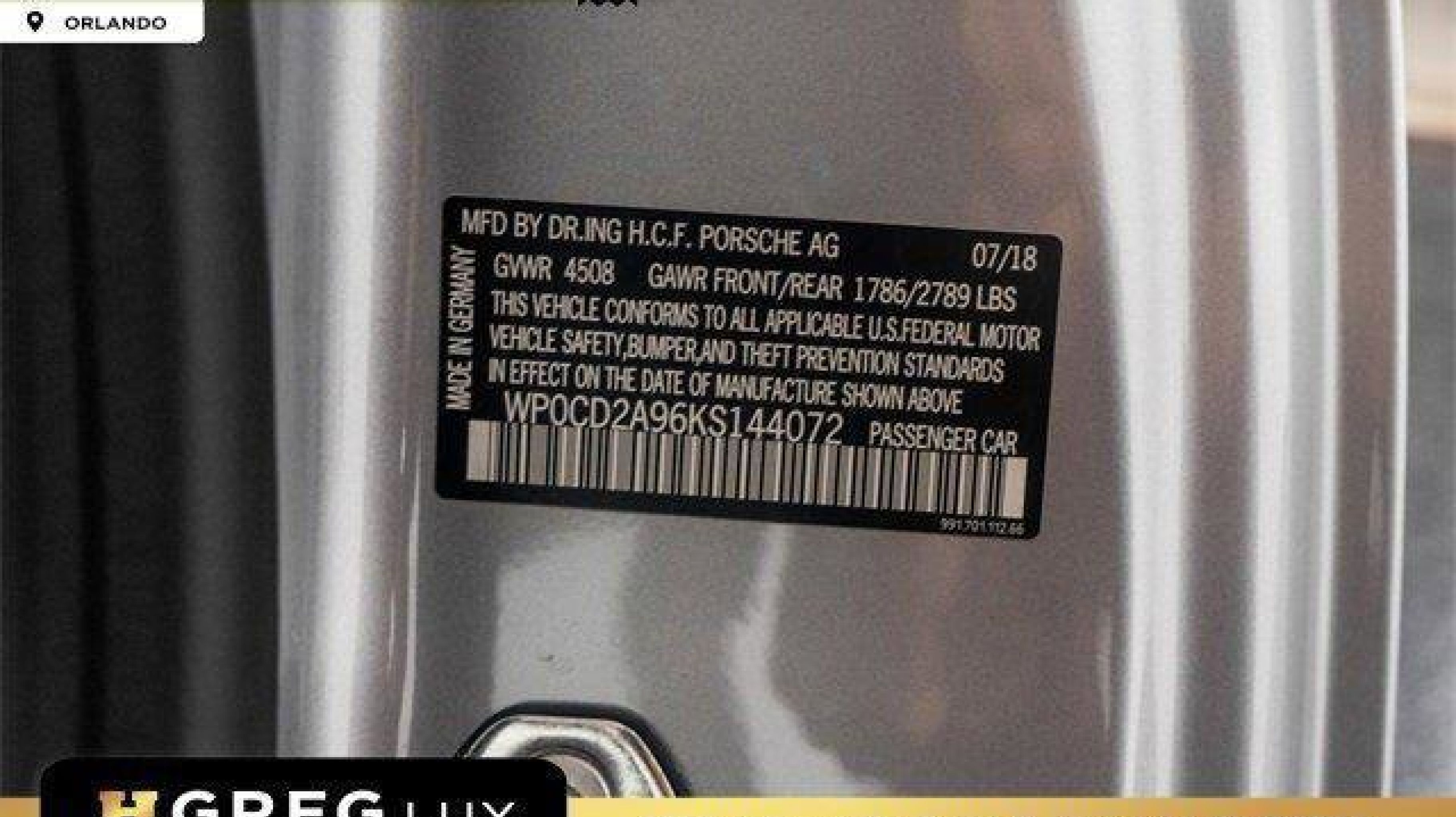 *** VIN:** WP0CD2A96KS144072