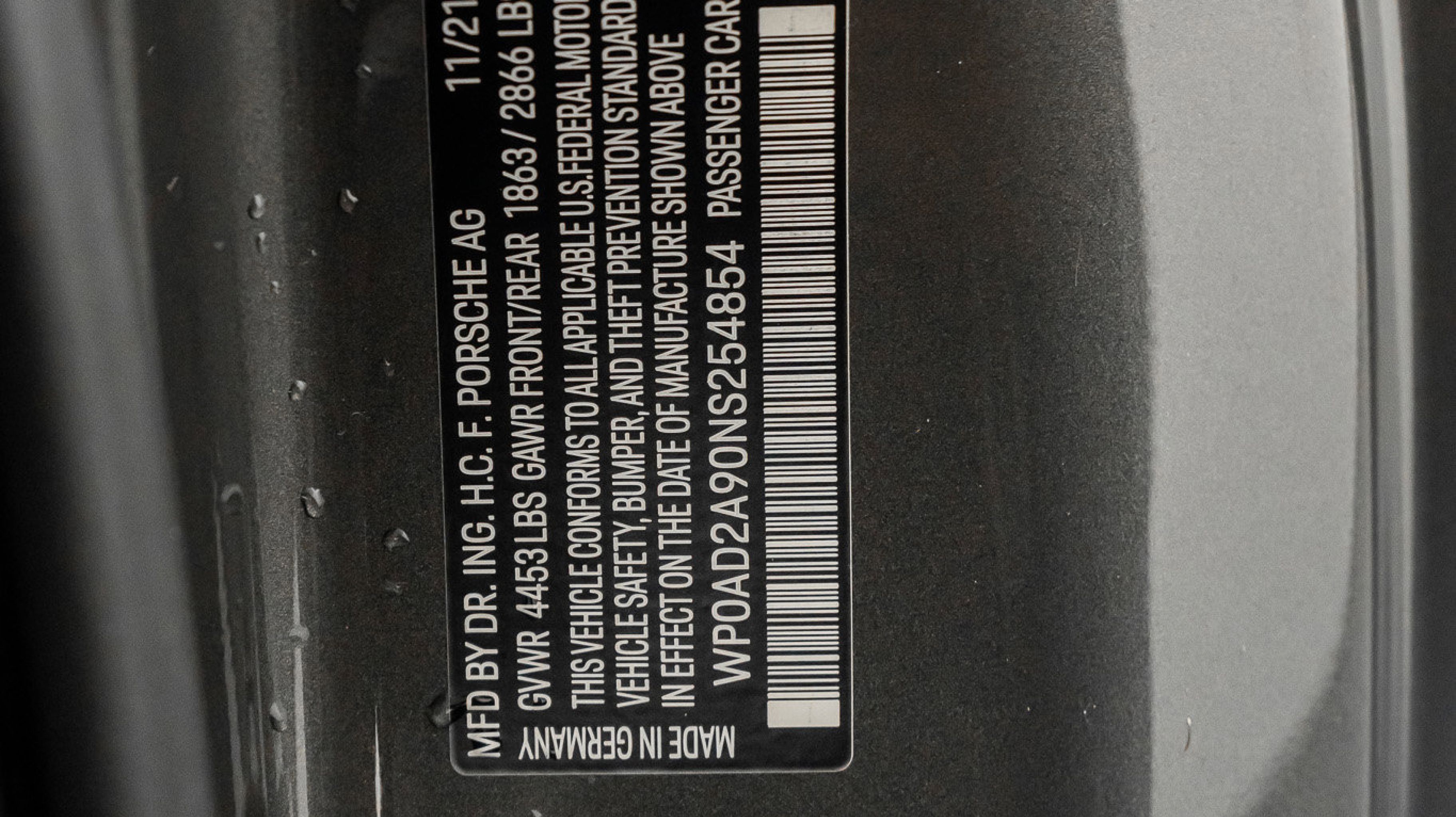 *** VIN: WP0AD2A90NS254854