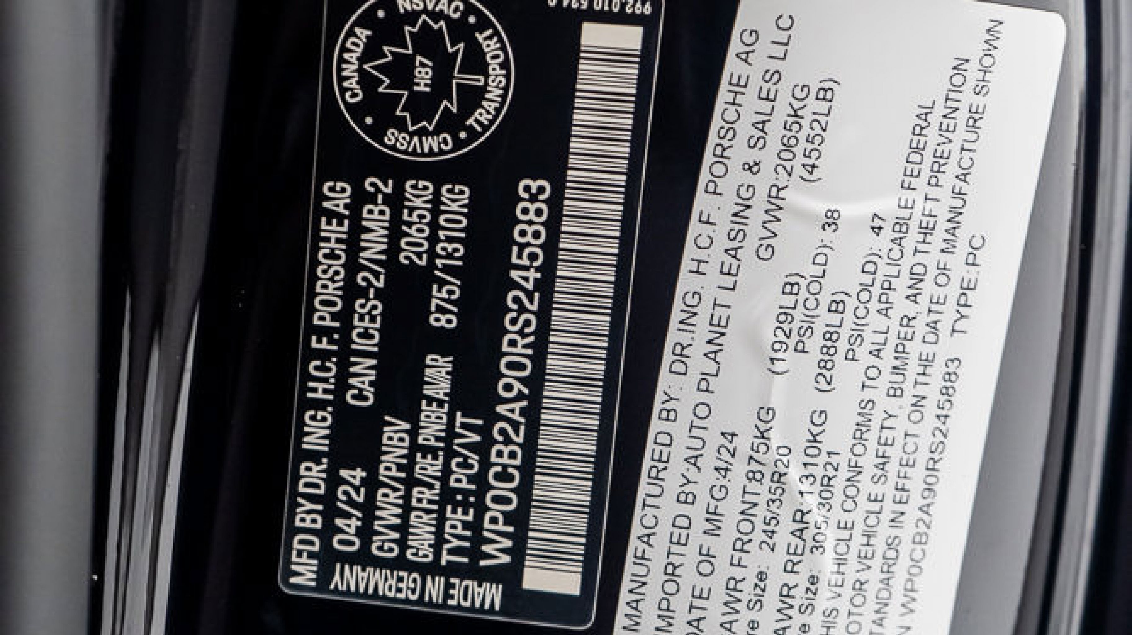 *** VIN: WP0CB2A90RS245883