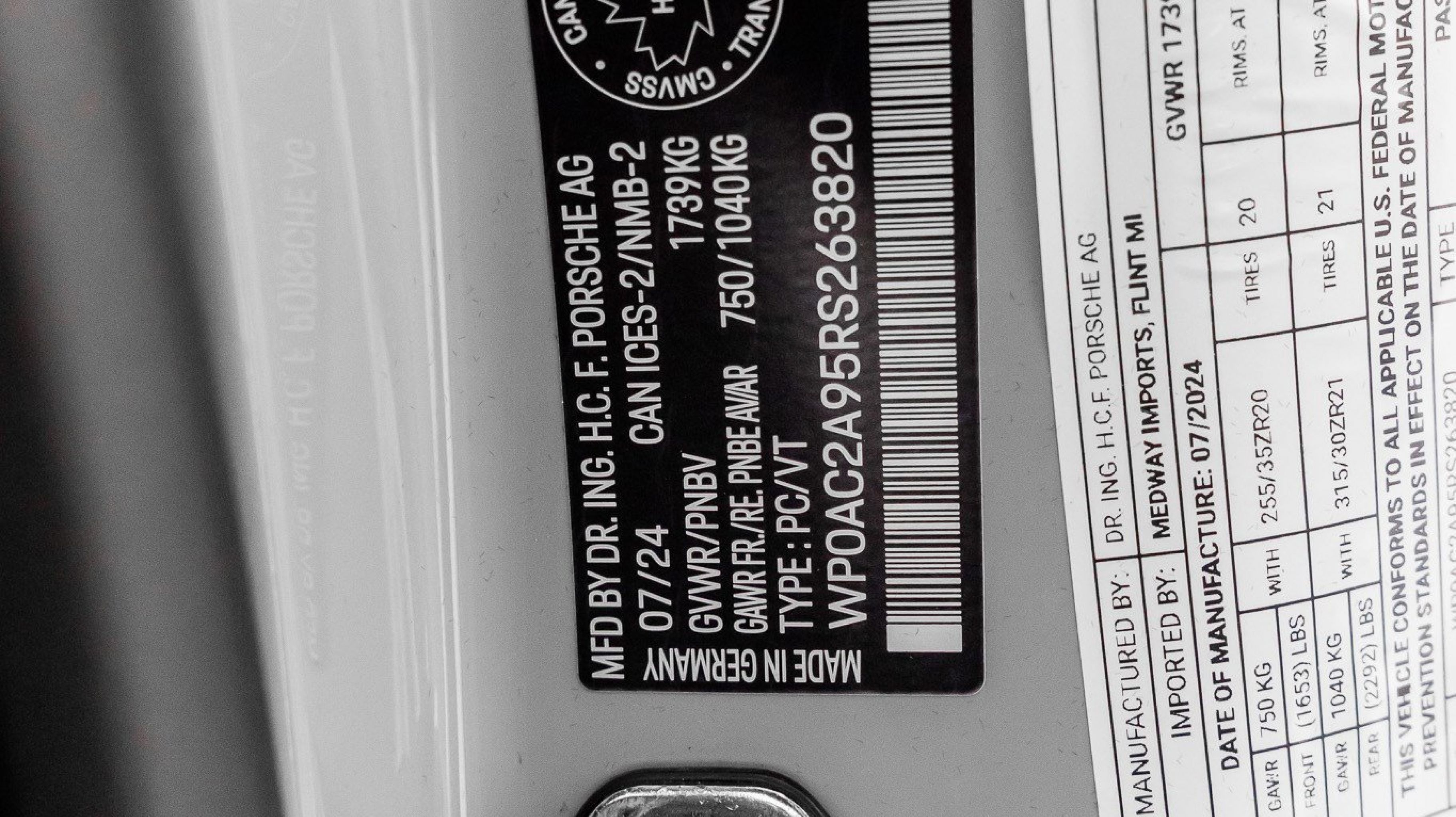 *** VIN: WP0AC2A95RS263820