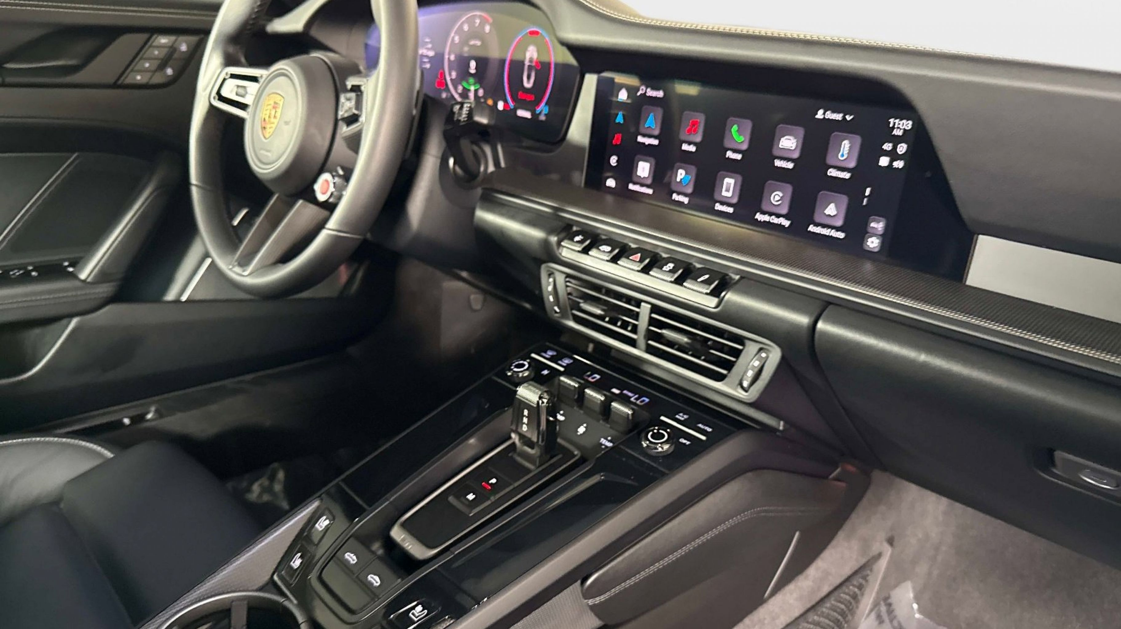 Clean CARFAX. AWD, 4-Way Sport Seats Plus, 4-Wheel Disc Brakes, 8 Speakers, ABS brakes, Adaptive suspension, Air Conditioning, Alloy wheels, Auto High-beam Headlights, Auto-dimming door mirrors, Auto-dimming Rear-View mirror, Automatic temperature control, Brake assist, Bumpers: body-color, Convertible roof lining, Delay-off headlights, Driver door bin, Driver vanity mirror, Dual front impact airbags, Dual front side impact airbags, Electronic Stability Control, Emergency communication system, Exterior Parking Camera Rear, Four wheel independent suspension, Front anti-roll bar, Front Bucket Seats, Front Center Armrest, Front dual zone A/C, Front reading lights, Fully automatic headlights, Garage door transmitter: HomeLink, Glass rear window, Heated door mirrors, Heated front seats, Heated steering wheel, Illuminated entry, Integrated roll-over protection, Leather/Race-Tex Seat Trim, Low tire pressure warning, Navigation system: Porsche Communication Management (PCM), Occupant sensing airbag, Outside temperature display, Overhead airbag, Overhead console, Passenger door bin, Passenger vanity mirror, Porsche Communication Management, Power convertible roof, Power door mirrors, Power driver seat, Power passenger seat, Power steering, Power windows, Radio data system, Rain sensing wipers, Rear anti-roll bar, Rear fog lights, Rear window defroster, Remote keyless entry, Security system, Sound Package Plus, Speed control, Spoiler, Sport steering wheel, Steering wheel mounted audio controls, Tachometer, Telescoping steering wheel, Tilt steering wheel, Traction control, Trip computer, Variably intermittent wipers, Wheels: 20 Front/21 Rear Carrera GTS, AWD.