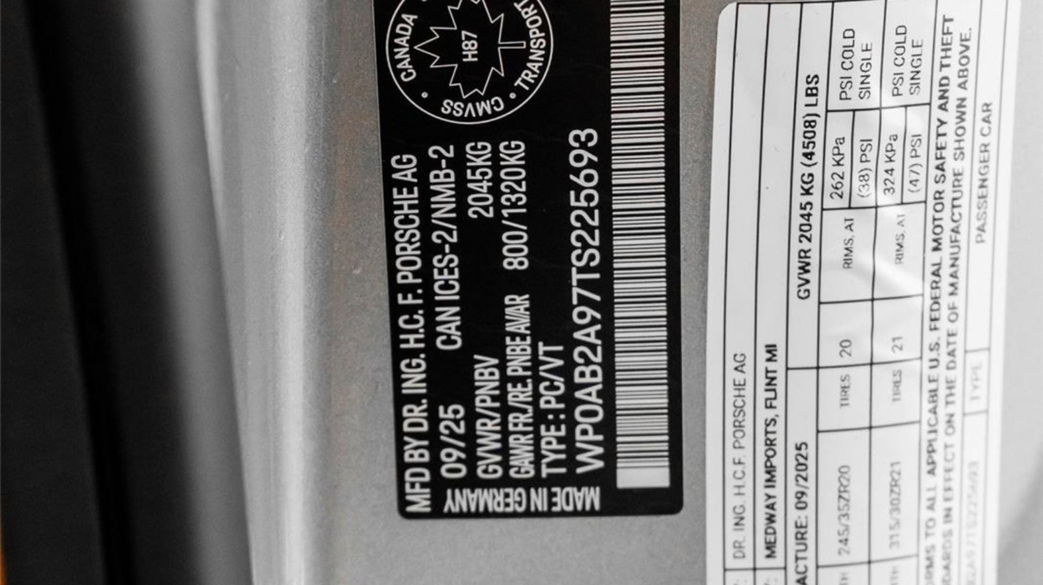 *** VIN: WP0AB2A97TS225693