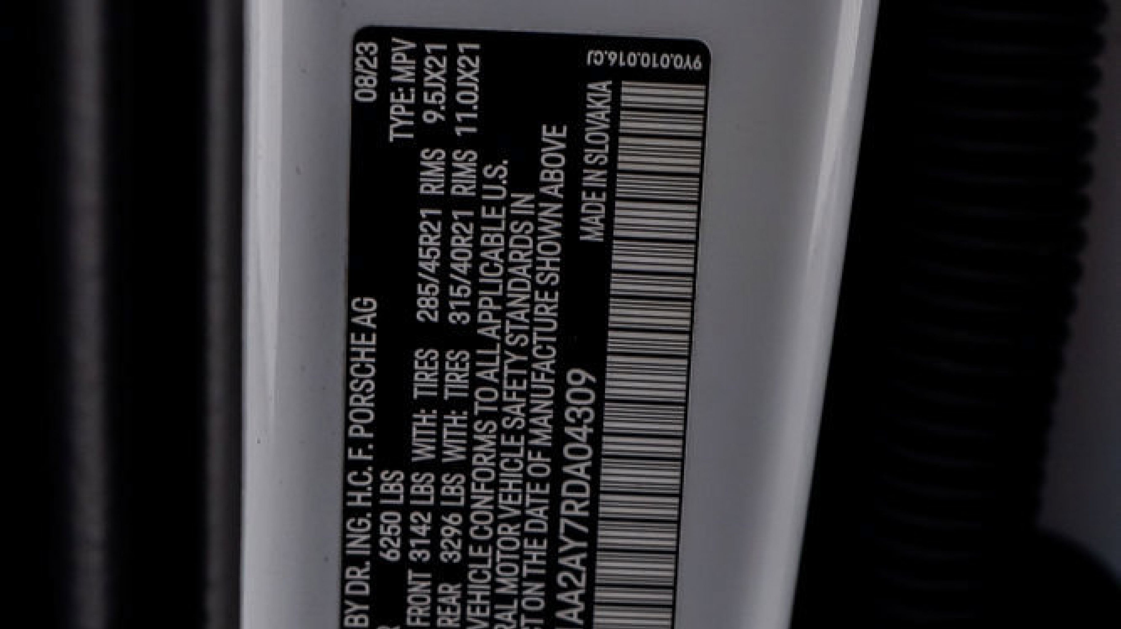 *** VIN:** WP1AA2AY7RDA04309