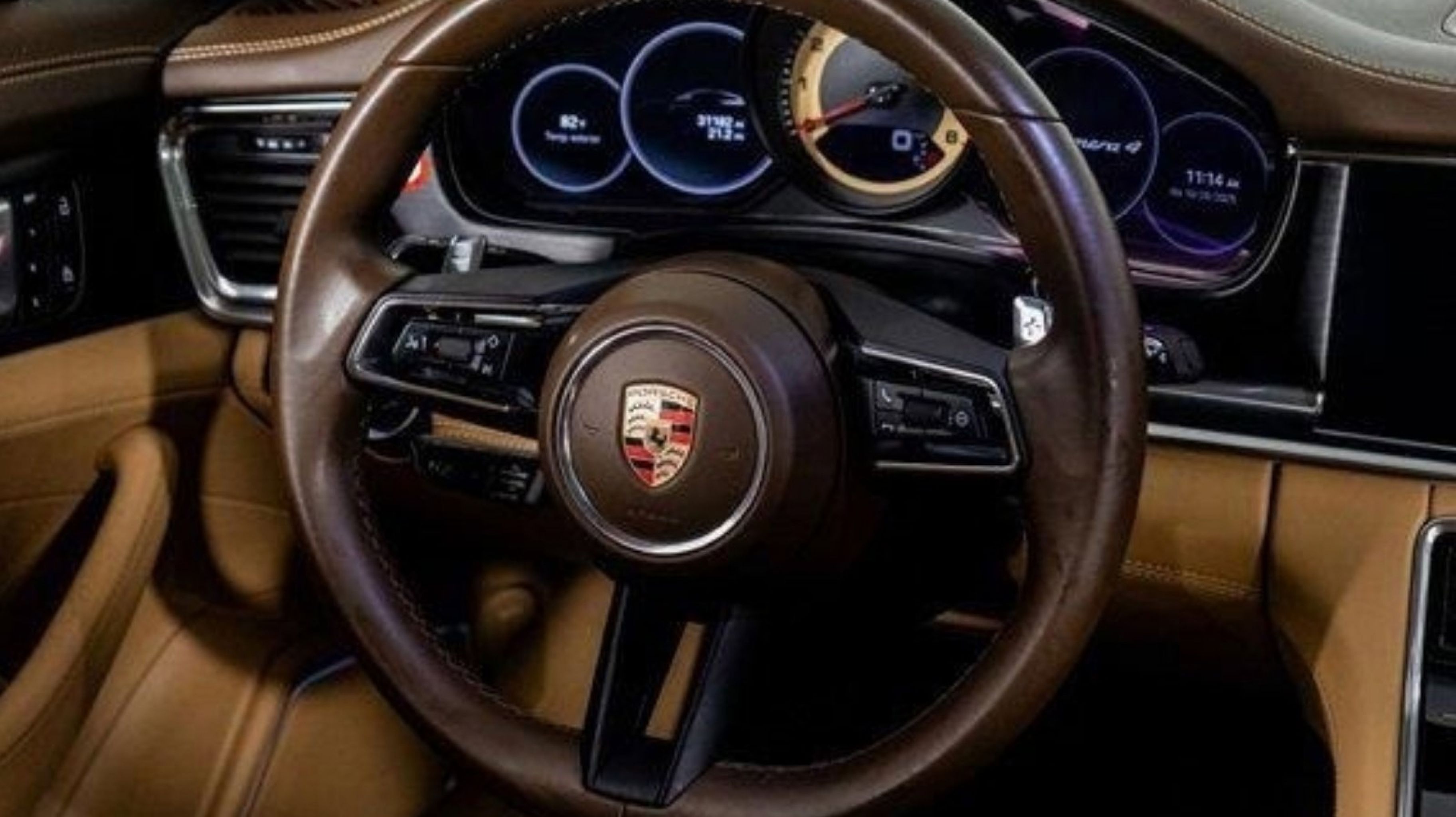 CARFAX One-Owner. Clean CARFAX. AWD, 14 Speakers, 14-Way Power Seats w/Comfort Memory, 4-Wheel Disc Brakes, ABS brakes, Adaptive suspension, Air Conditioning, Alloy wheels, AM/FM radio: SiriusXM, Apple CarPlay, Audio memory, Auto High-beam Headlights, Auto tilt-away steering wheel, Auto-dimming door mirrors, Auto-dimming Rear-View mirror, Auto-leveling suspension, Automatic temperature control, Brake assist, Bumpers: body-color, Compass, Delay-off headlights, Door auto-latch, Driver door bin, Driver vanity mirror, Dual front impact airbags, Dual front side impact airbags, Electronic Stability Control, Exterior Parking Camera Rear, Four wheel independent suspension, Front anti-roll bar, Front Bucket Seats, Front Center Armrest, Front dual zone A/C, Front reading lights, Fully automatic headlights, Garage door transmitter: HomeLink, Heated door mirrors, Heated front seats, Heated rear seats, HVAC memory, Illuminated entry, Knee airbag, Leather Shift Knob, Leather steering wheel, Low tire pressure warning, Memory seat, Navigation System, Occupant sensing airbag, Outside temperature display, Overhead airbag, Overhead console, Panic alarm, Partial Leather Seat Trim, Passenger door bin, Passenger vanity mirror, Porsche Communication Management, Power door mirrors, Power driver seat, Power Liftgate, Power moonroof, Power passenger seat, Power steering, Power windows, Radio data system, Rain sensing wipers, Rear air conditioning, Rear anti-roll bar, Rear dual zone A/C, Rear fog lights, Rear reading lights, Rear seat center armrest, Rear side impact airbag, Rear window defroster, Remote keyless entry, Security system, Speed control, Speed-sensing steering, Split folding rear seat, Spoiler, Sport steering wheel, Steering wheel memory, Steering wheel mounted audio controls, Tachometer, Telescoping steering wheel, Tilt steering wheel, Traction control, Trip computer, Variably intermittent wipers, Ventilated front seats, Wheels: 19 Panamera, Wheels: 21 Exclusive Design Sport in Satin Platinum, AWD.